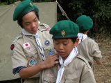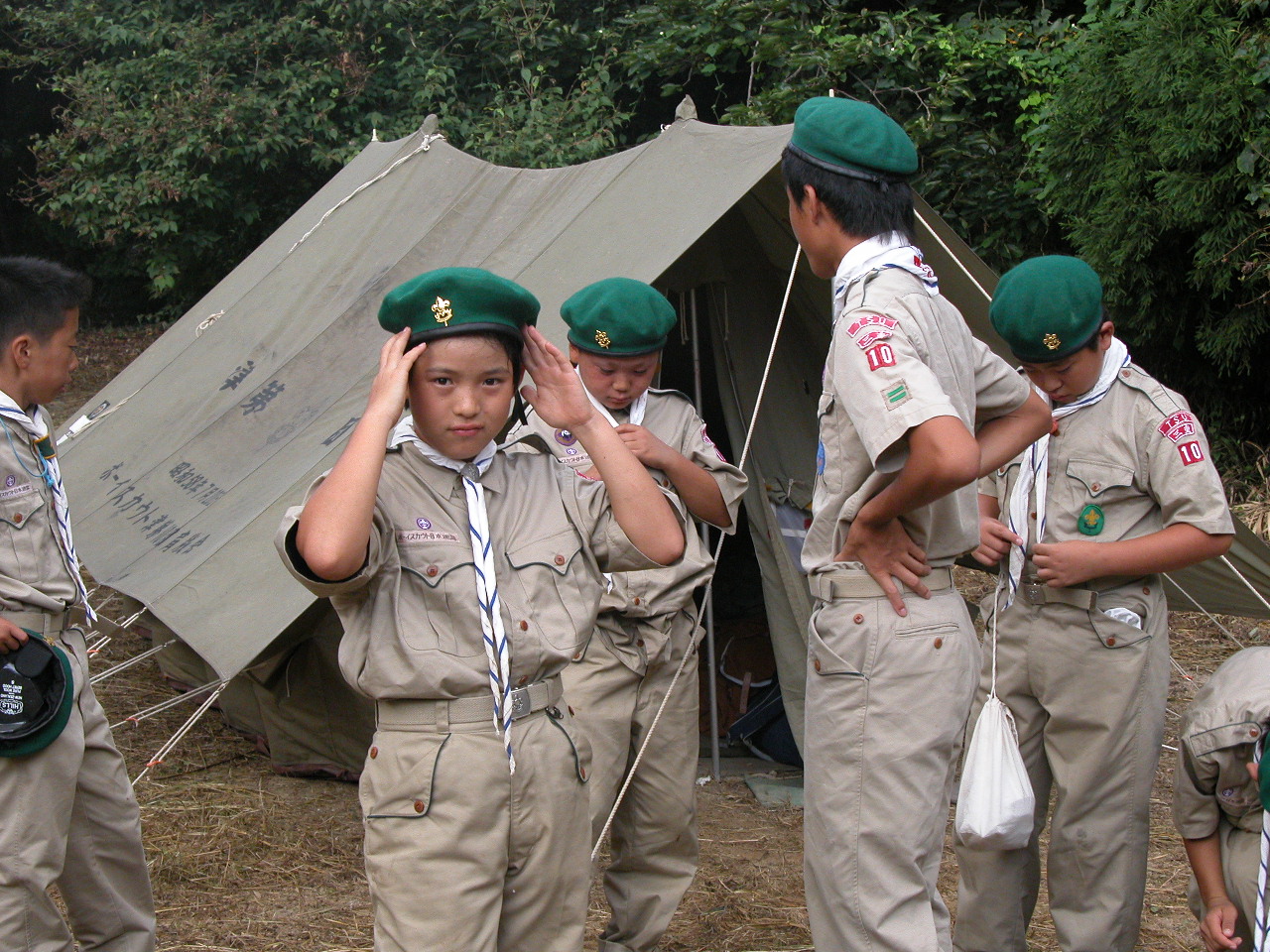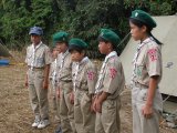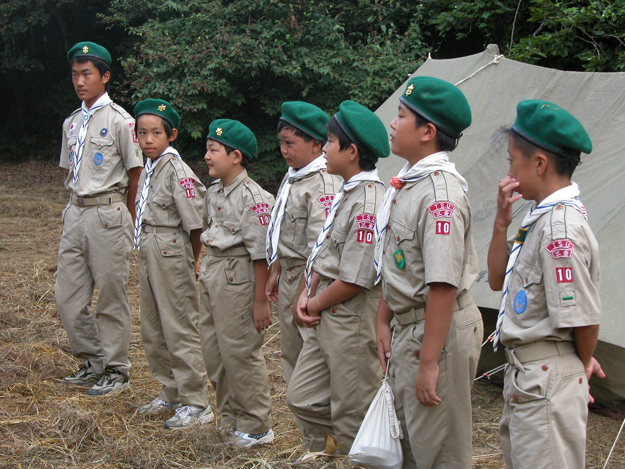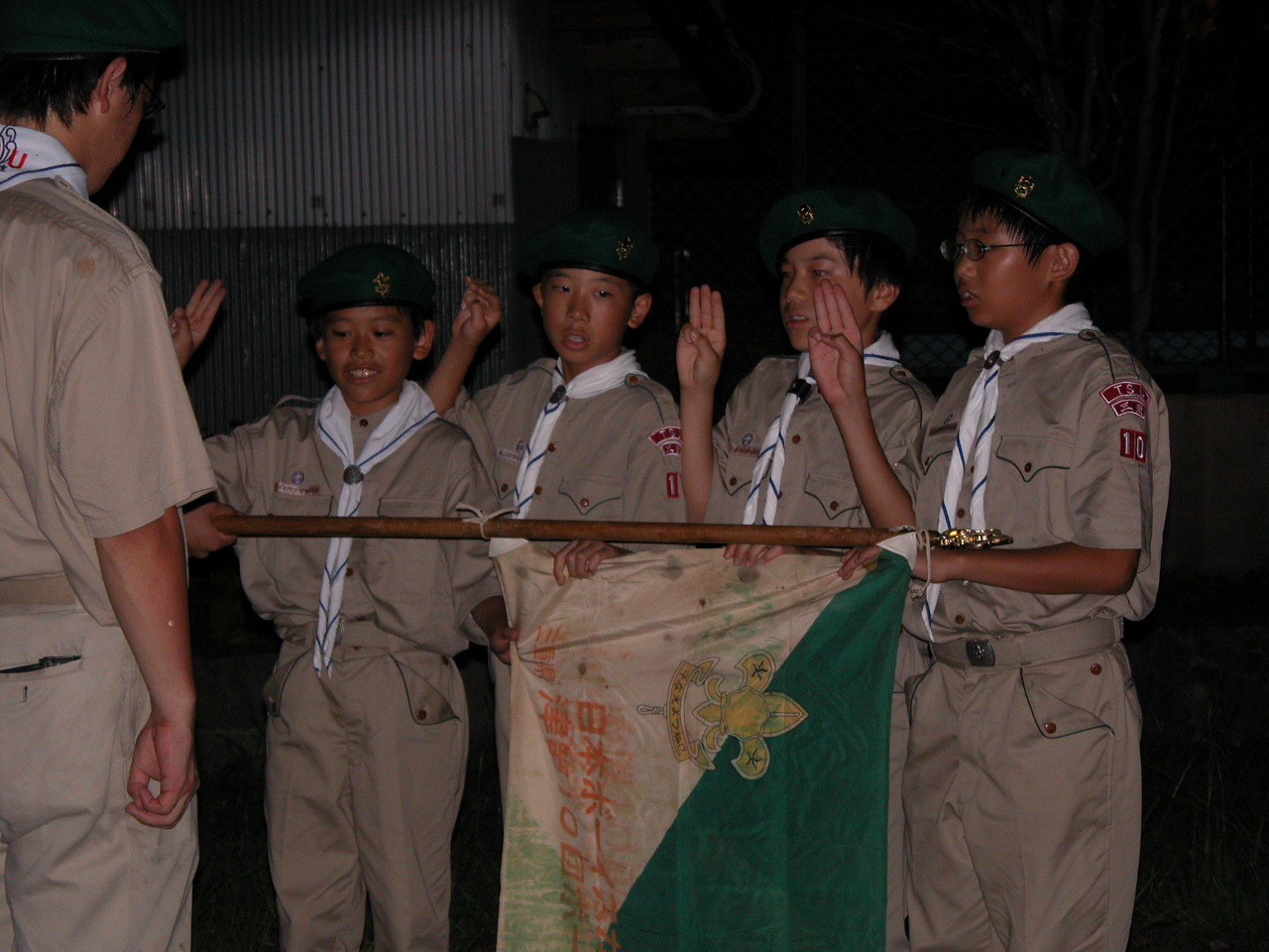 指導者、12団ローバー隊、10団ベンチャー隊が見守るなか、12名のスカウトが上進し「ちかい」をたてました。