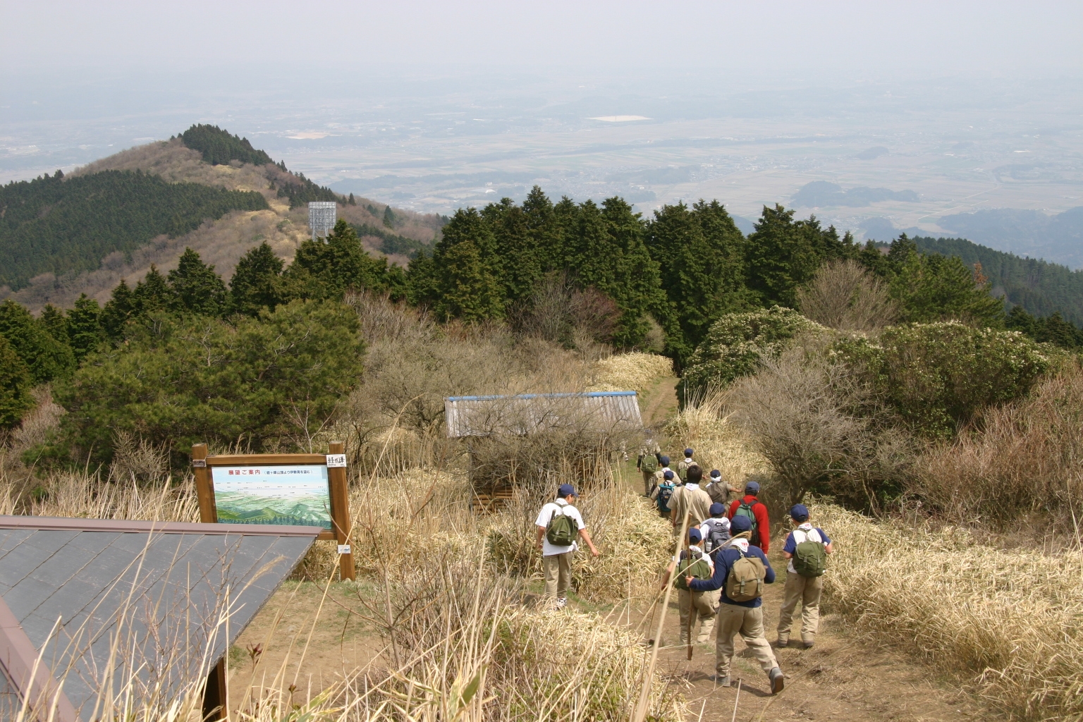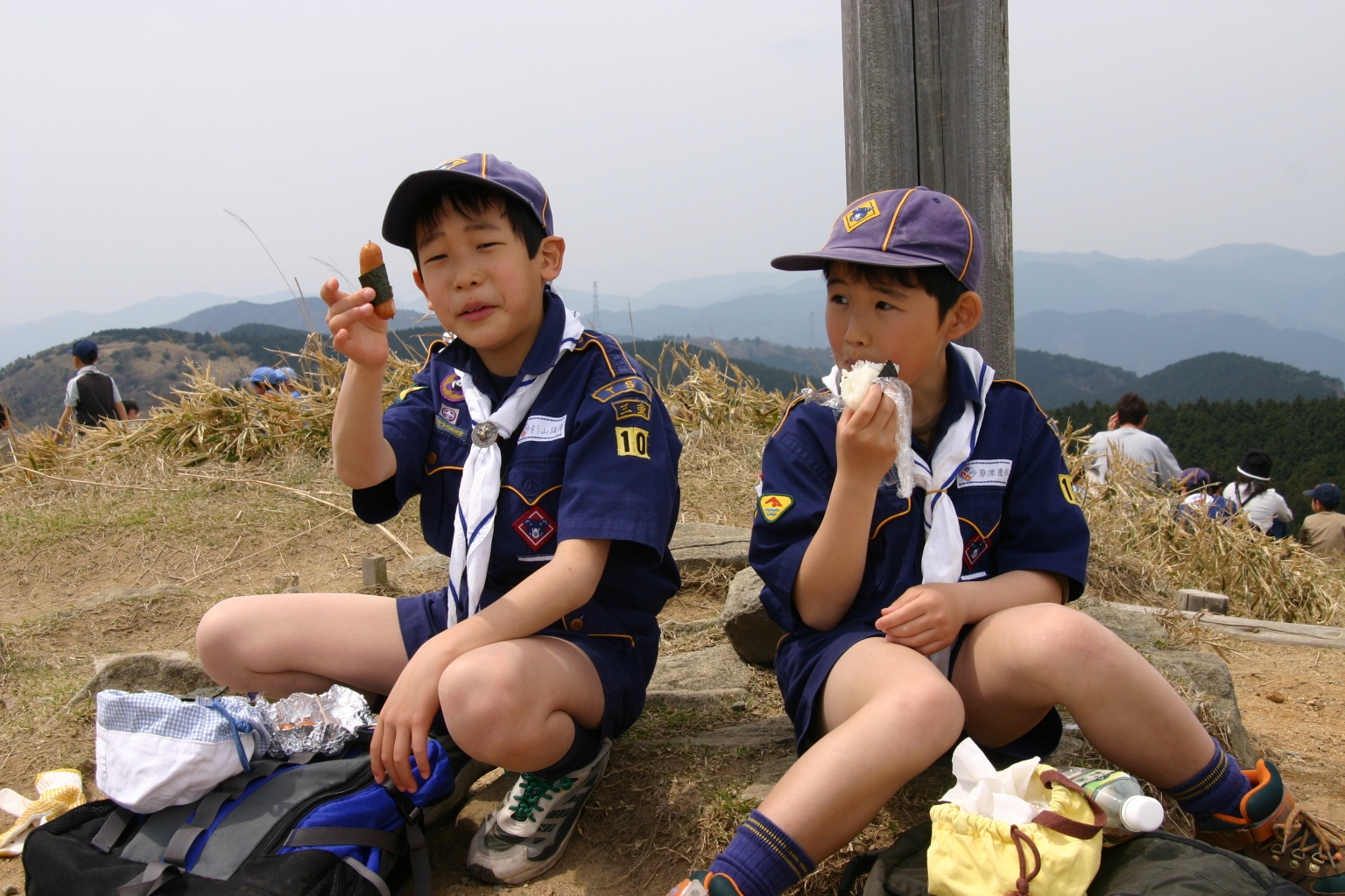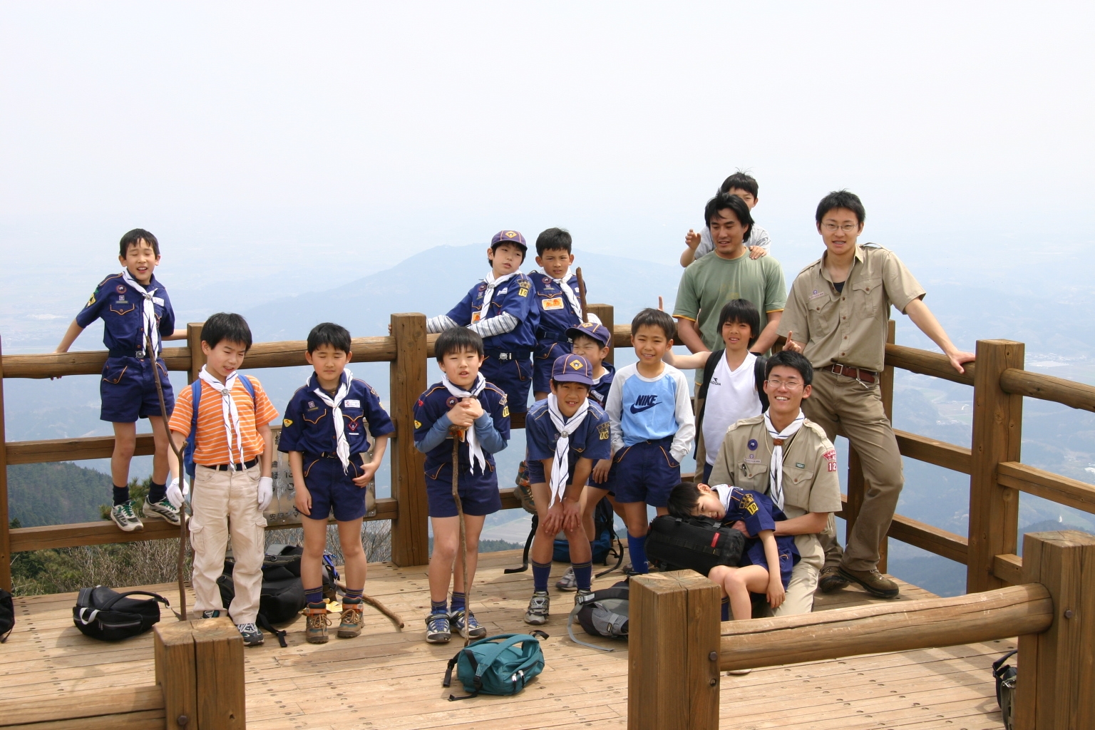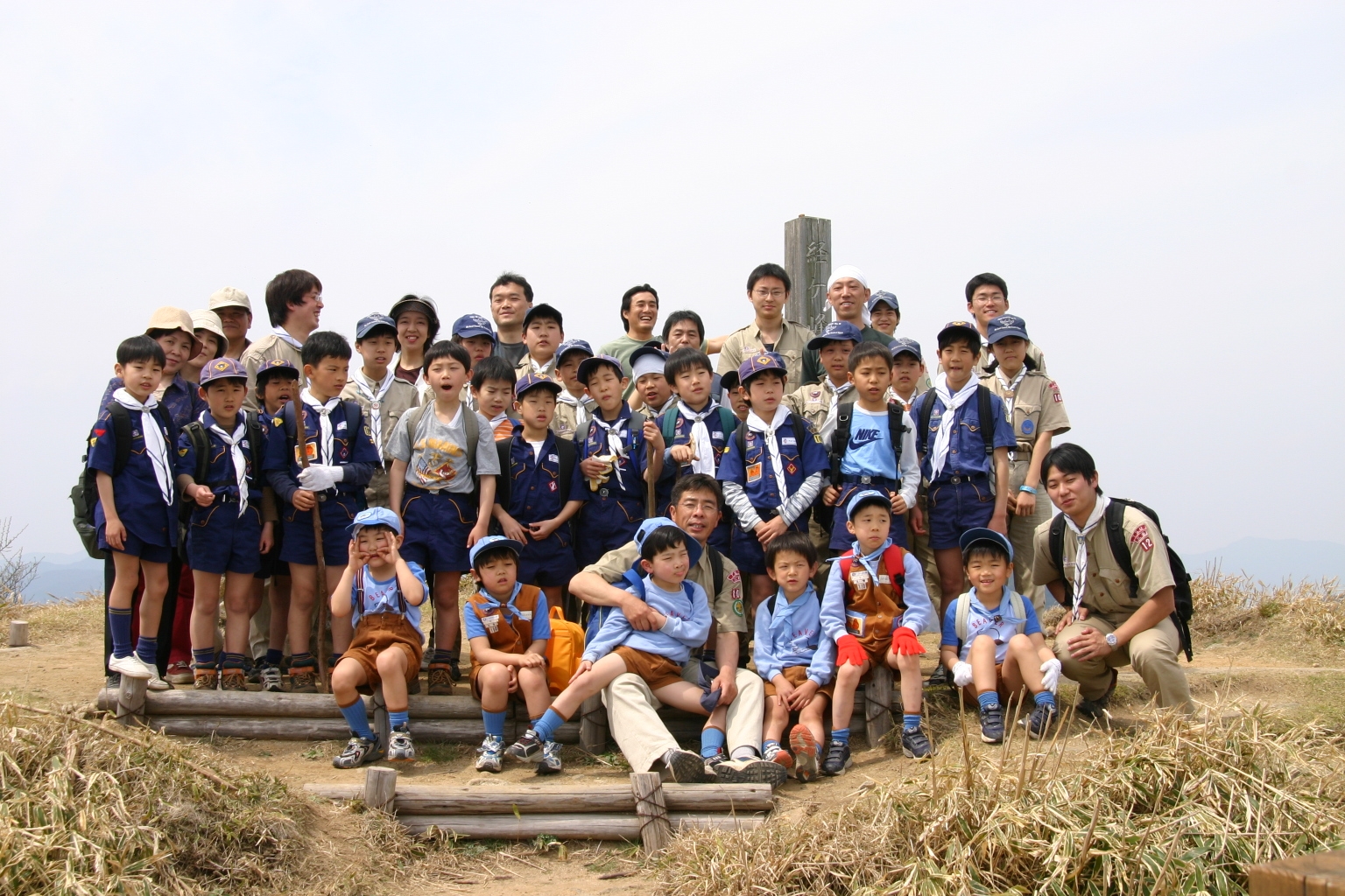 ボーイ隊は山出(経ヶ峰口)から、カブ隊は平尾(比佐豆知菅原神社)から、ビーバー隊は平尾大谷林道の最終駐車場から山頂を目指しました。