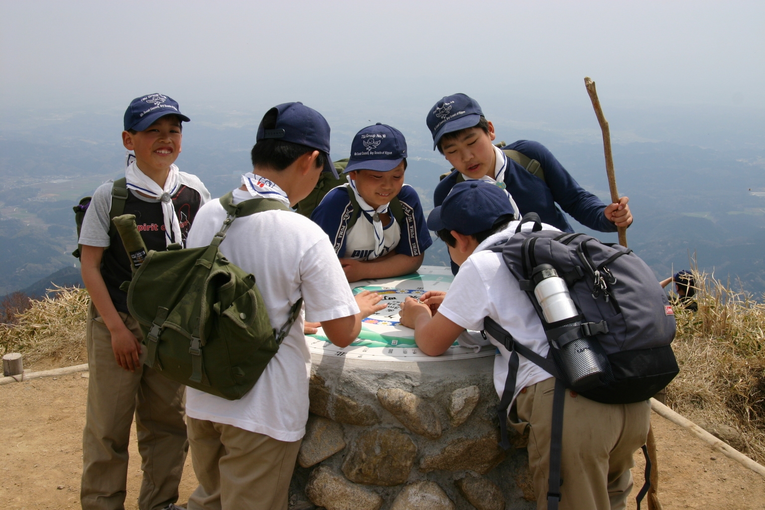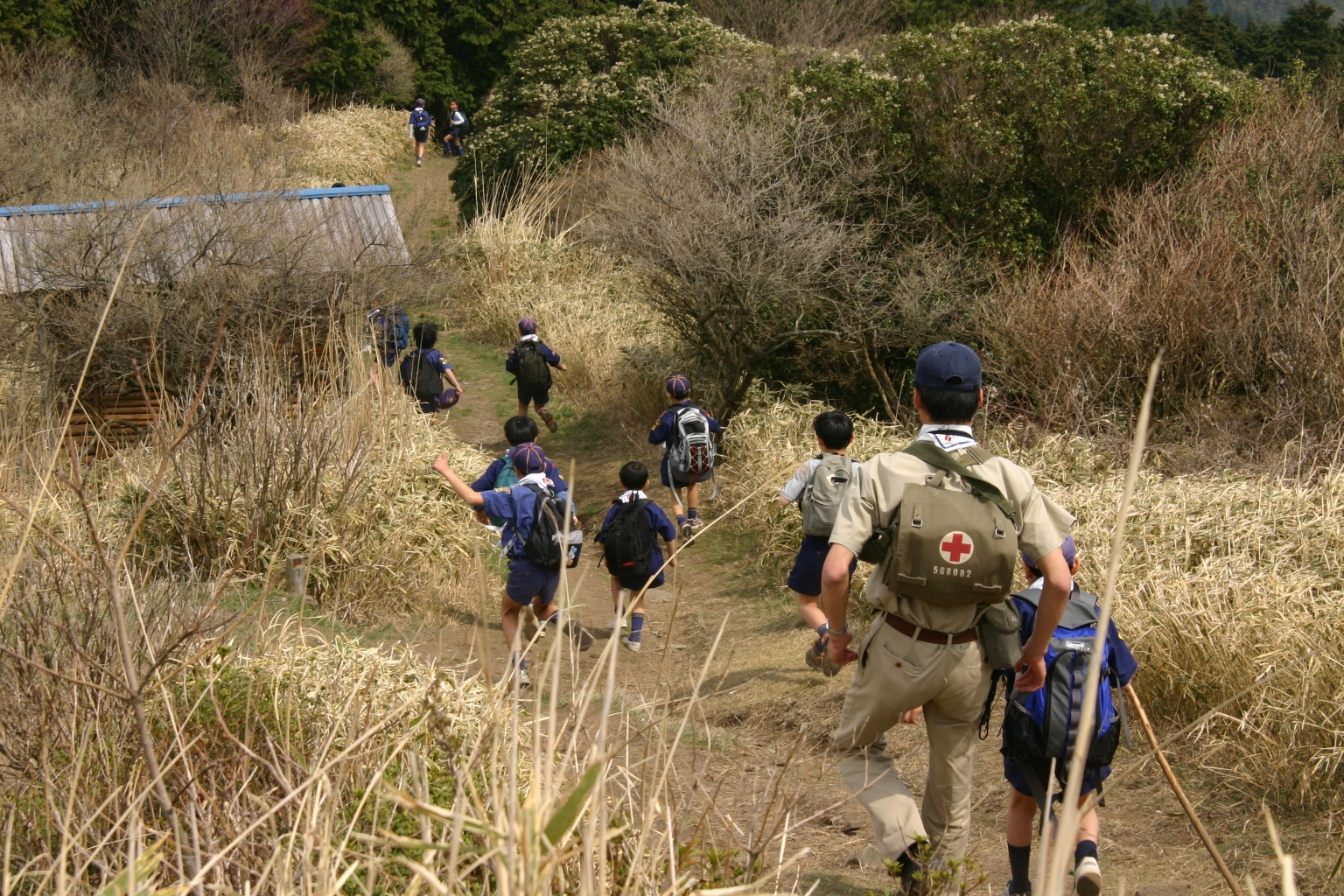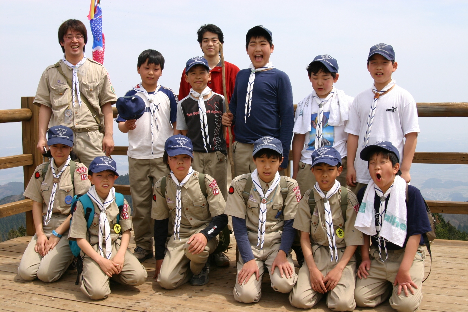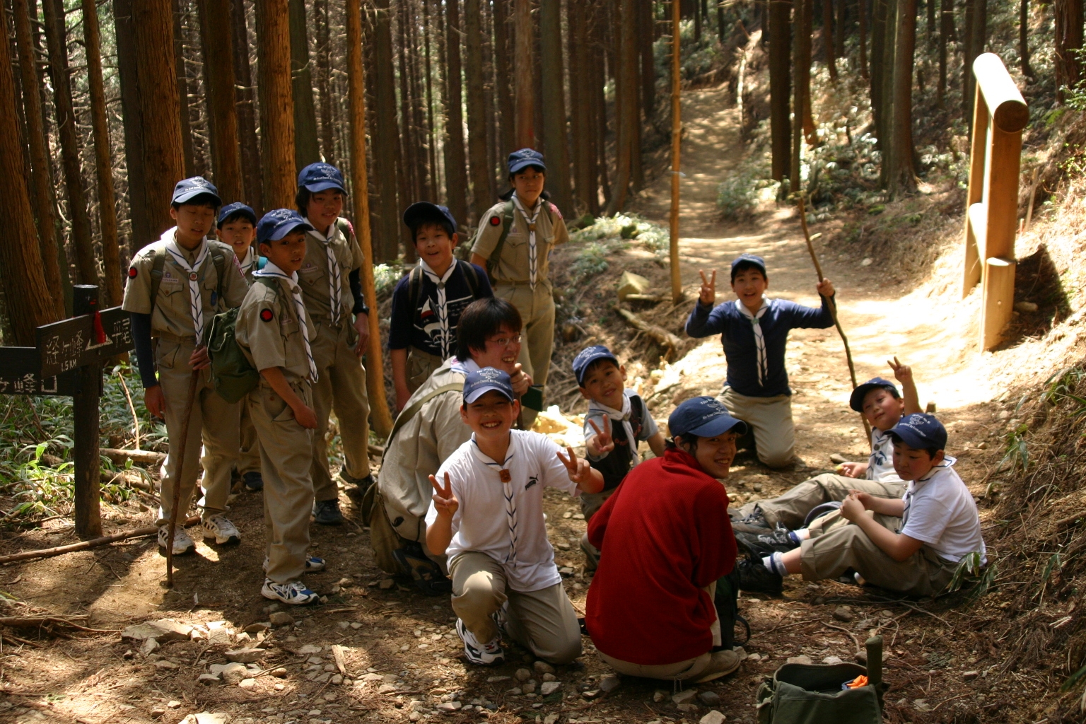 ボーイ隊は山出(経ヶ峰口)から、カブ隊は平尾(比佐豆知菅原神社)から、ビーバー隊は平尾大谷林道の最終駐車場から山頂を目指しました。