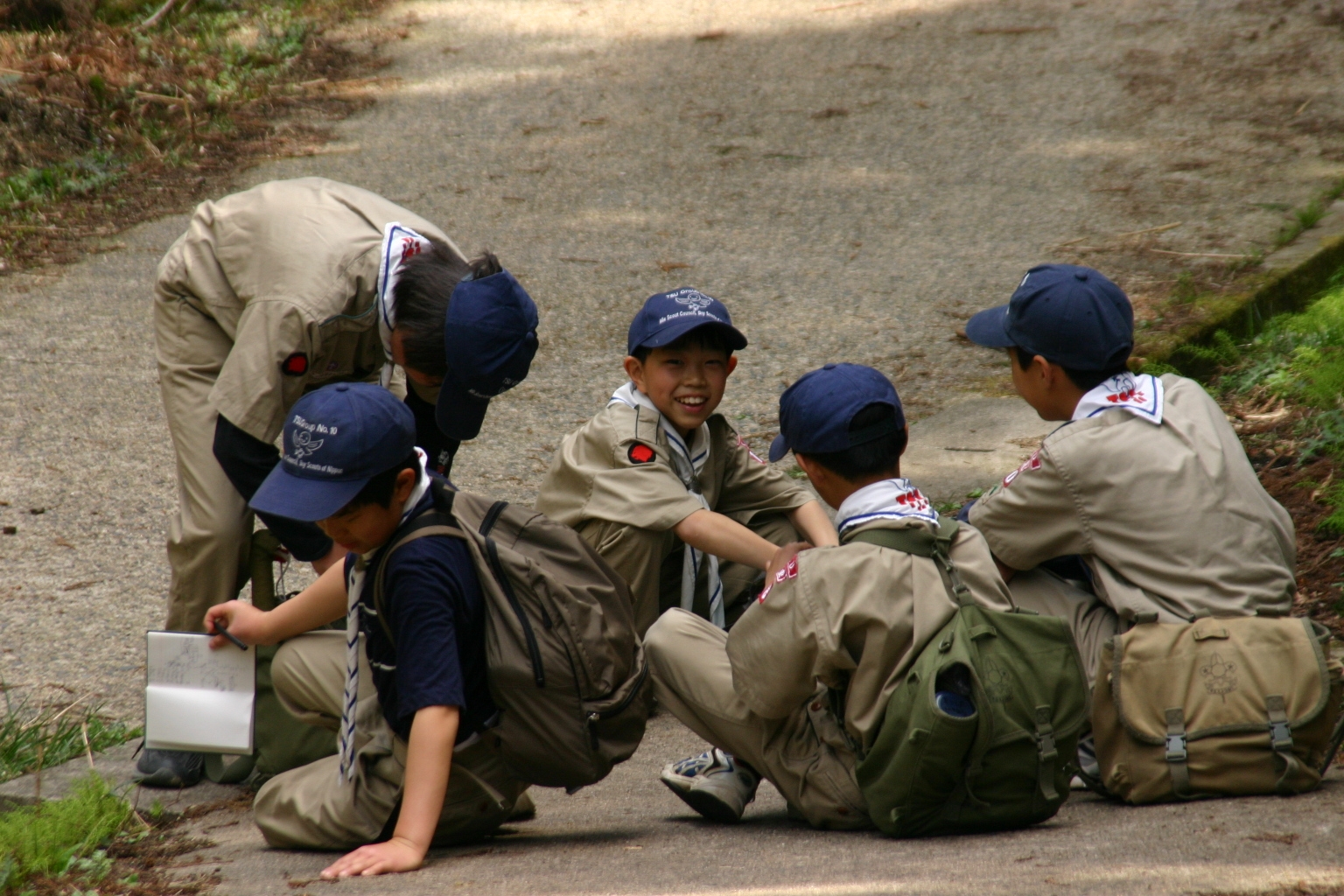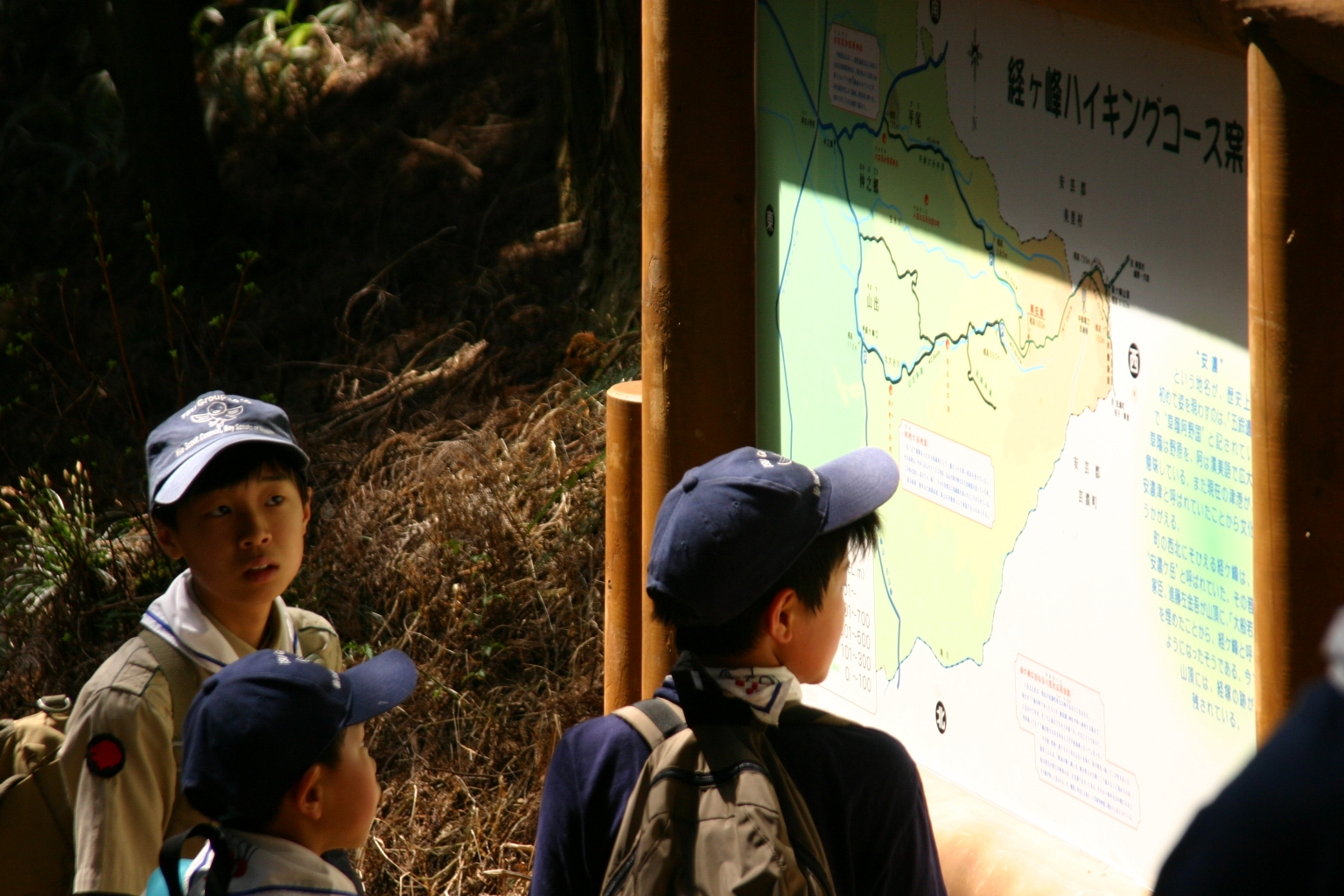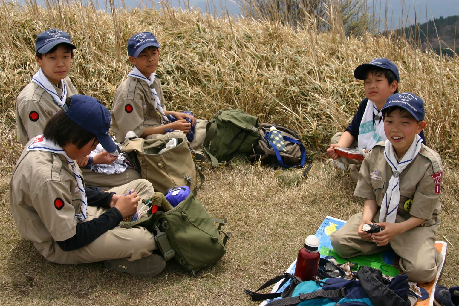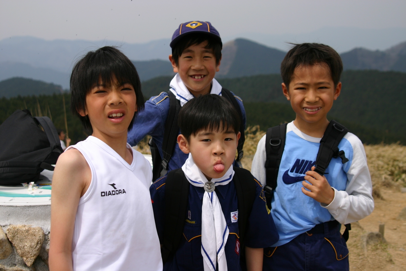 ボーイ隊は山出(経ヶ峰口)から、カブ隊は平尾(比佐豆知菅原神社)から、ビーバー隊は平尾大谷林道の最終駐車場から山頂を目指しました。