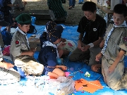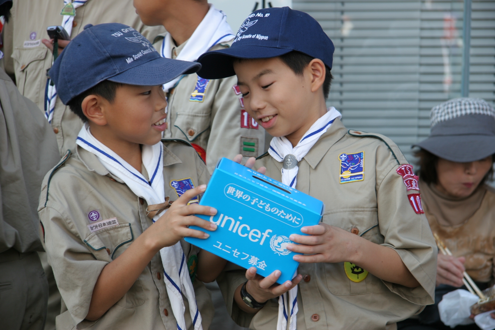 ベンチャー隊、ローバー隊、指導者はスカウトコーナーで奉仕を、ビーバー隊、カブ隊、ボーイ隊はユニセフ募金を行いました。