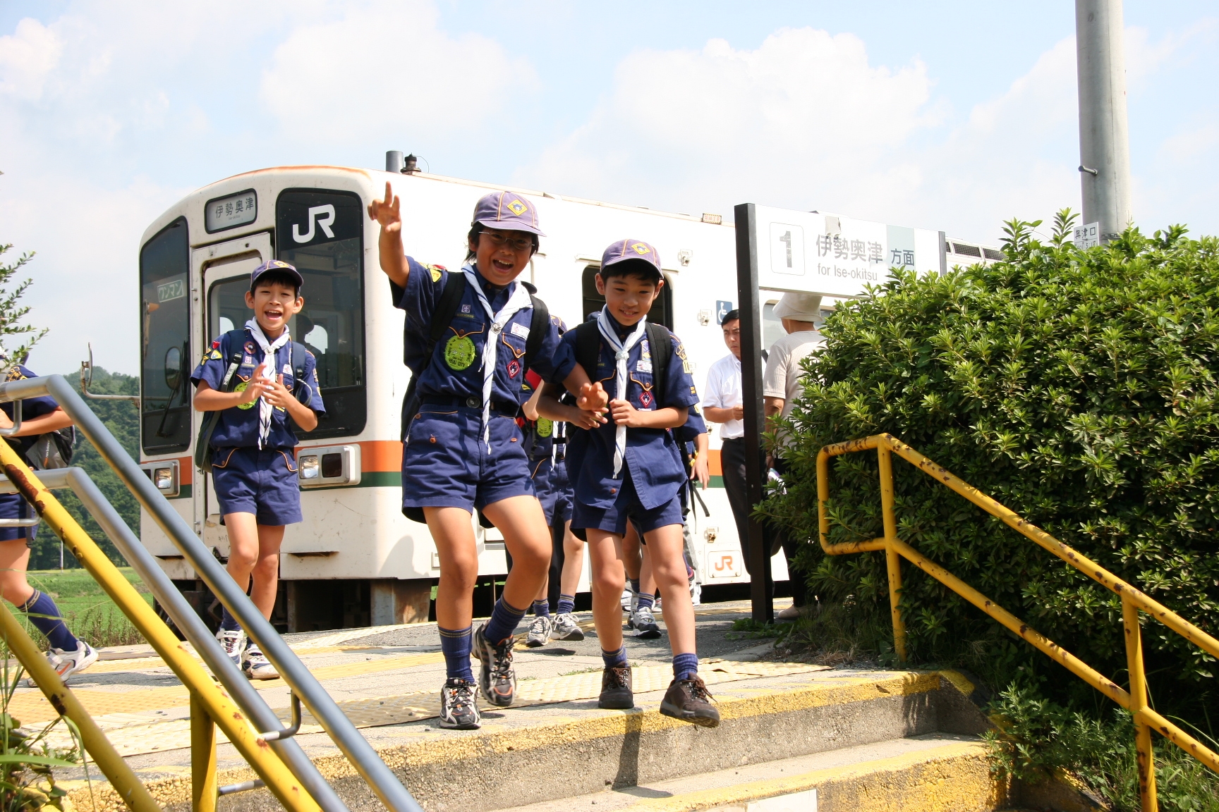 津えきからJRきせい線のかい速みえで、松さかえきまで、行って名松線で家き駅まで乗った。わかすぎの里まで歩いていった。歩くのはえらかった。バンガローの中が二階でよかった。UNOやトランプをして楽しかった。 キャンプファイヤーでは、カブたいでマルマルマルをした。去年もしたし、練習もしてうまくできた。ボーイたいのじゃんけんゲームもおもしろかった。ぼくはいぬまでいった。 アブラハムには七人の子はおもしろかった。キャンプは楽しかった。(T)