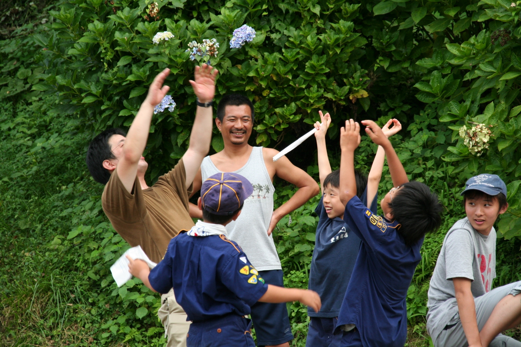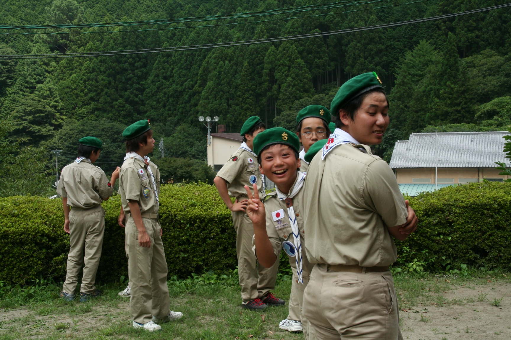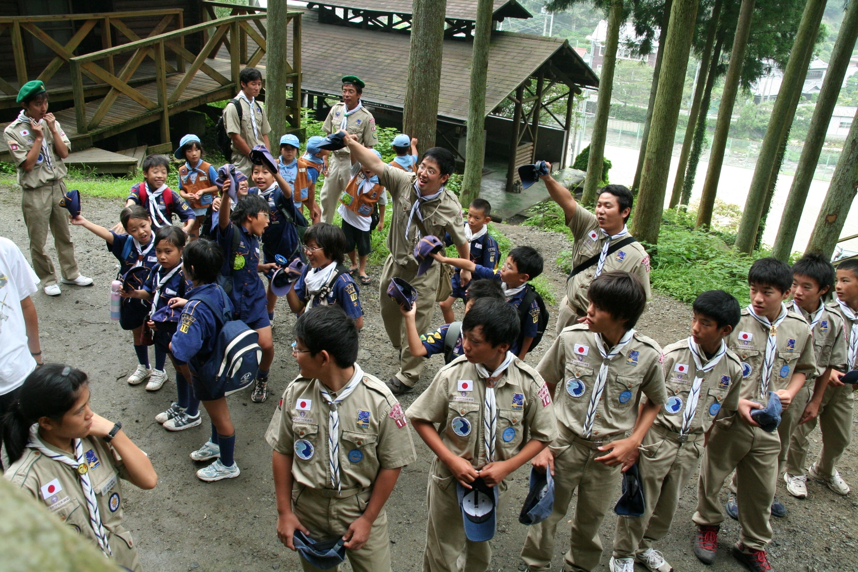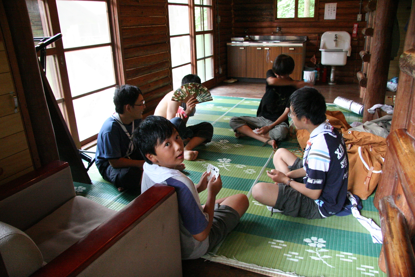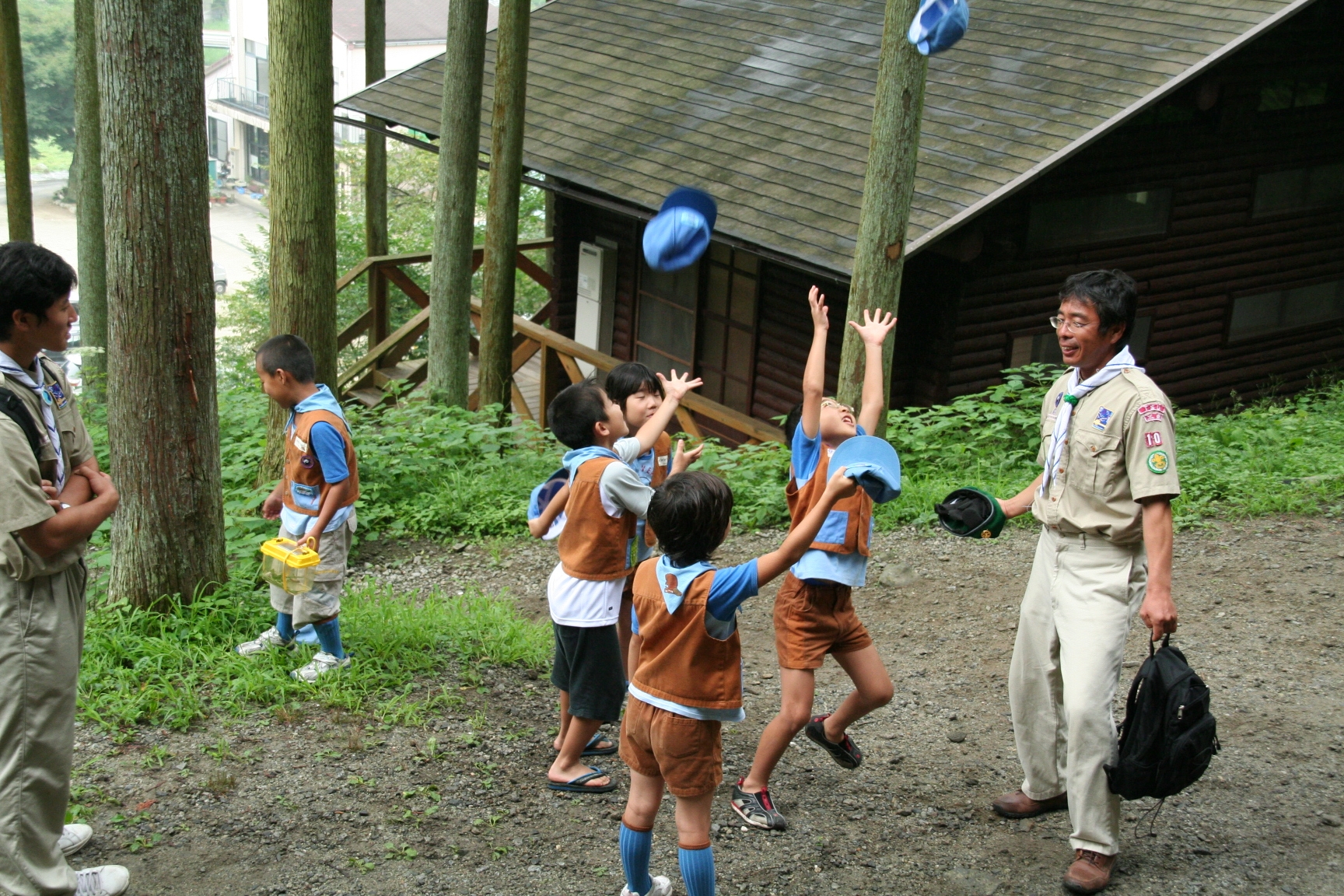 夏休みにボーイスカウトのキャンプに行きました。虫とりや、水えいをしてあそびました。キャンプファイアーでは火のまわりでいっぱいあそびました。よるはなかなかねむれませんでした。つぎの日は、5じ30分くらいにおきました。6じから虫とりをしました。よるに、雨がふっていたので、毛虫があまりいませんでした。キャンプは楽しかったです。(T)