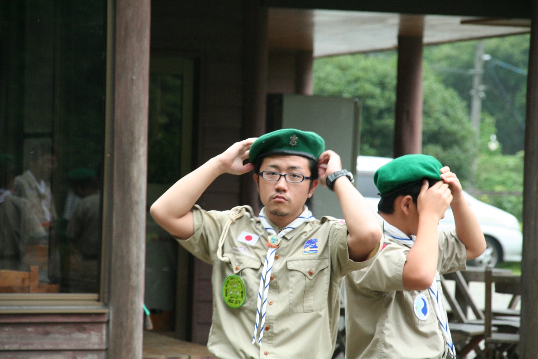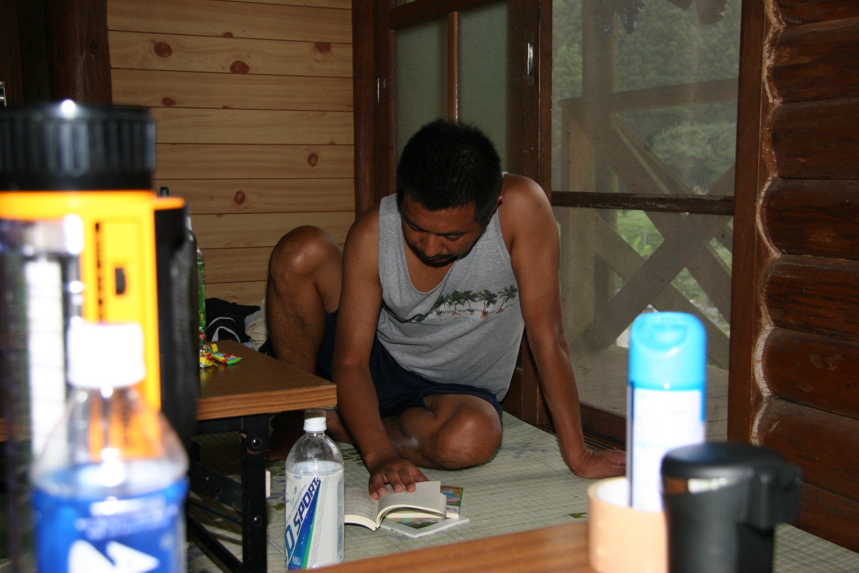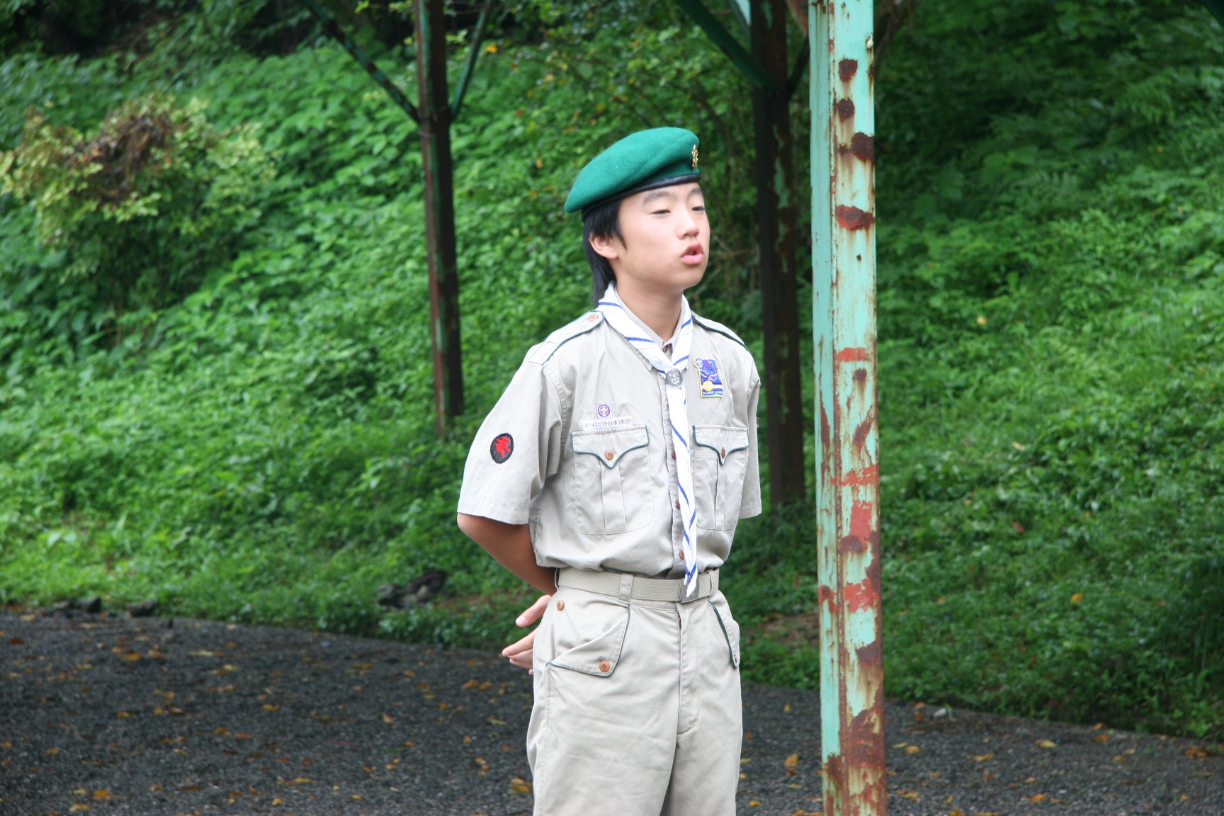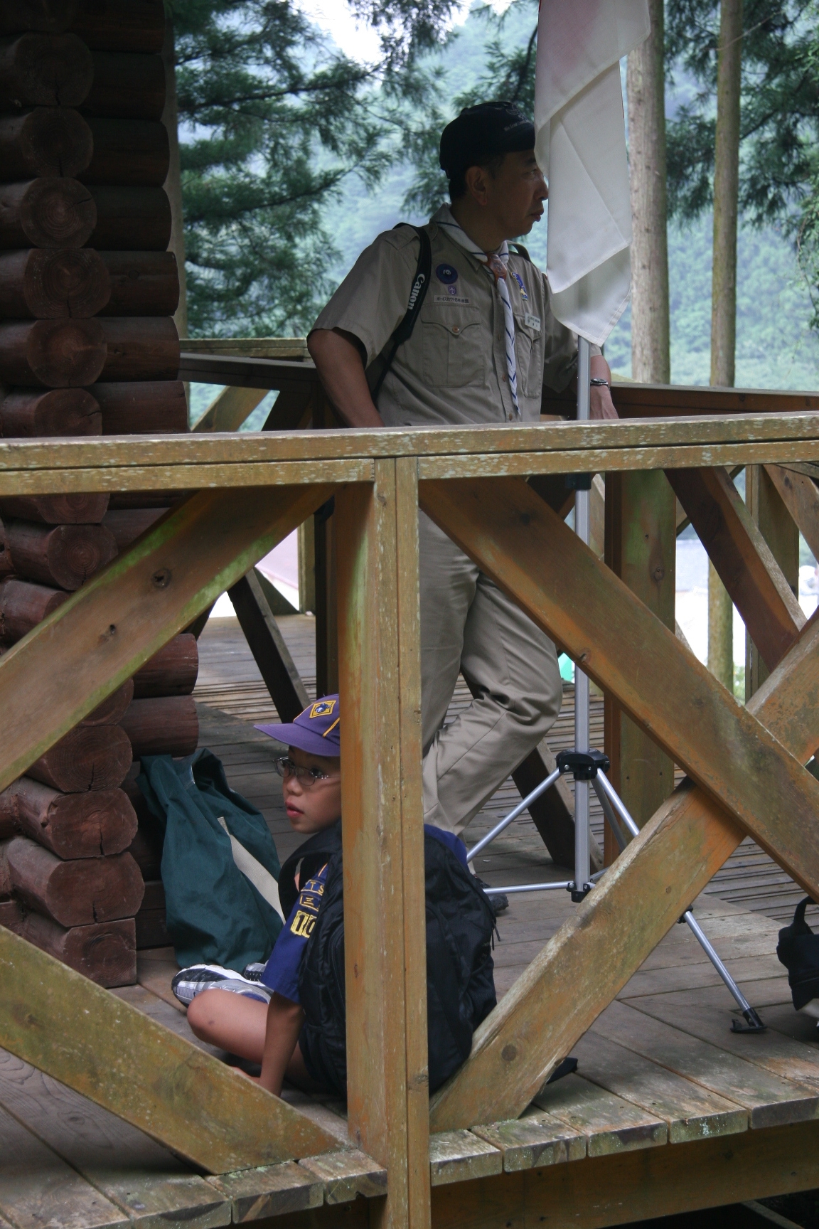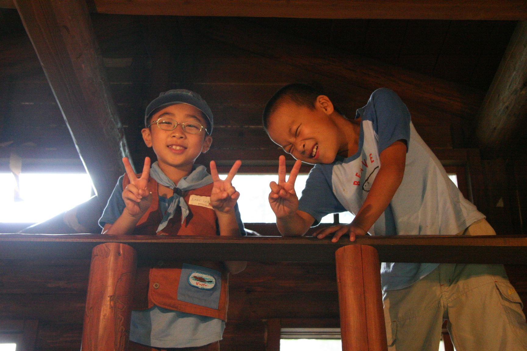 夏休みにボーイスカウトのキャンプに行きました。虫とりや、水えいをしてあそびました。キャンプファイアーでは火のまわりでいっぱいあそびました。よるはなかなかねむれませんでした。つぎの日は、5じ30分くらいにおきました。6じから虫とりをしました。よるに、雨がふっていたので、毛虫があまりいませんでした。キャンプは楽しかったです。(T)