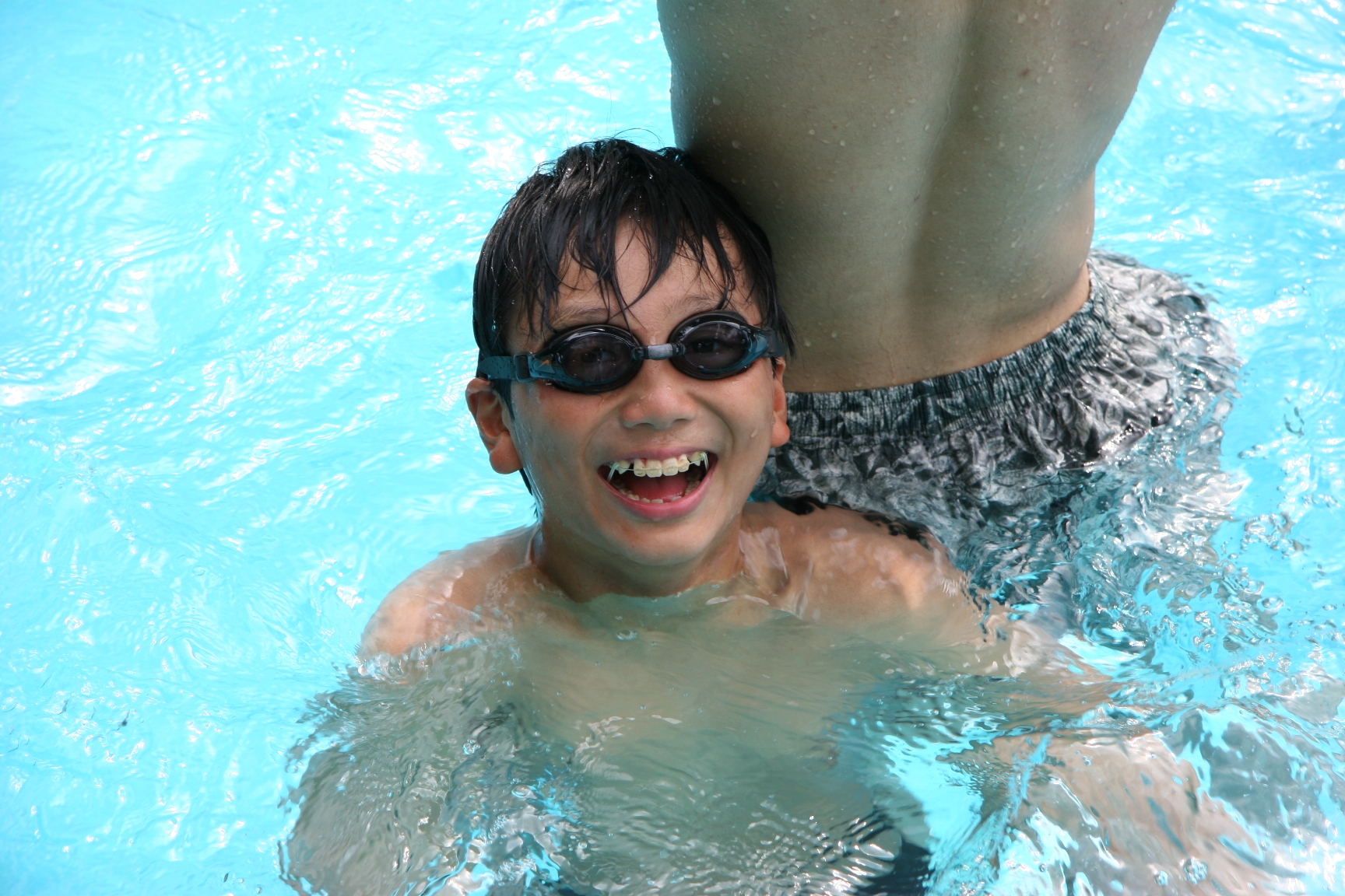 牛丼がとてもおいしかったです。プ−ルでは鈴子ちゃんのお兄ちゃんが鬼ごっこをしてくれたのでとても楽しかった。