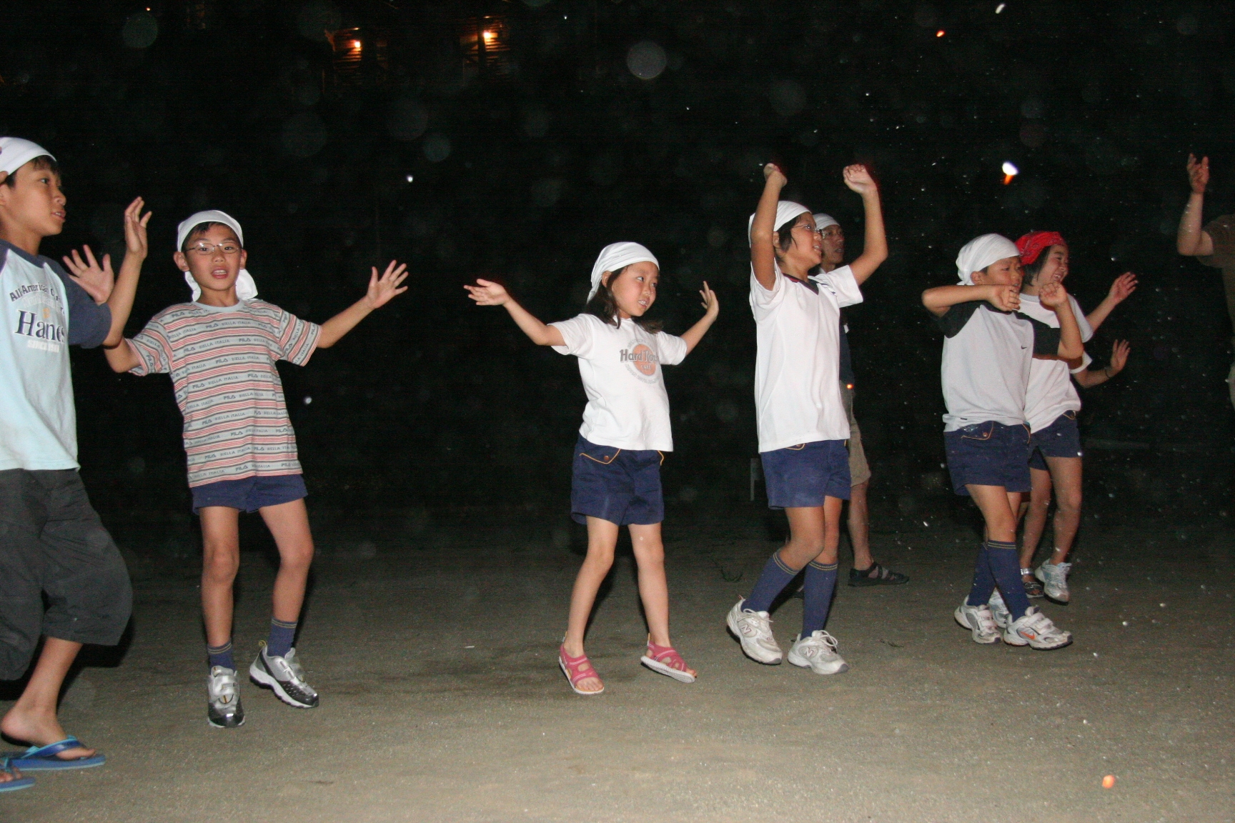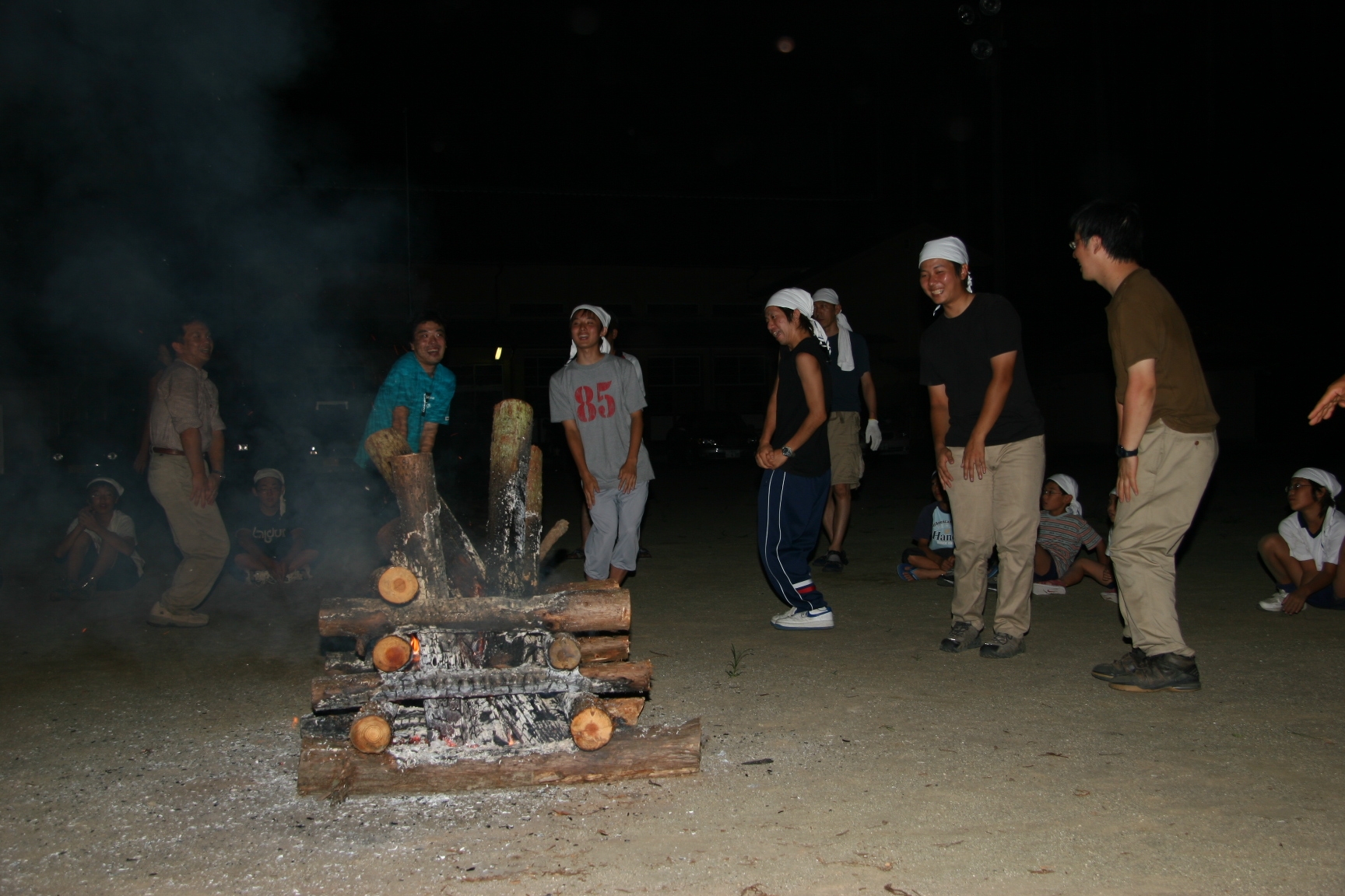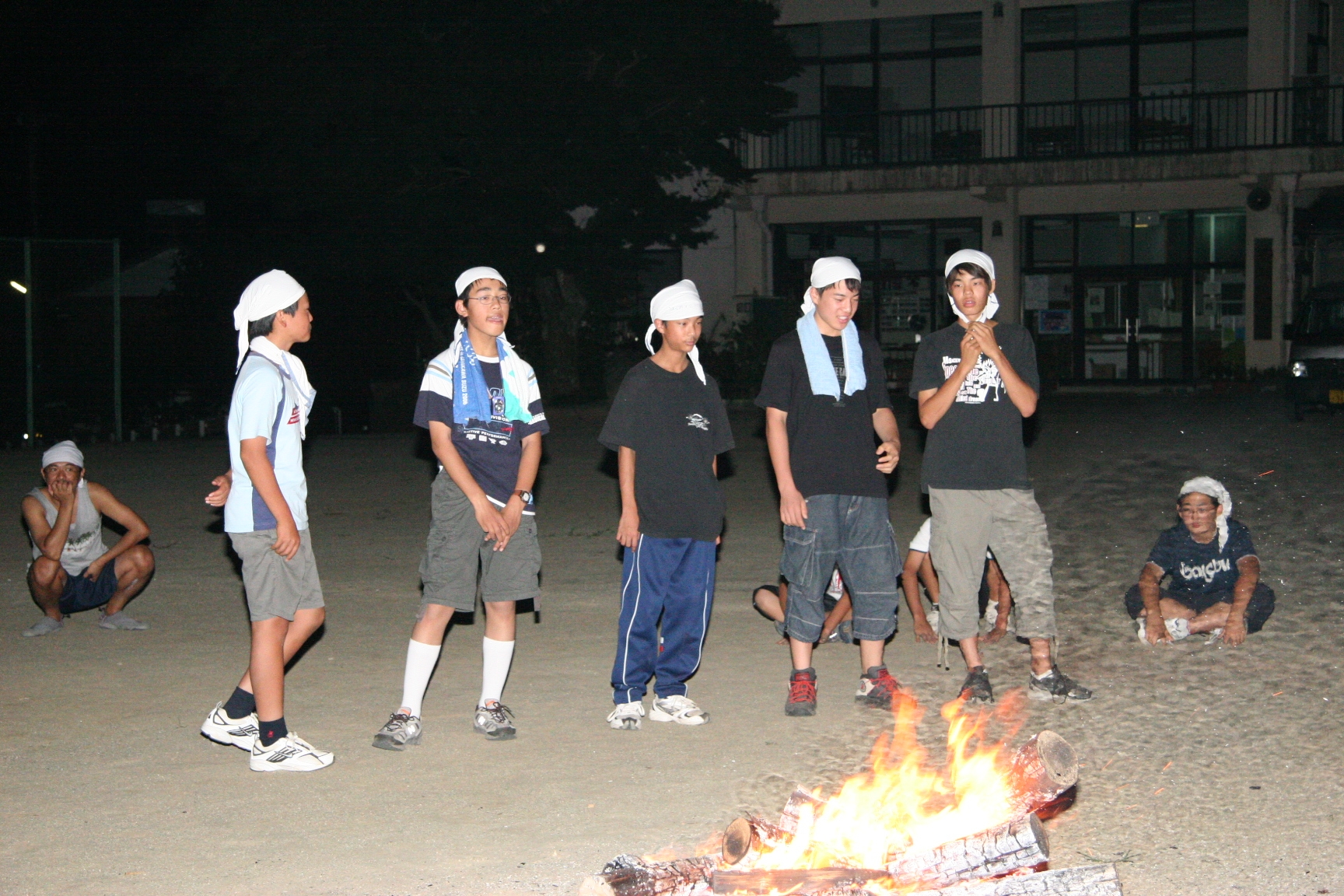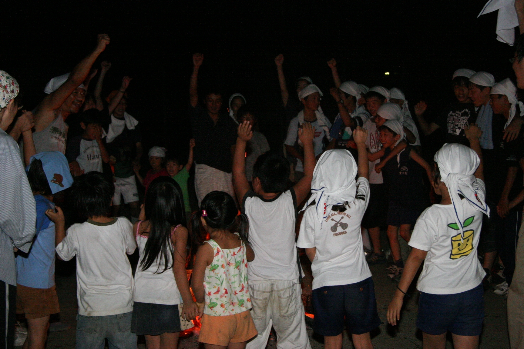 夜、キャンプファイヤ−で歌を歌ったり踊ったので楽しかった。きもだめしもドキドキしました。