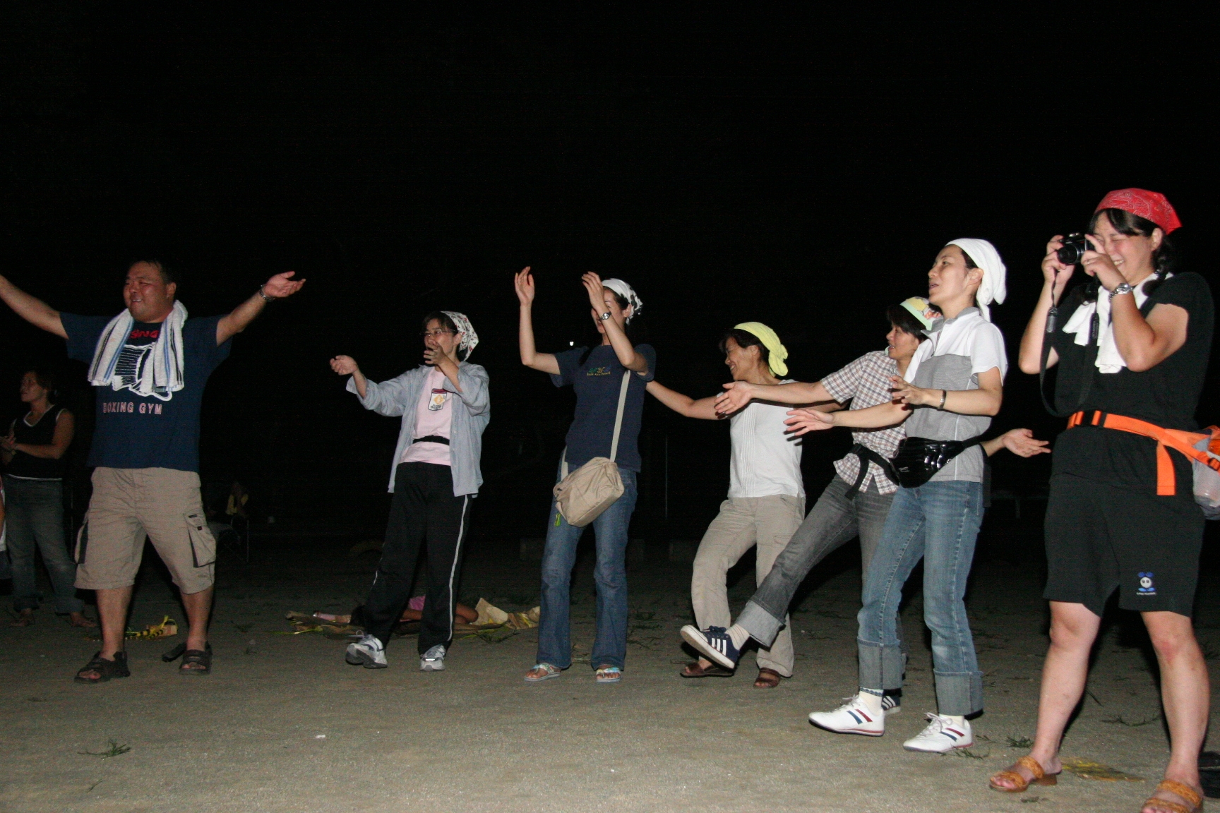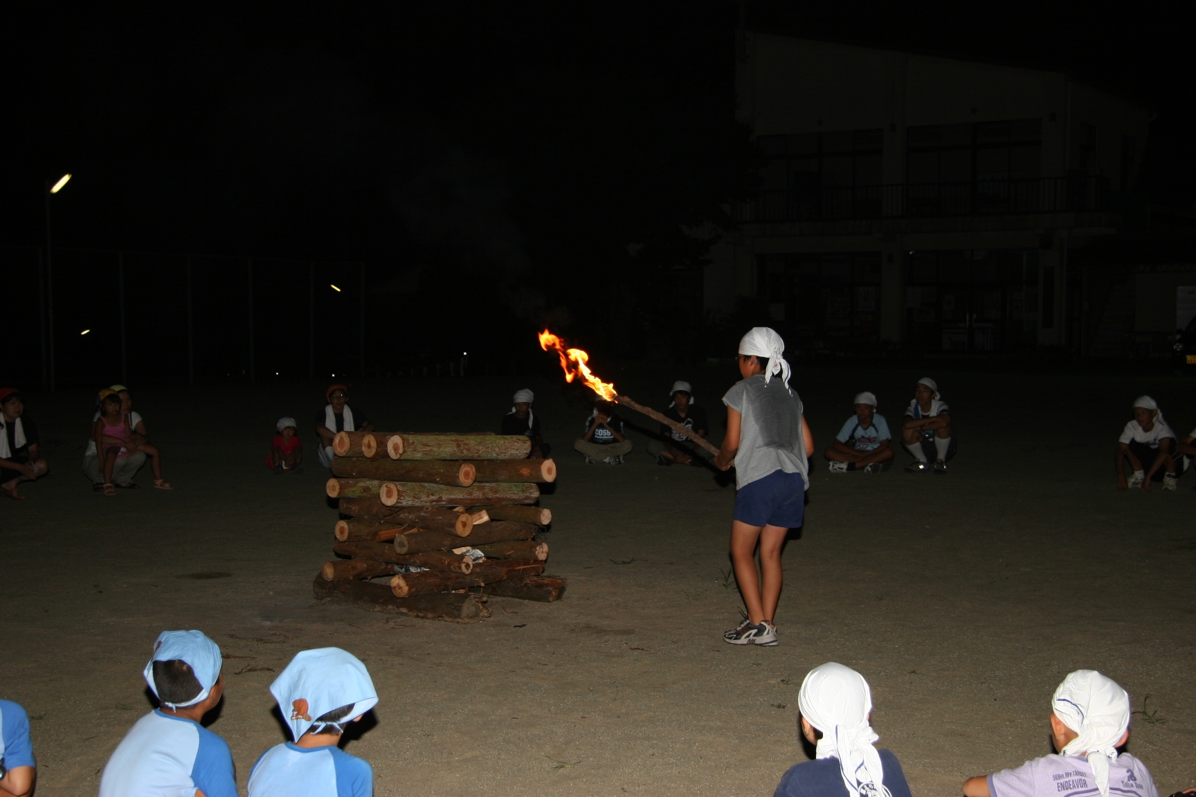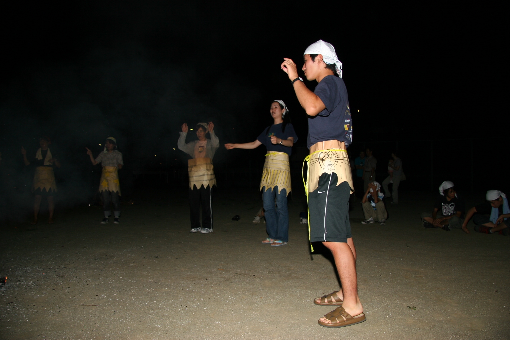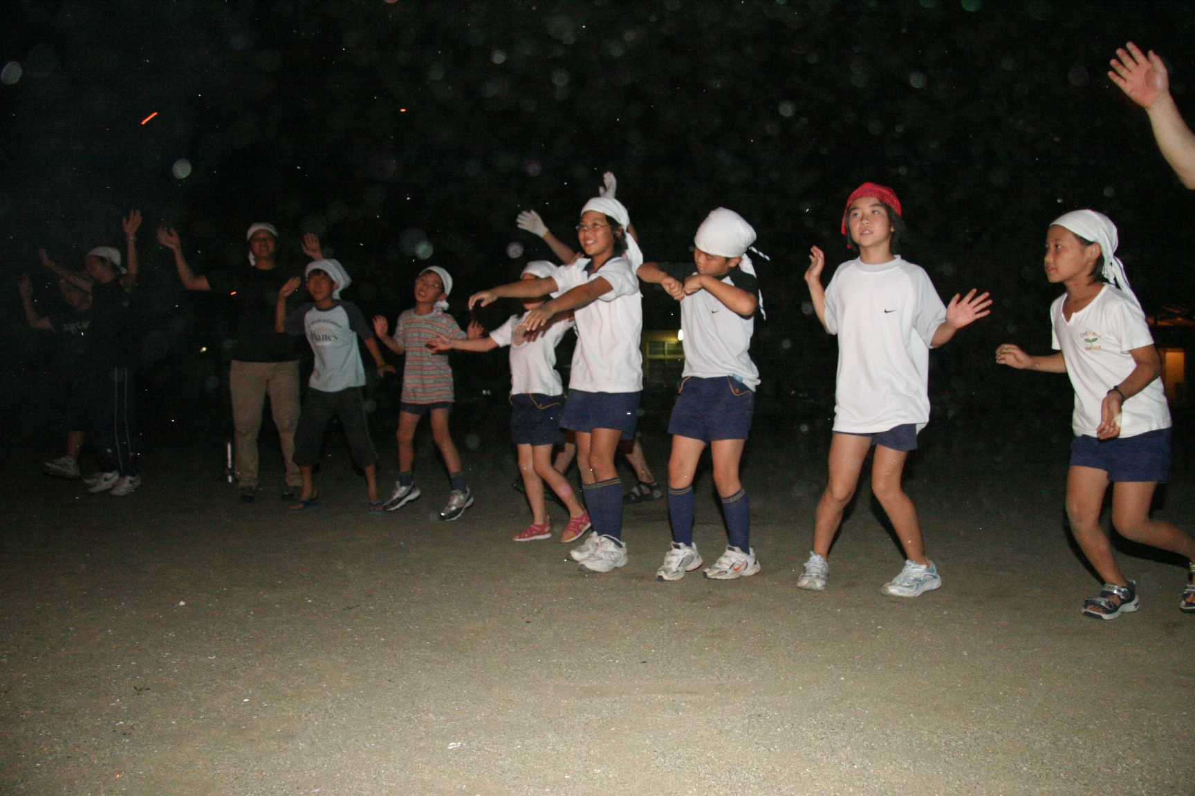 夜、キャンプファイヤ−で歌を歌ったり踊ったので楽しかった。きもだめしもドキドキしました。
