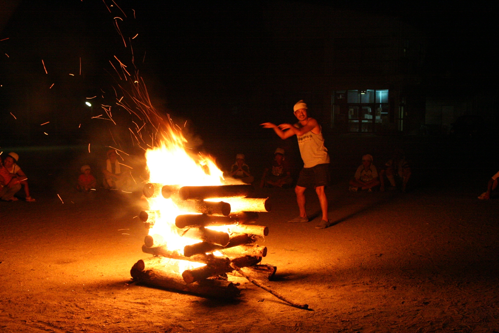 わかすぎの里で一番楽しかったのは、キャンプファイヤーです。火は、友だちが、つけたけど、ぼくも、一回つけたことがあったから、つけたいと思った。だけど、火がついたら、そんなこと忘れて、「もっと、もっと、火、大きくなれ。」と思いました。けれど、火が小さくてがっかりしました。 うたとおどりは、山本さんのいつもの歌とおどりで、もりあがりました。歌で好きなのは、もえろで、おどりはアブラハムです。アブラハムは、体をいっぱいに使っておどるから楽しいです。大杉谷のときより楽しく思えました。キャンプファイヤにウォーウォーウォー。(O)