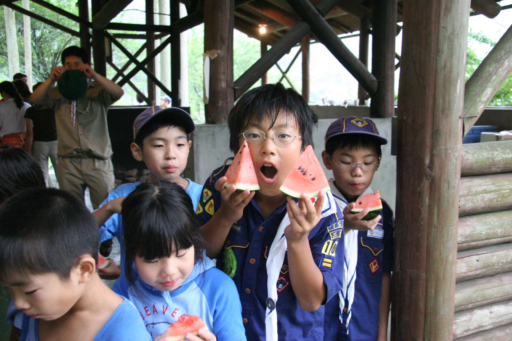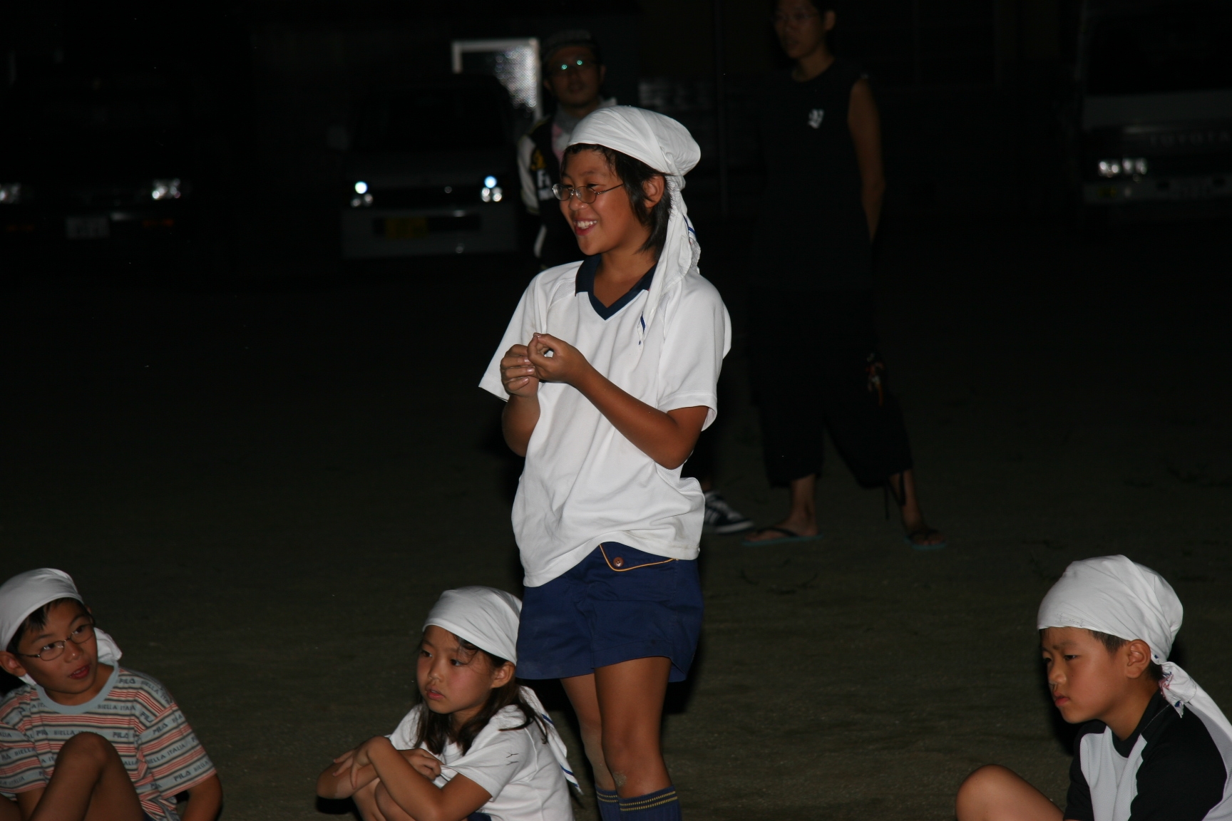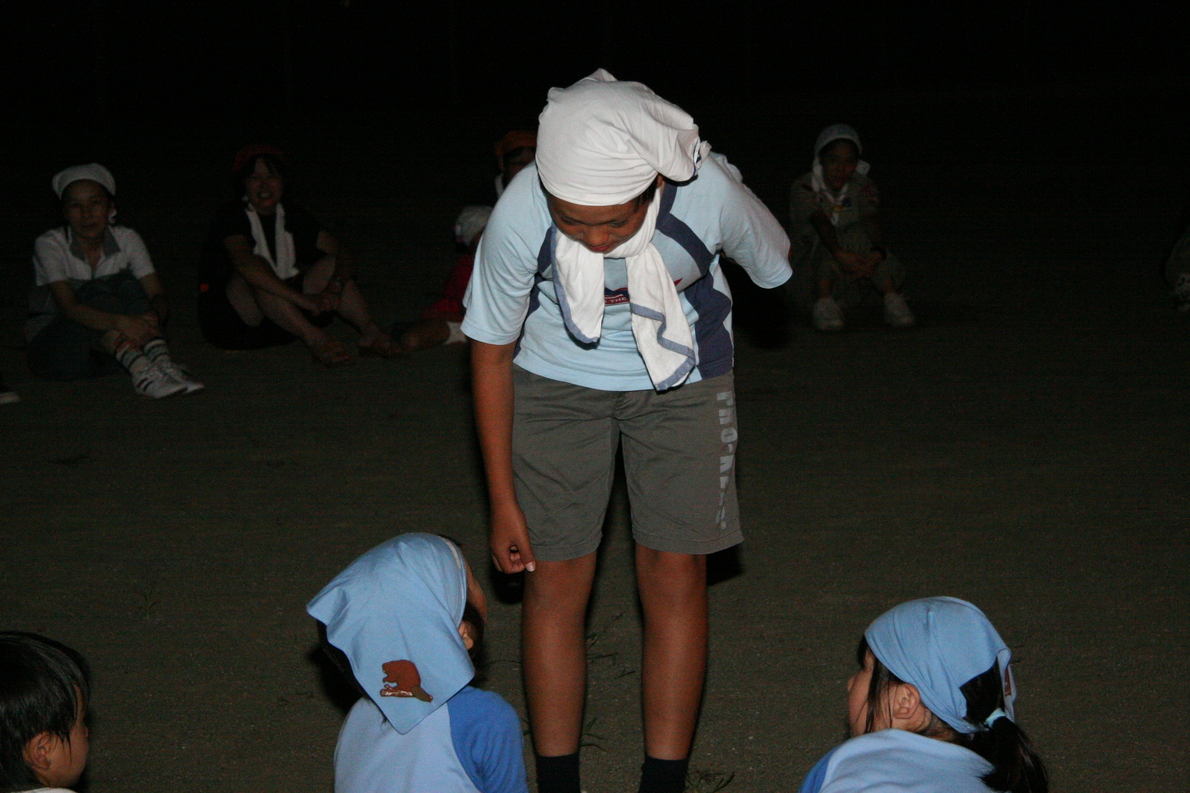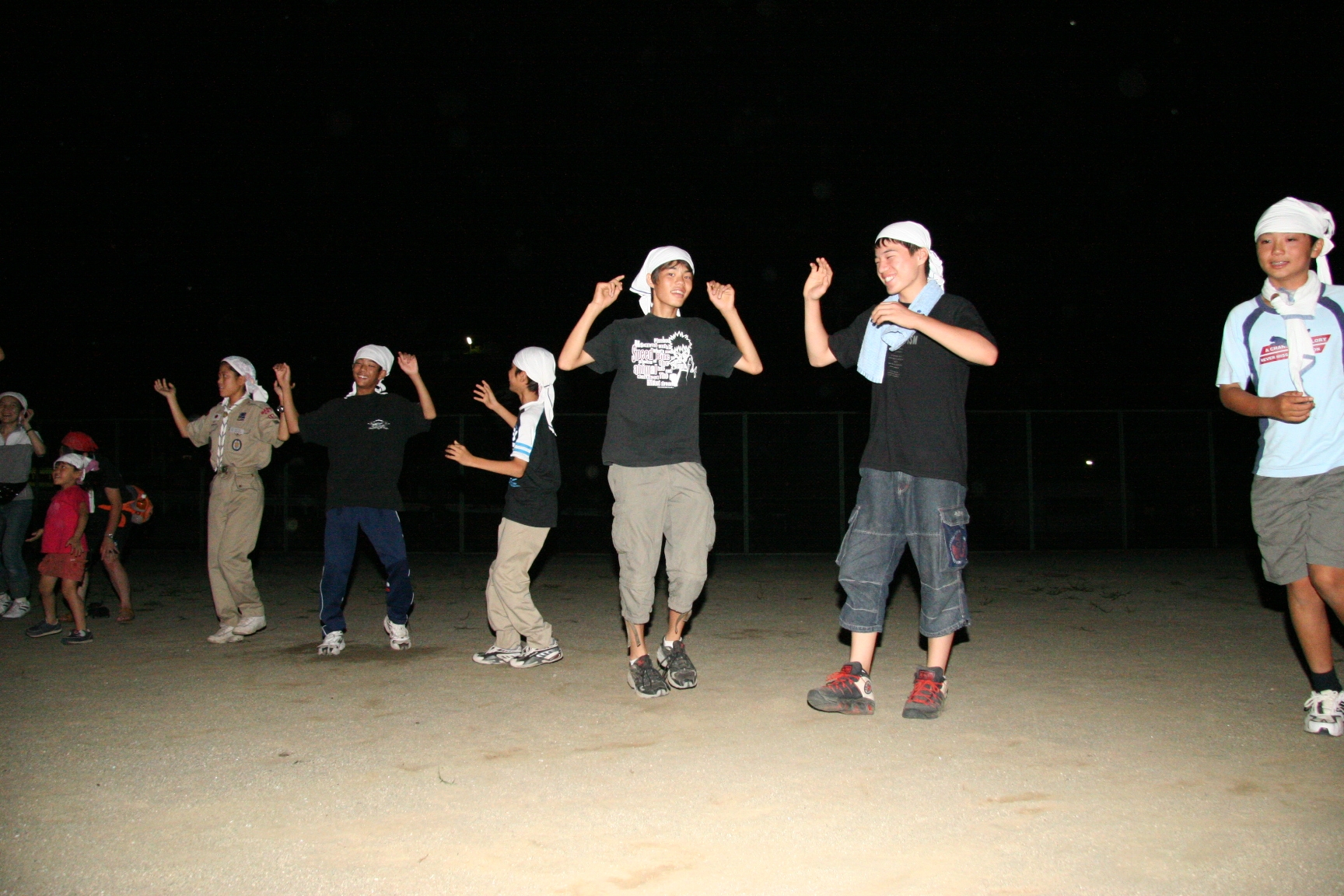 一日目は気温も高く蒸し暑い日でしたが、みんなよく遊んで汗びっしょりでした。鬼のパンツの振り付けは最初は恥ずかしがっている子もいましたが、最後はみんなできめてくれてよかったです。キャンプが初めての人もいましたが、普段と異なる環境でみんな楽しんでいるようでした。(土山ビーバー隊長)