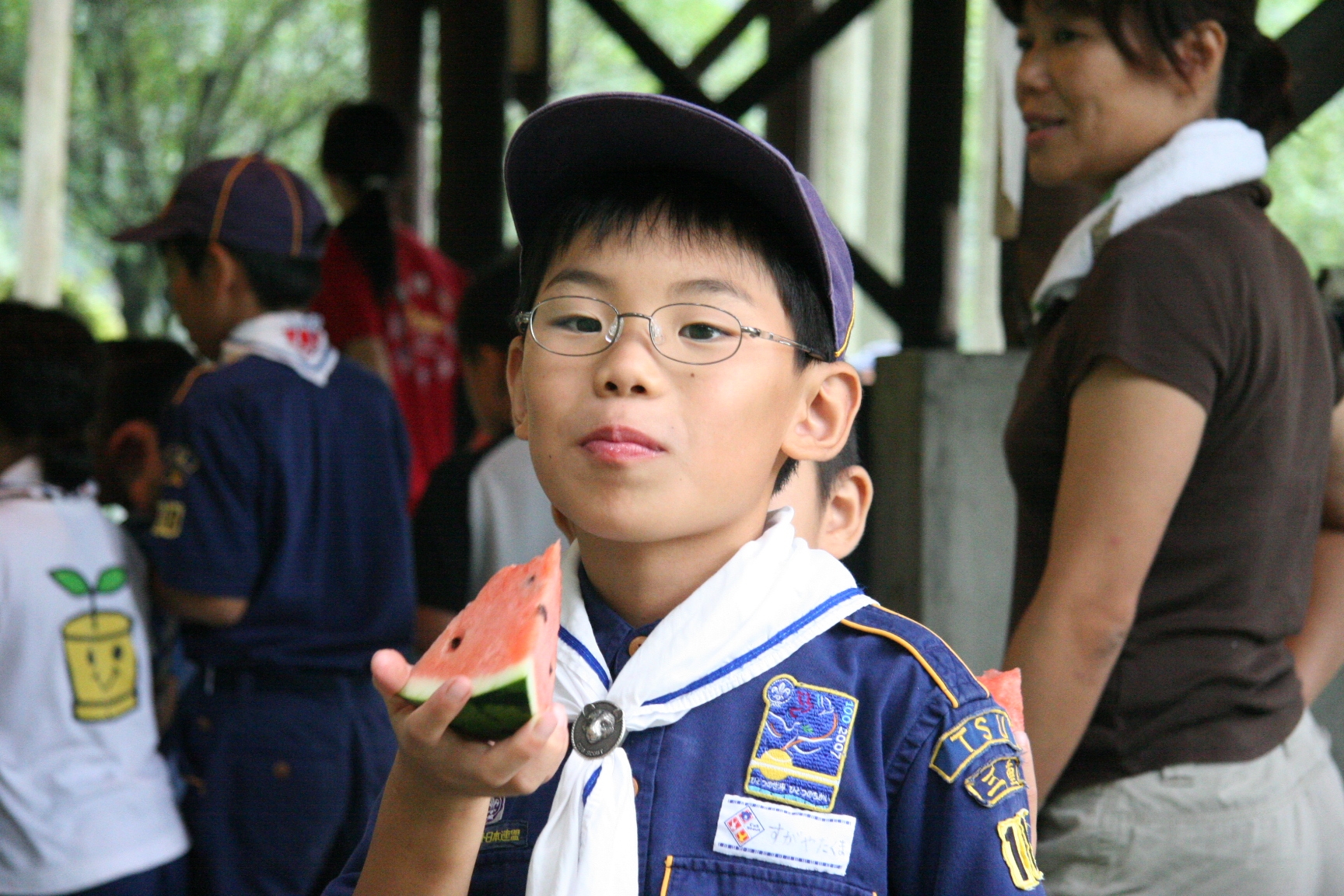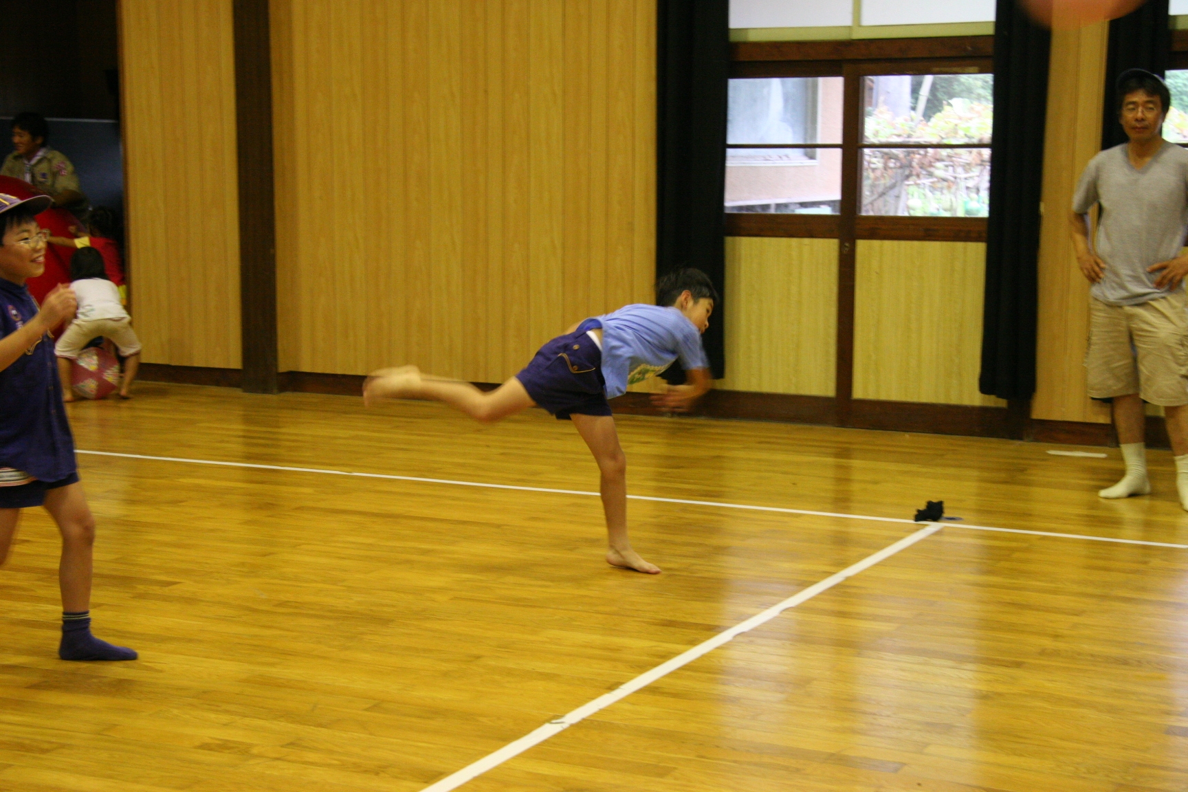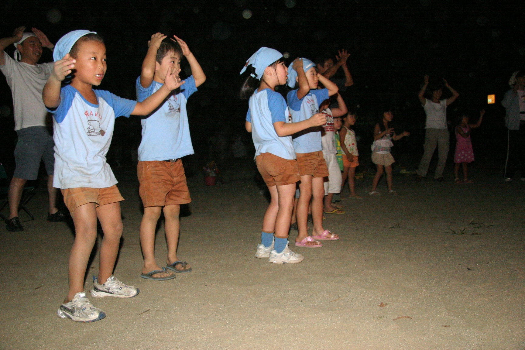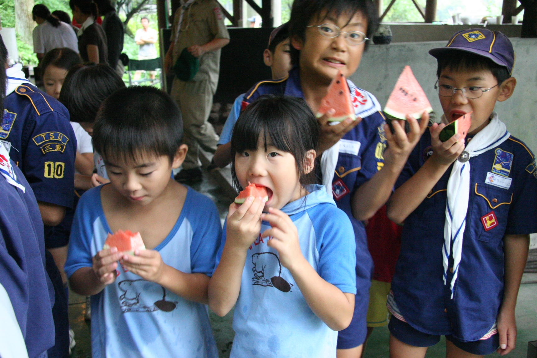 一日目は気温も高く蒸し暑い日でしたが、みんなよく遊んで汗びっしょりでした。鬼のパンツの振り付けは最初は恥ずかしがっている子もいましたが、最後はみんなできめてくれてよかったです。キャンプが初めての人もいましたが、普段と異なる環境でみんな楽しんでいるようでした。(土山ビーバー隊長)