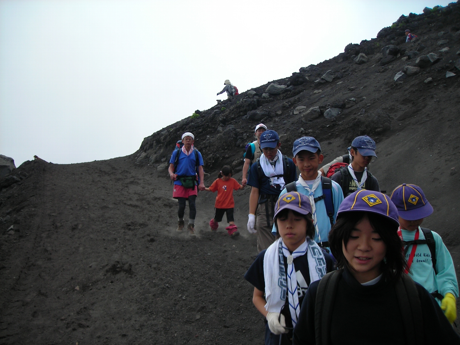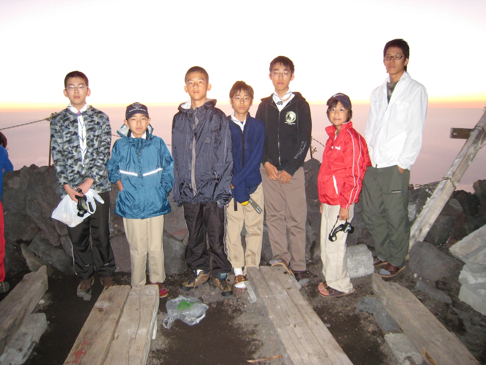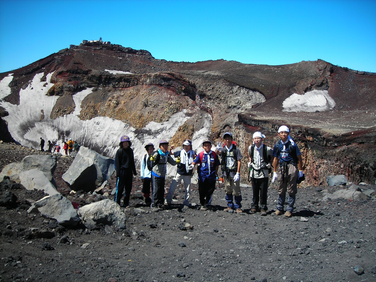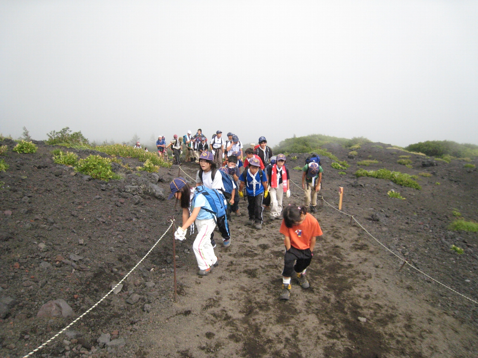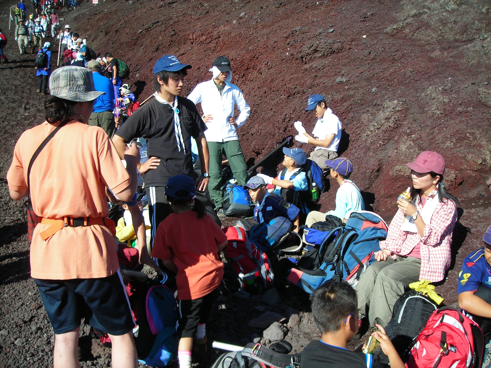 一日目は順調なペースで七合目まで行くことができましたが、二日目は疲労と酸素不足で体調を崩した子がでてきてペースに大きく差が出てしまい、先頭と最後尾で大きく離れてしまいました。