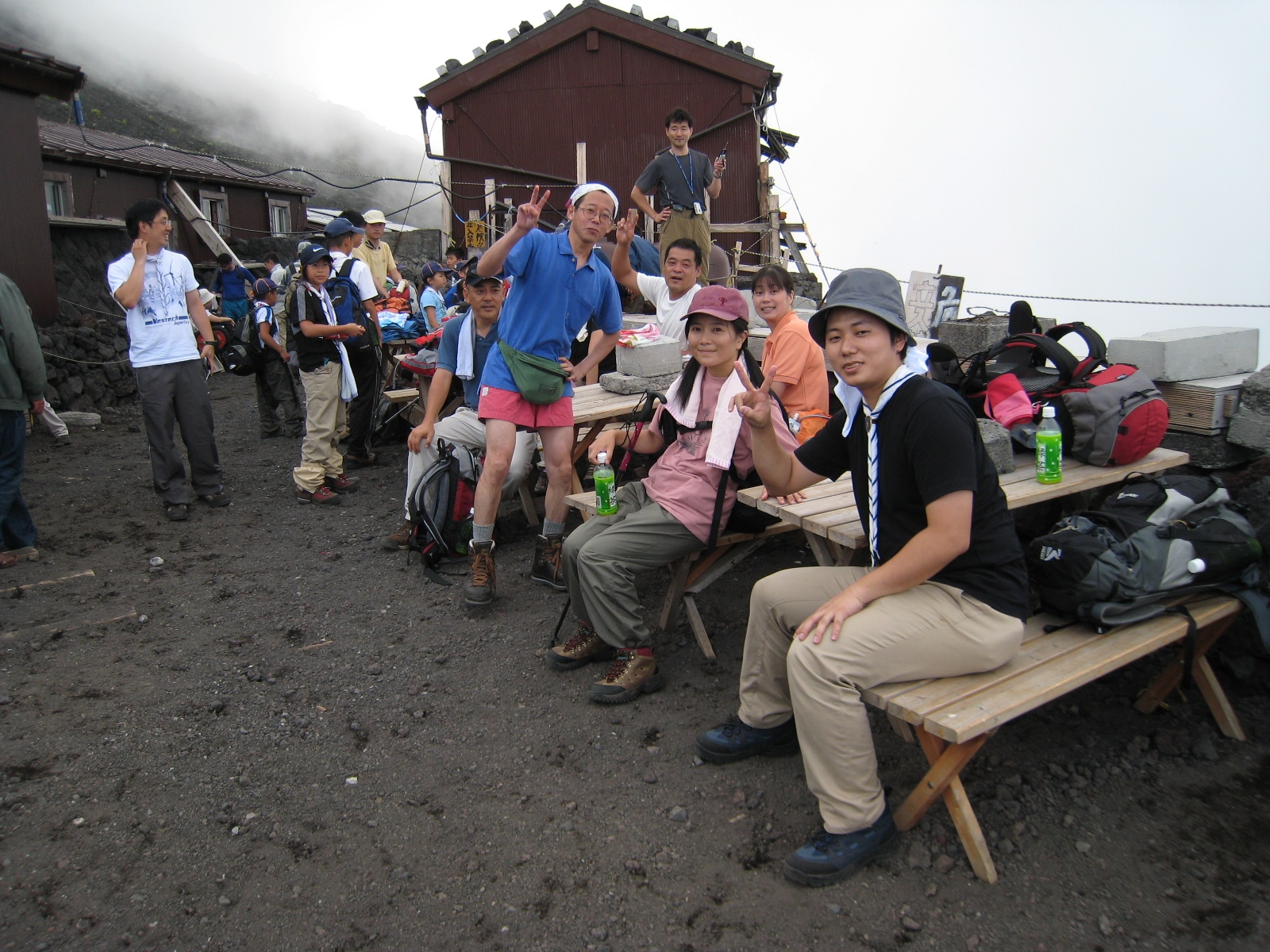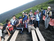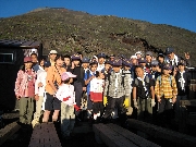 ご来光の直後にご飯をいただき、食事後出発しました。清水と平野は高山病の症状が出てペースが上がらなかったのですが、ほかのものについては、第1陣で富士山山頂に到着し、清水と平野についても遅れながらも山頂に到着することが出来ました。そのあと下山道で降りていきました。