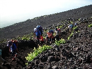 5合目から6合目は緑が多く、6合目から7合目までは樹木等がなく潅木しかなく、富士山らしい感じでした。