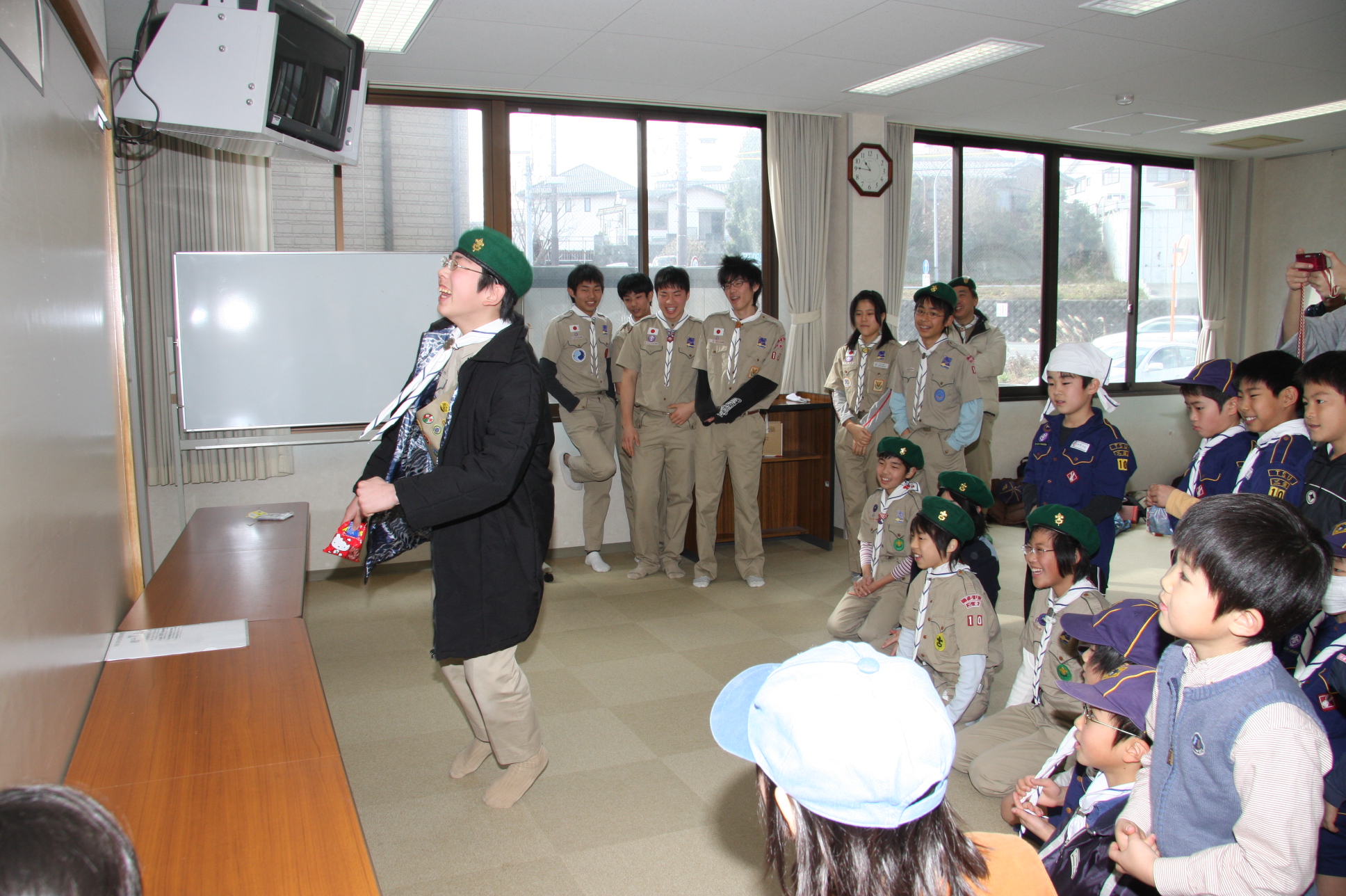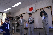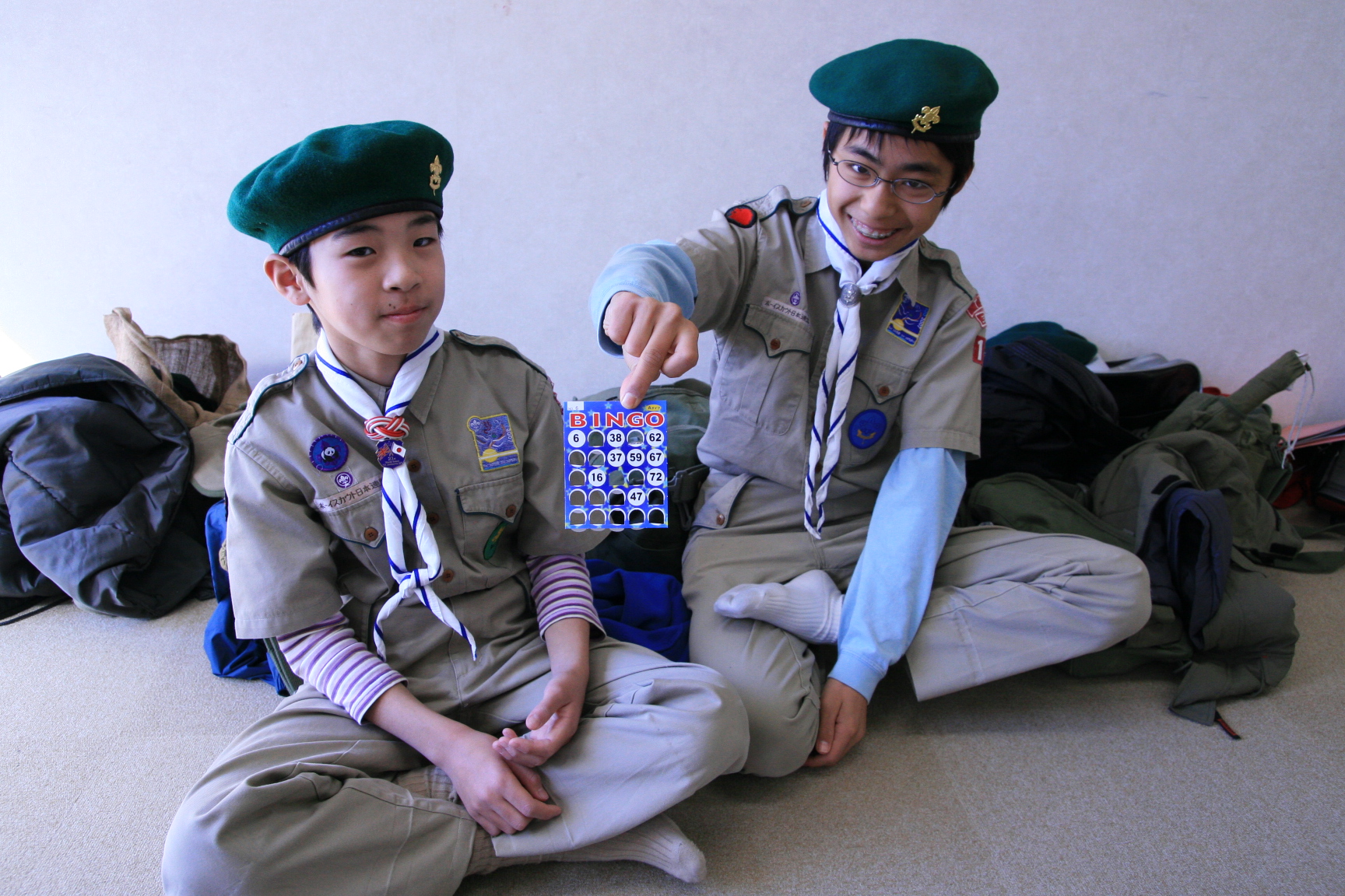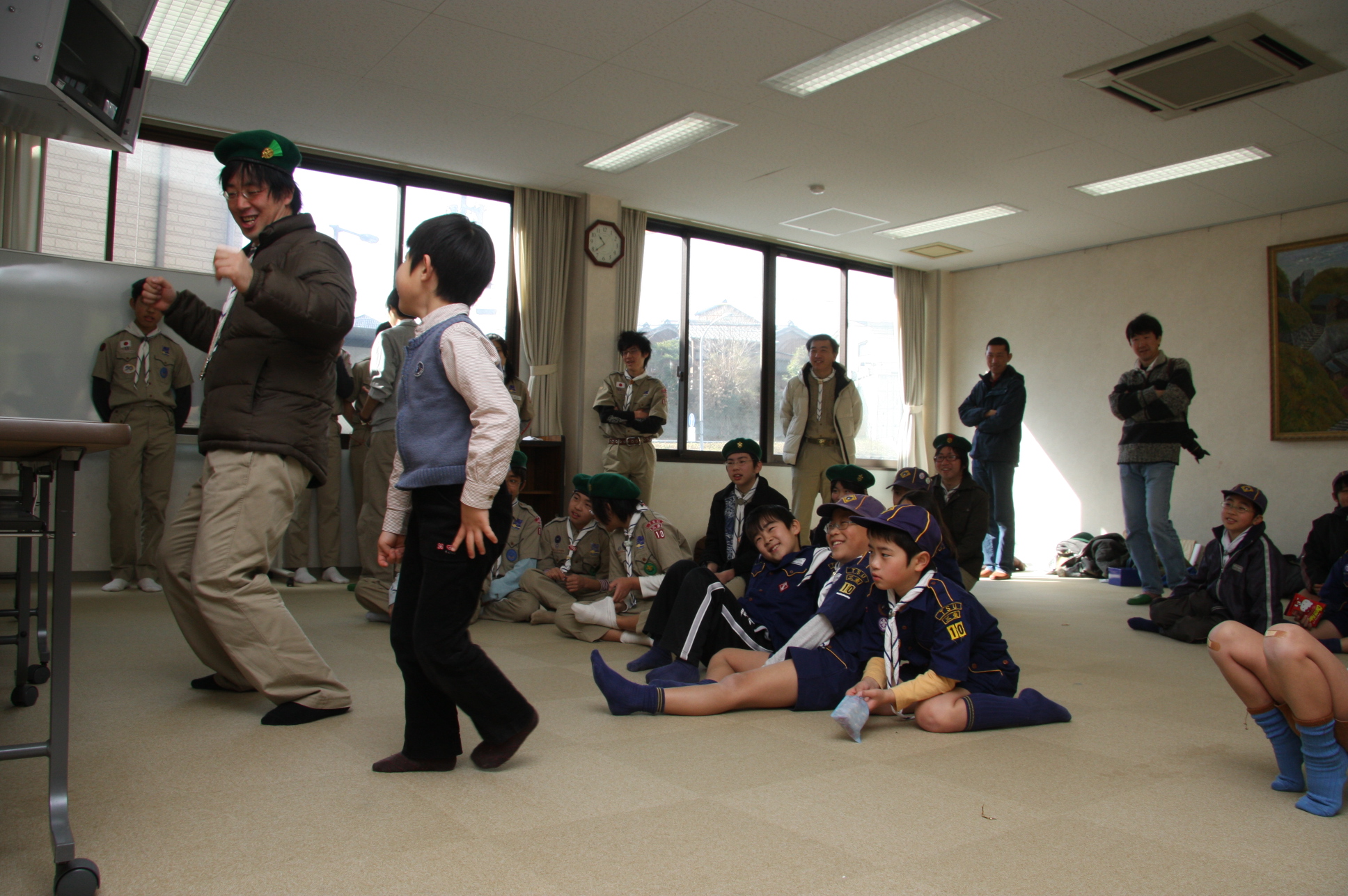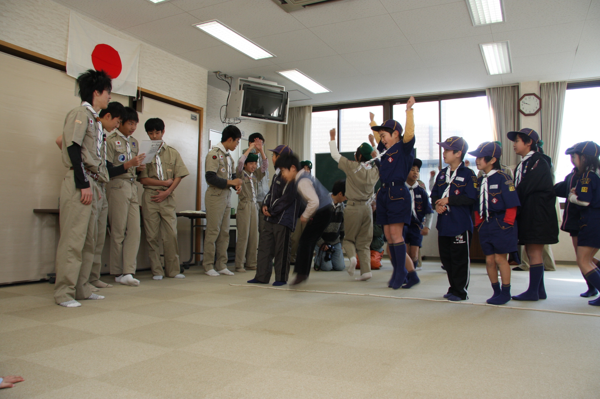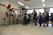 セレモニーでちかいとおきてを実唱し、その後のベンチャー隊主催のレクでBPクイズ、ビンゴゲーム、そしてじゃんけん列車ゲームを通してしてビーバー、カブのみんなと楽しく交流できました。(小瀬古団委員)