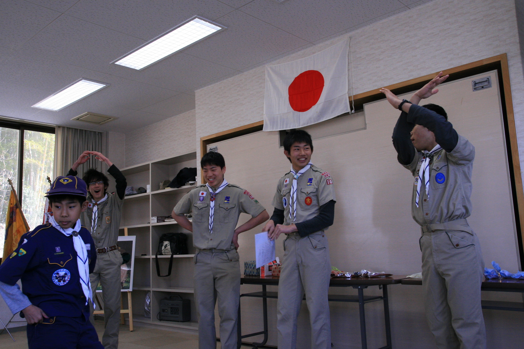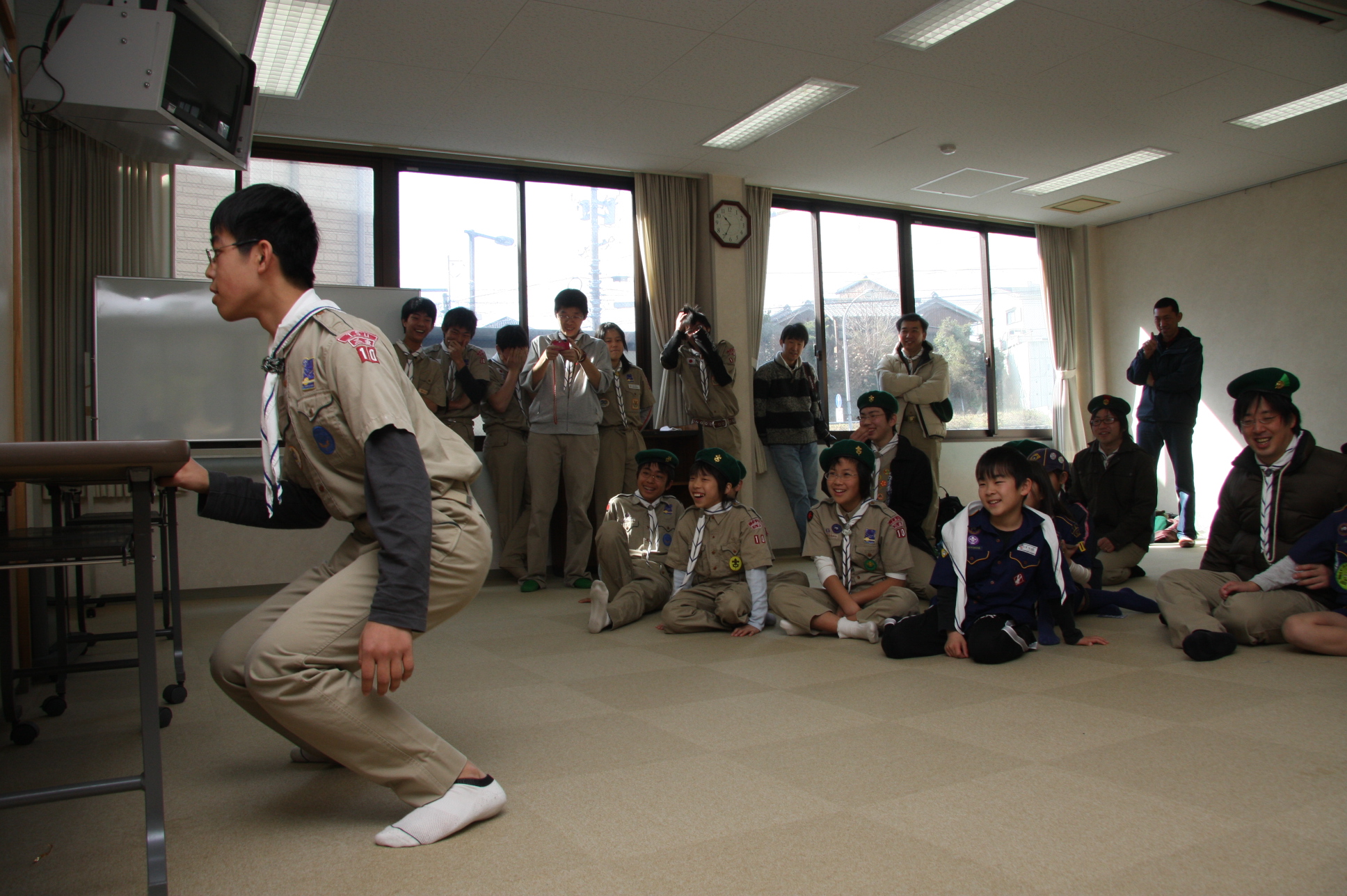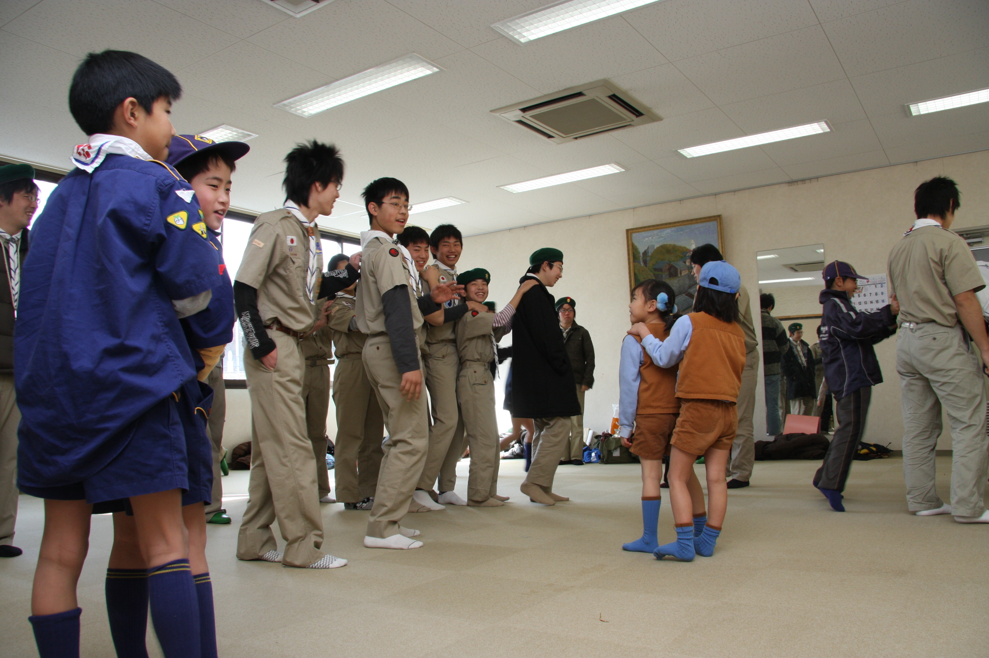 セレモニーでちかいとおきてを実唱し、その後のベンチャー隊主催のレクでBPクイズ、ビンゴゲーム、そしてじゃんけん列車ゲームを通してしてビーバー、カブのみんなと楽しく交流できました。(小瀬古団委員)