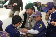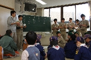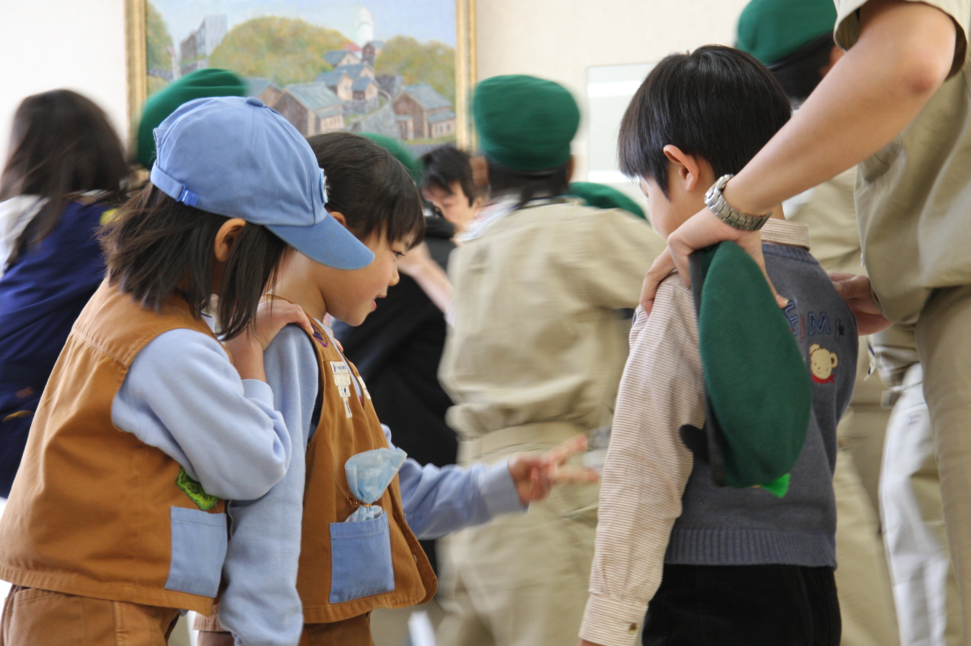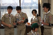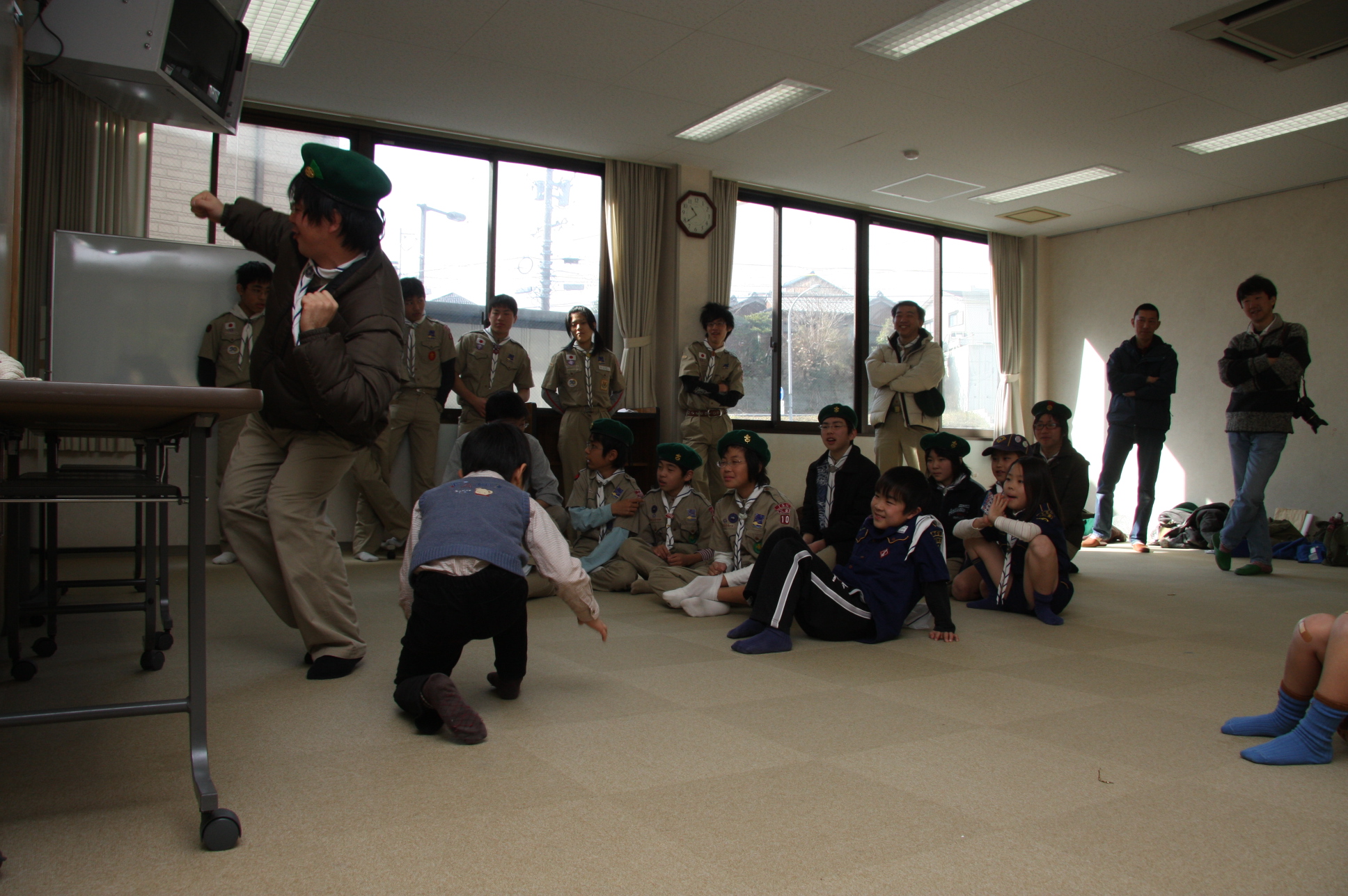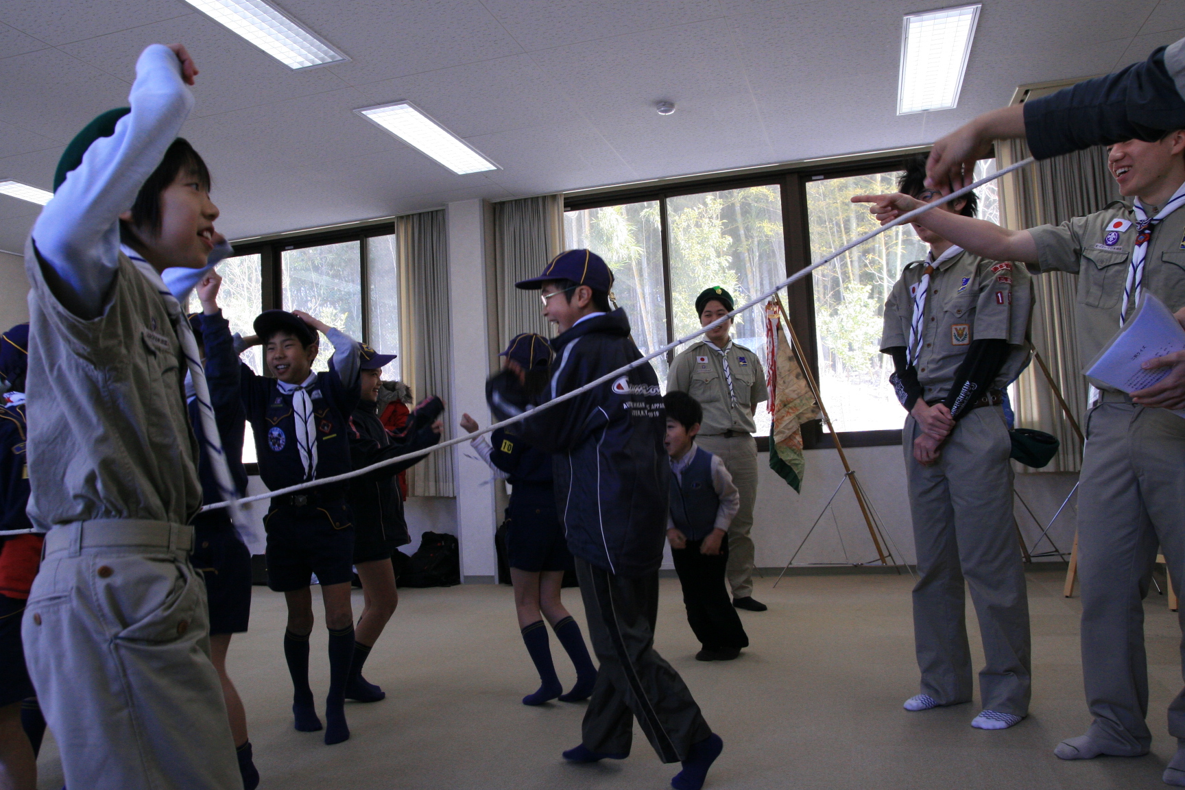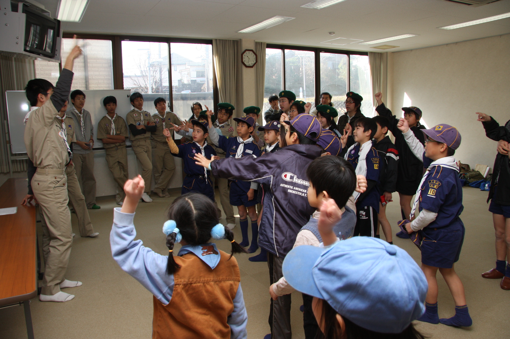 セレモニーでちかいとおきてを実唱し、その後のベンチャー隊主催のレクでBPクイズ、ビンゴゲーム、そしてじゃんけん列車ゲームを通してしてビーバー、カブのみんなと楽しく交流できました。(小瀬古団委員)