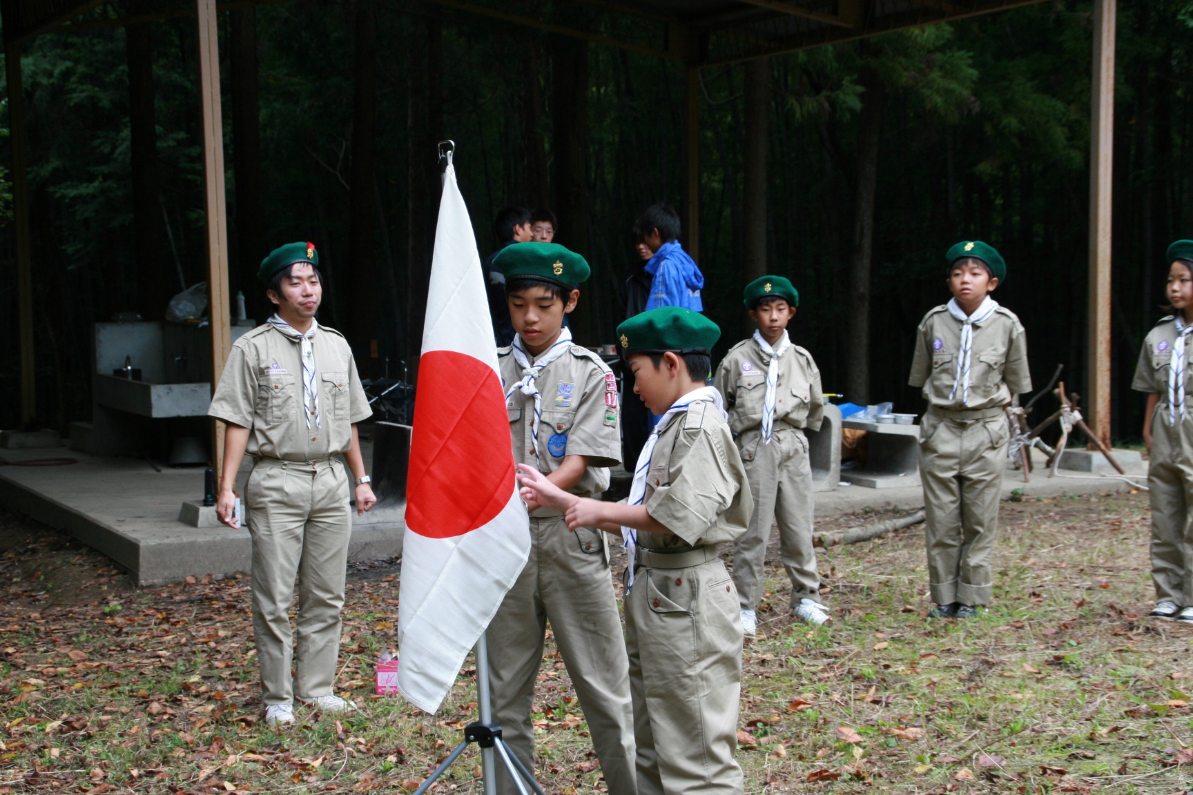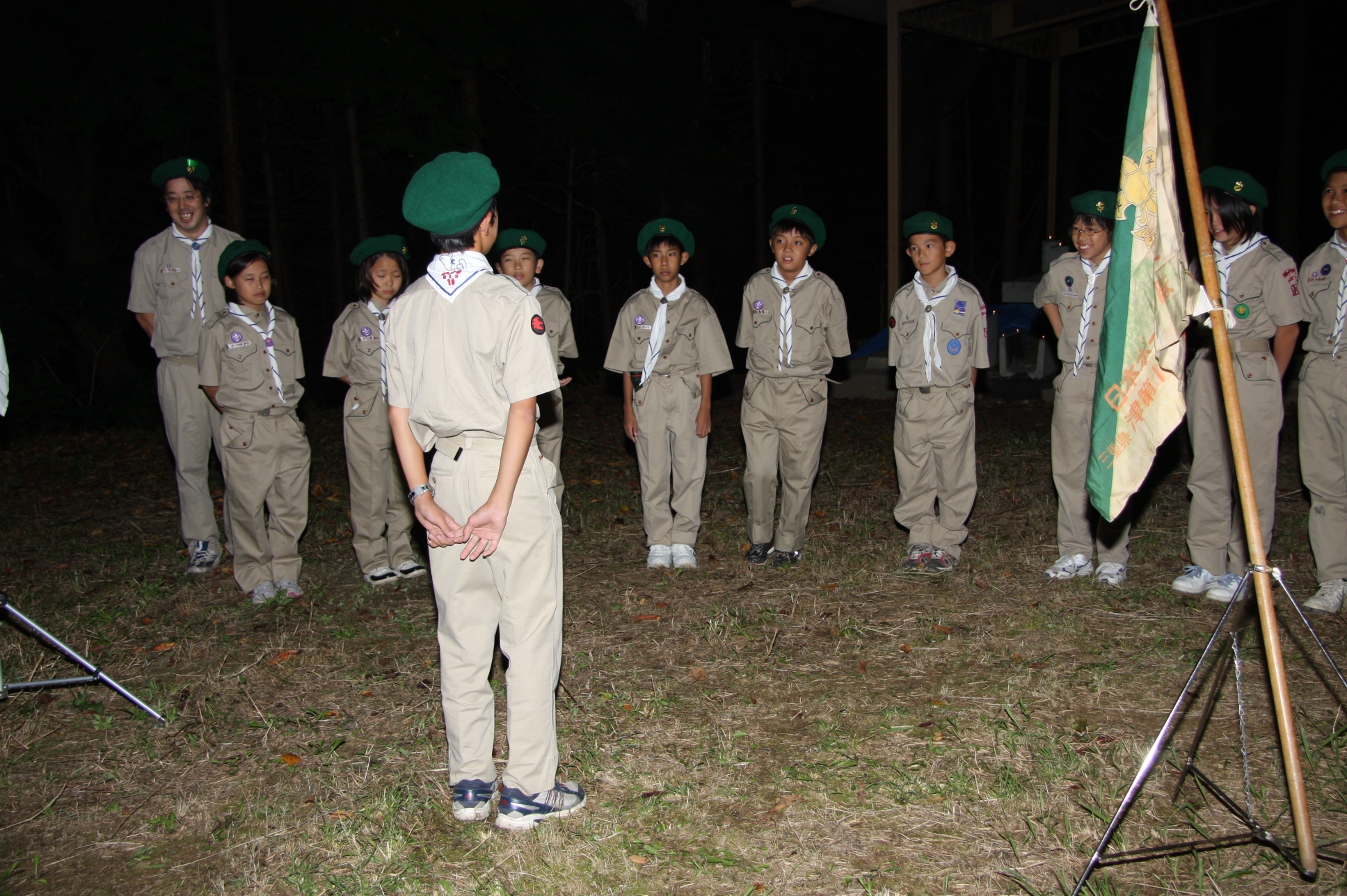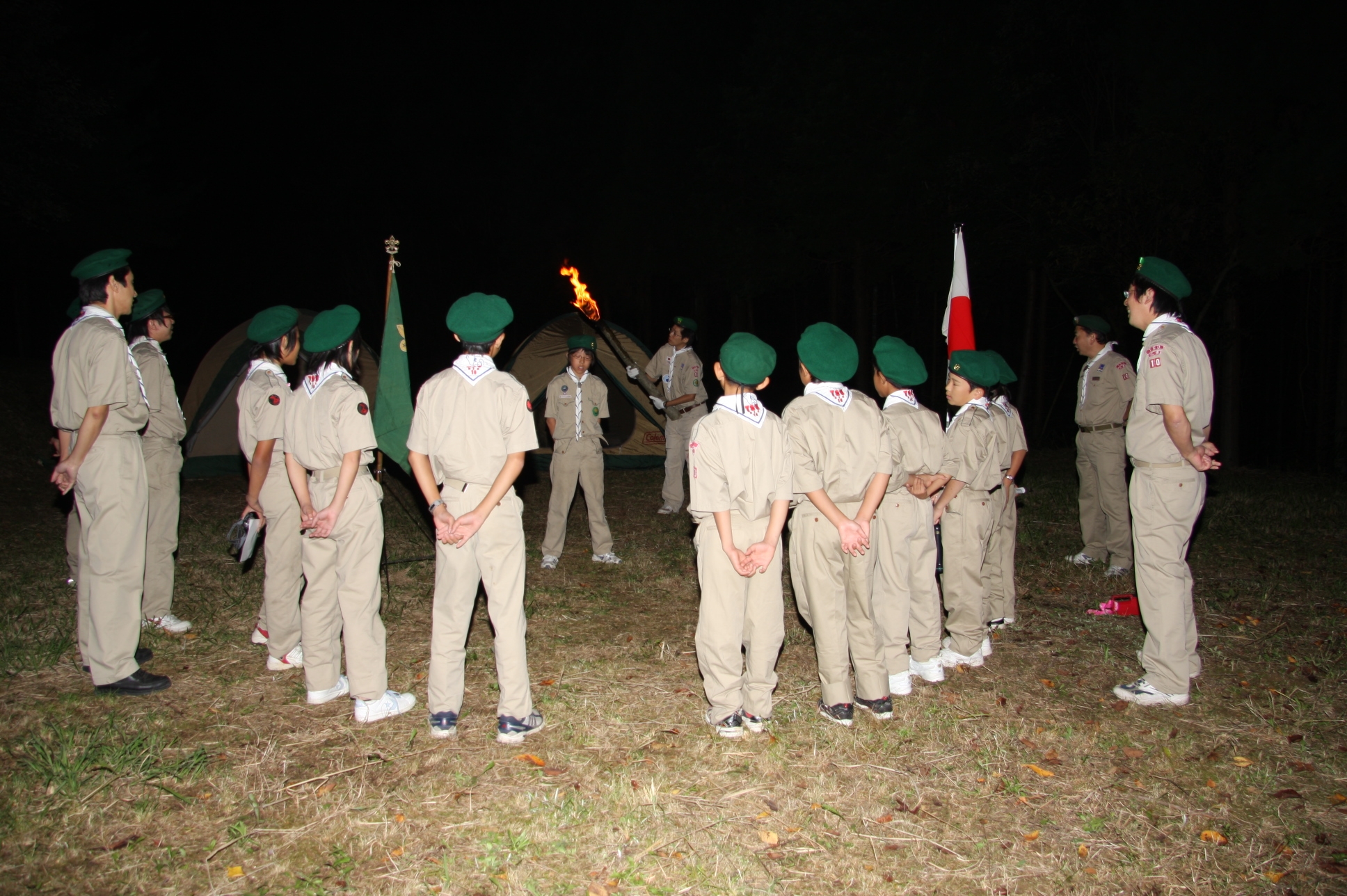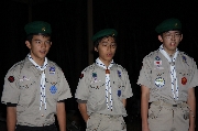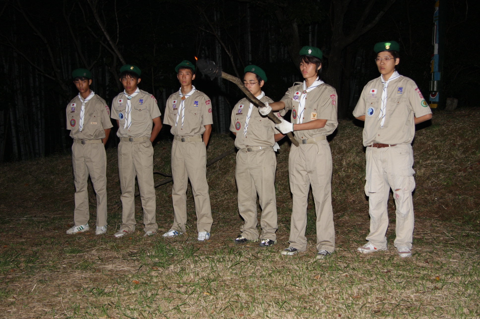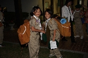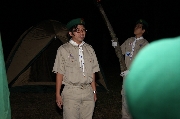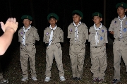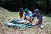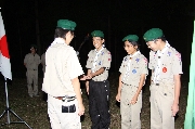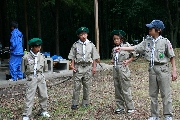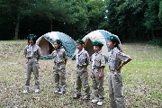 新しくカブ隊から6名を迎え入れ、ベンチャー隊に3名を送り出し、総勢11名となりました。上進式後、新入隊員はテントで寝ることになり興奮のため夜はあまり眠れなかったようでした。朝食は上手くできませんでしたが作ったものは残さずに食べようと泣きながら食べているスカウトもいました。食器洗い、テントの片付けなど積極的に手伝い、帰りは、テントや炊事道具など分担してキャンプ場から岡部宅まで2時間程かけ歩きくたくたになっていました。又、先輩スカウトの清水、平野、富樫、岡君らが新人にテントたたみ方、食事を残さず食べるようにと指導したり、帰りに隊備品を自ら率先して重い荷物を担いだりし、ずいぶんたくましくなってきました。これから一年間新しいグループで楽しく活動を続けてもらいたいと思います。(小瀬古団委員)