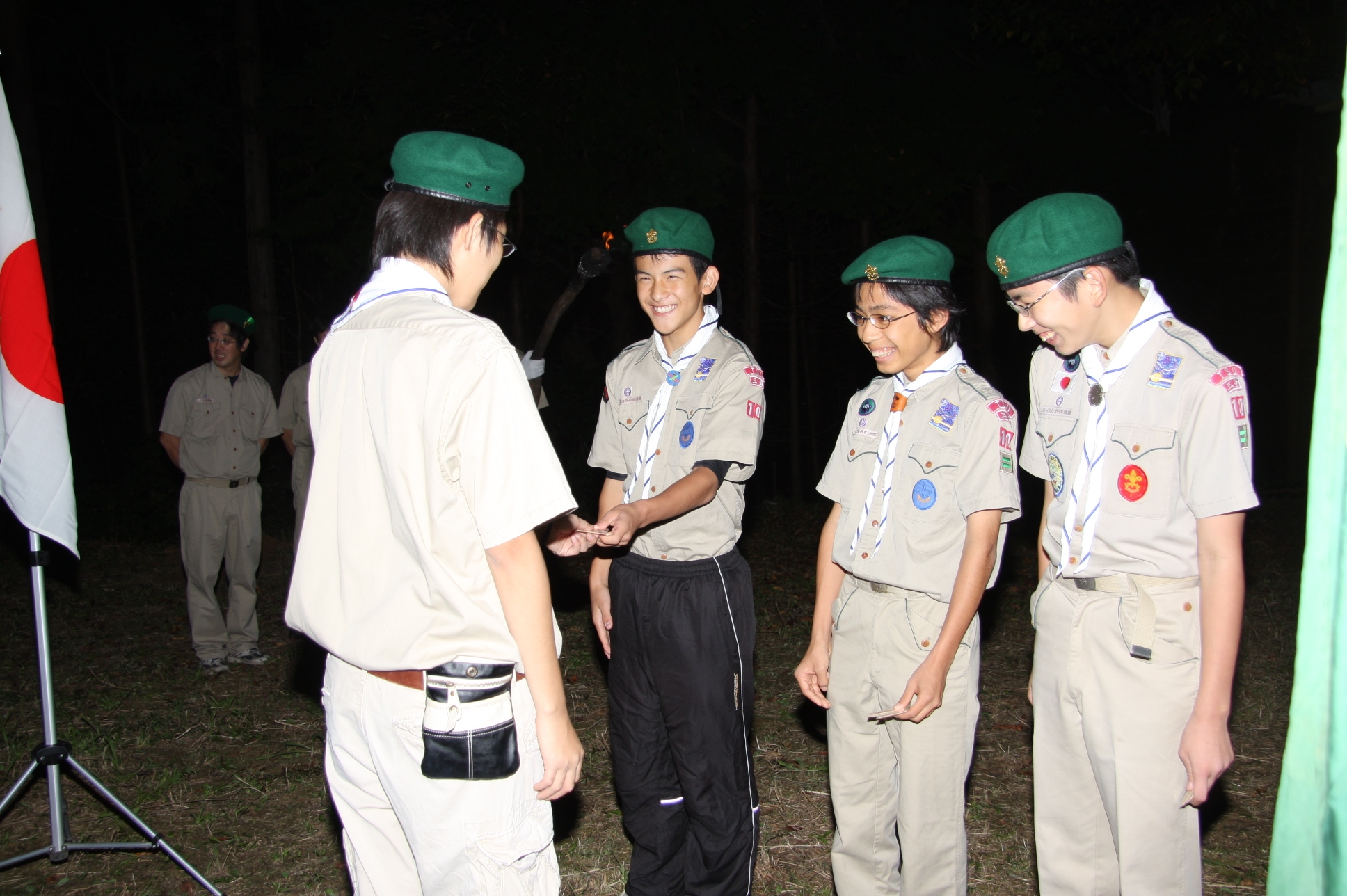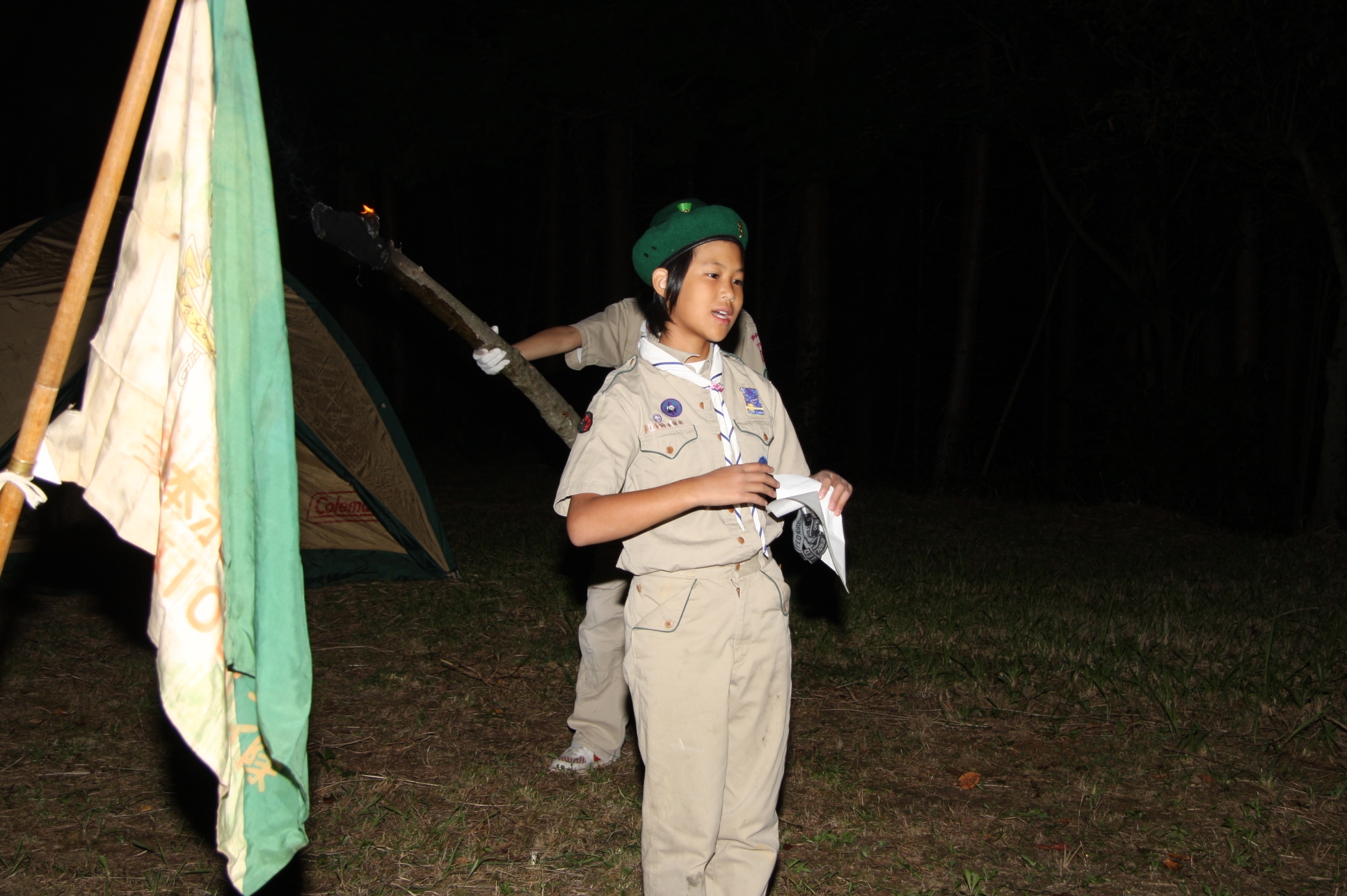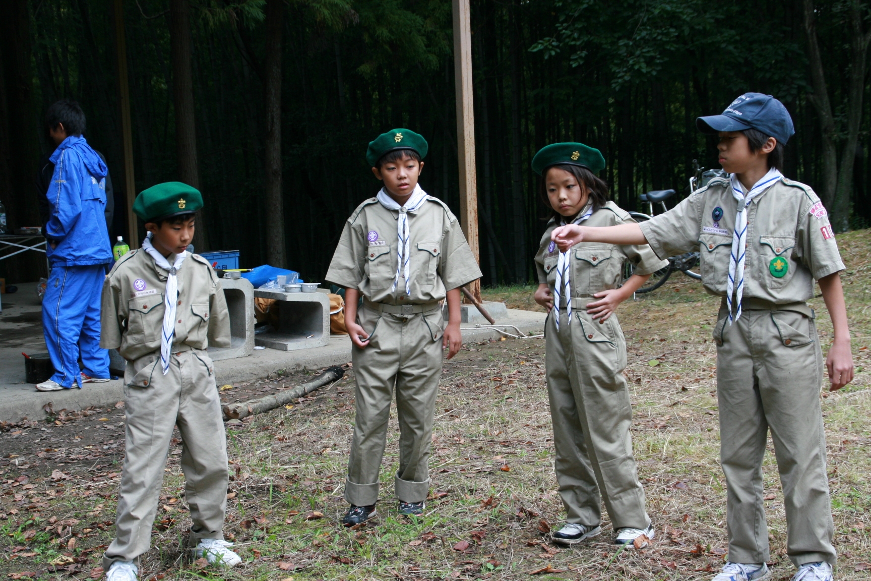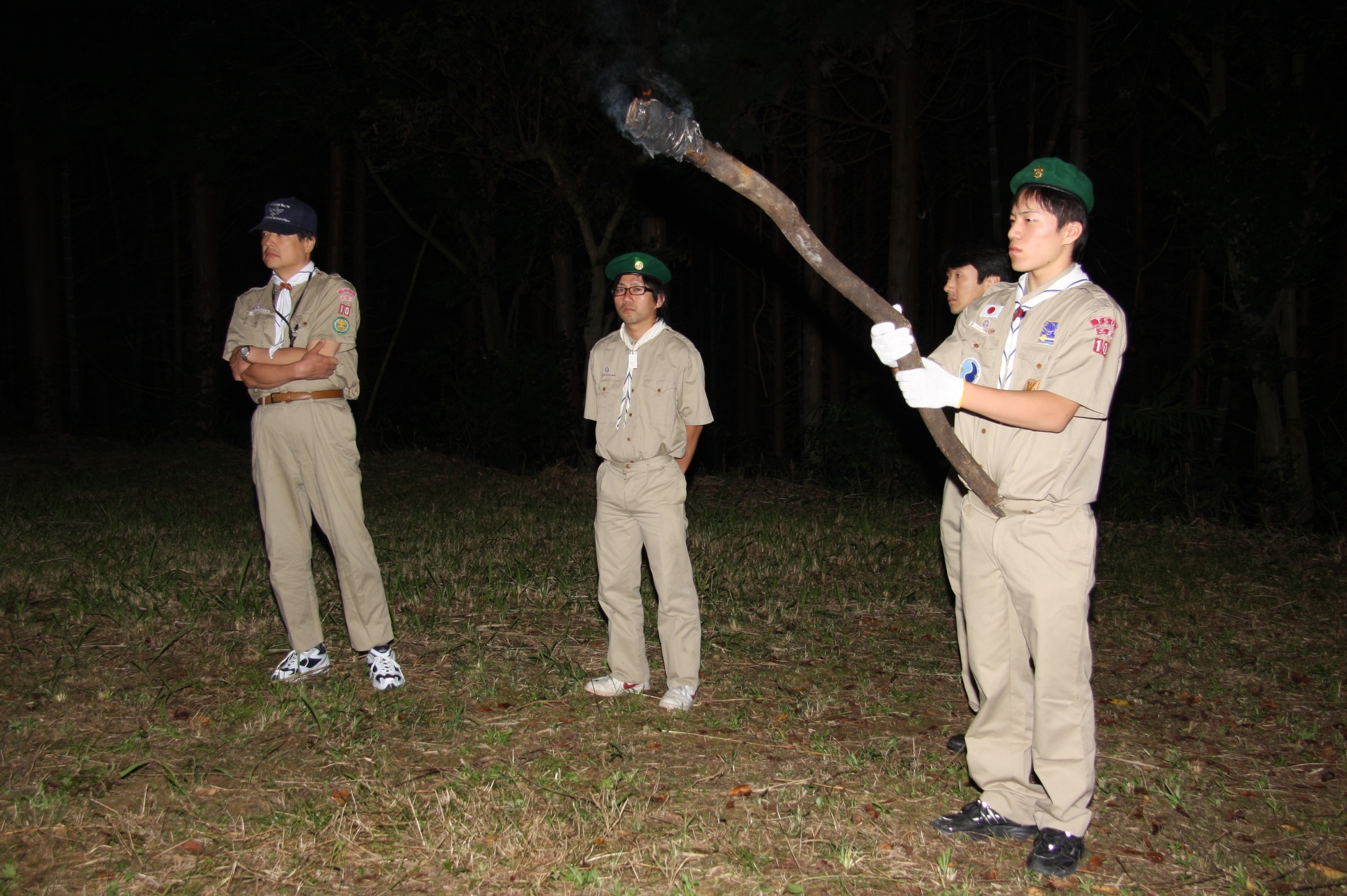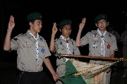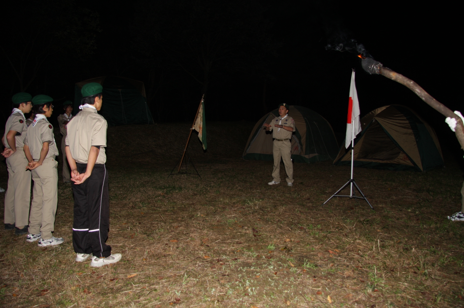 新しくカブ隊から6名を迎え入れ、ベンチャー隊に3名を送り出し、総勢11名となりました。上進式後、新入隊員はテントで寝ることになり興奮のため夜はあまり眠れなかったようでした。朝食は上手くできませんでしたが作ったものは残さずに食べようと泣きながら食べているスカウトもいました。食器洗い、テントの片付けなど積極的に手伝い、帰りは、テントや炊事道具など分担してキャンプ場から岡部宅まで2時間程かけ歩きくたくたになっていました。又、先輩スカウトの清水、平野、富樫、岡君らが新人にテントたたみ方、食事を残さず食べるようにと指導したり、帰りに隊備品を自ら率先して重い荷物を担いだりし、ずいぶんたくましくなってきました。これから一年間新しいグループで楽しく活動を続けてもらいたいと思います。(小瀬古団委員)