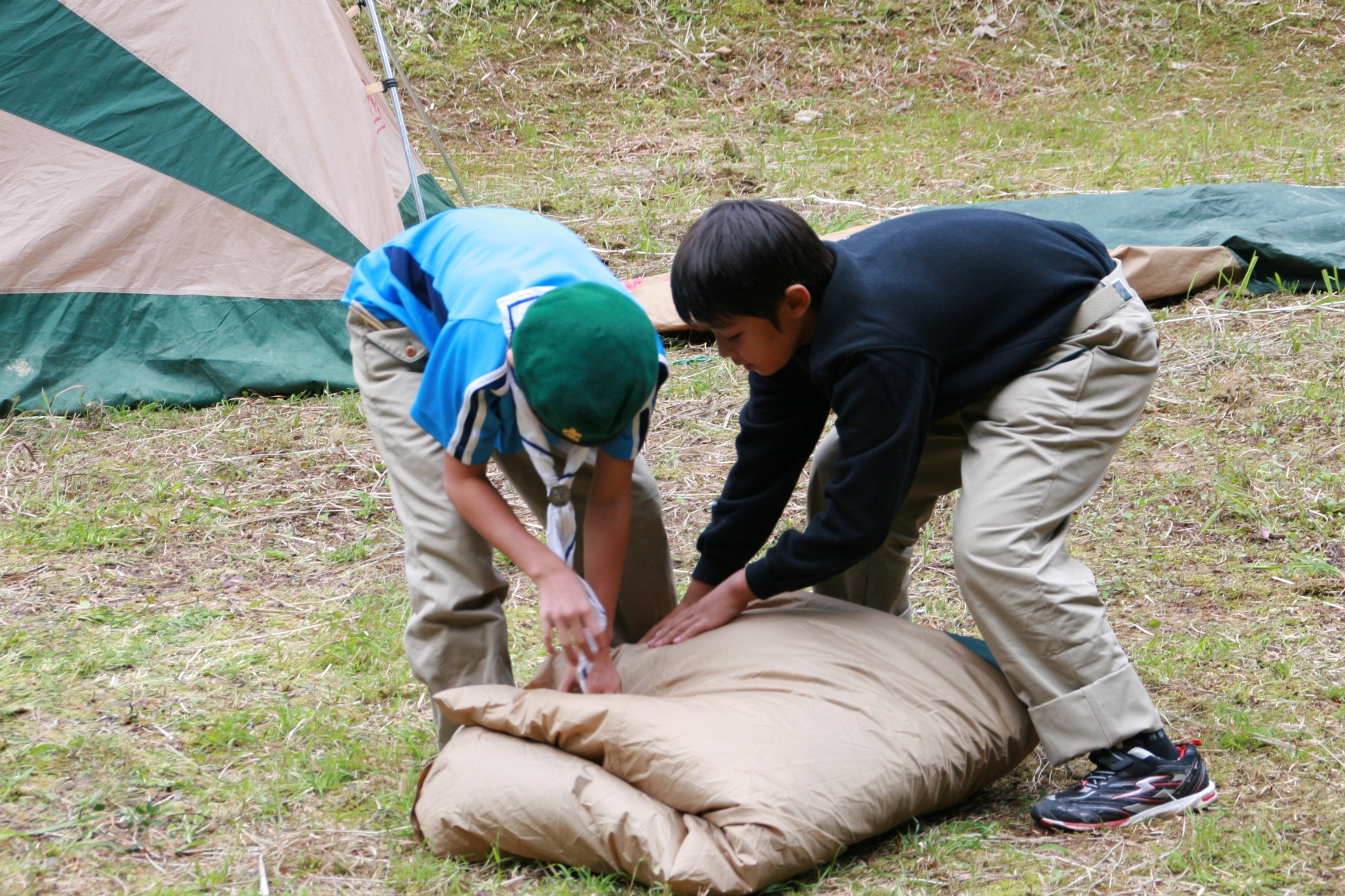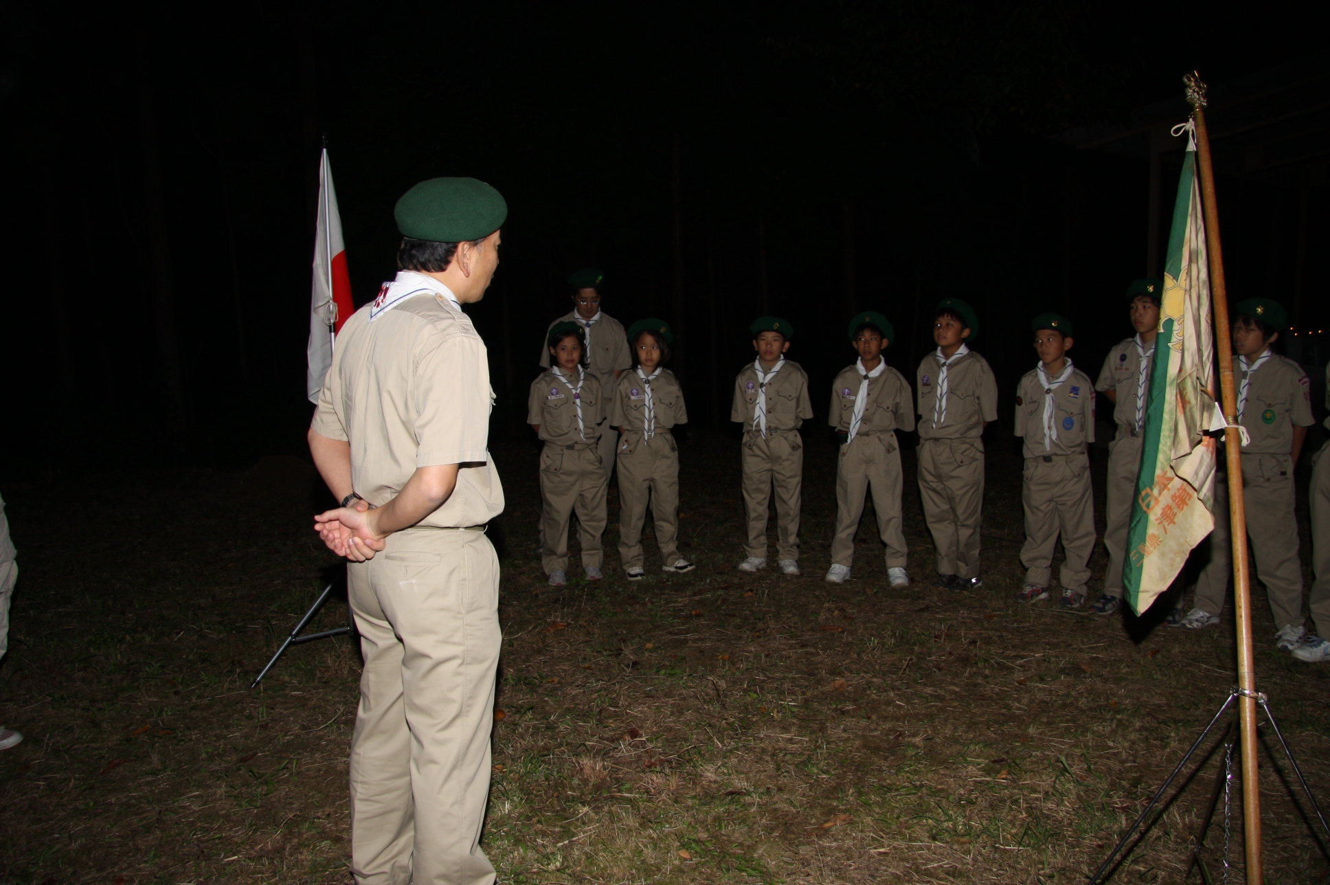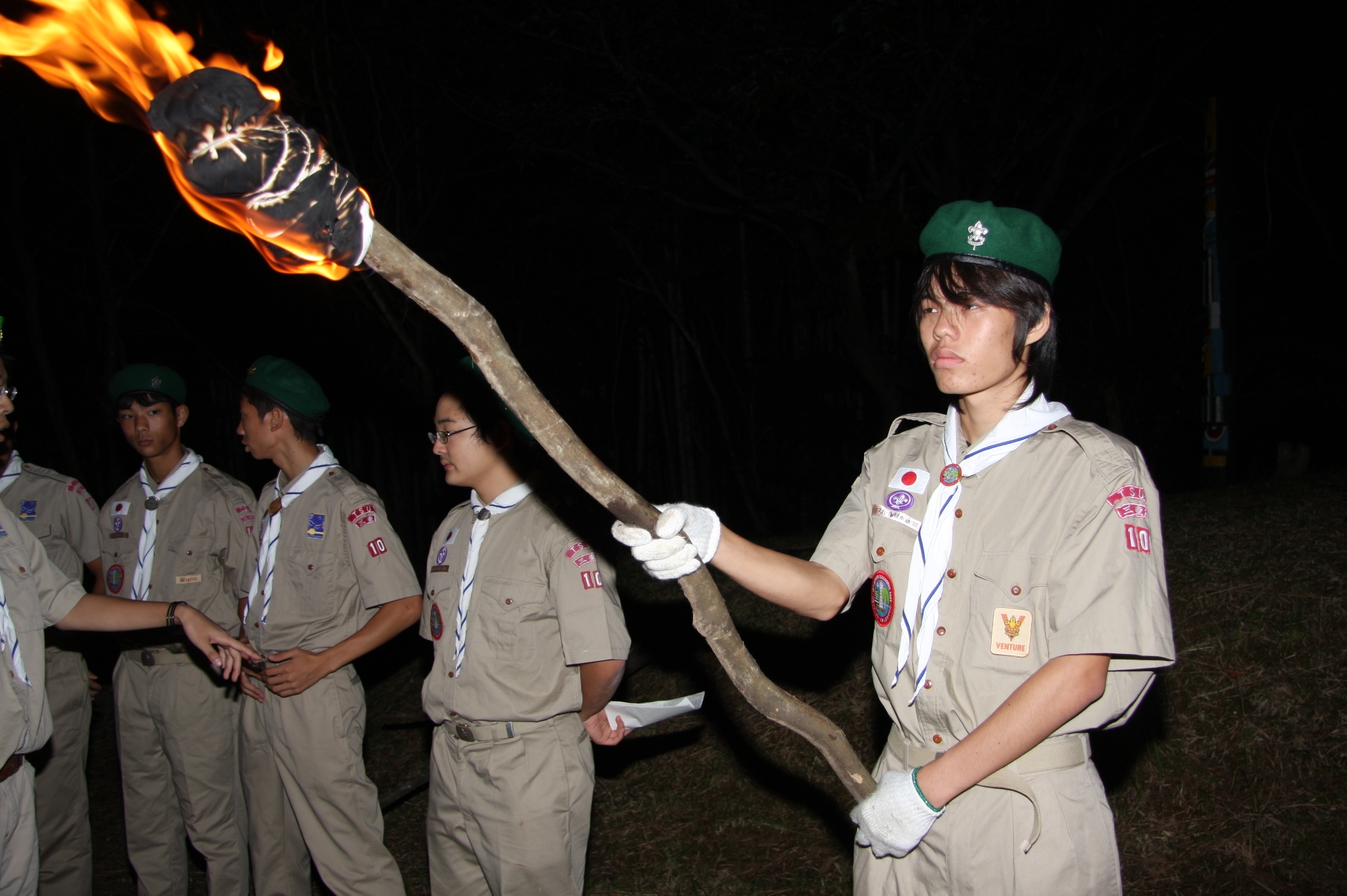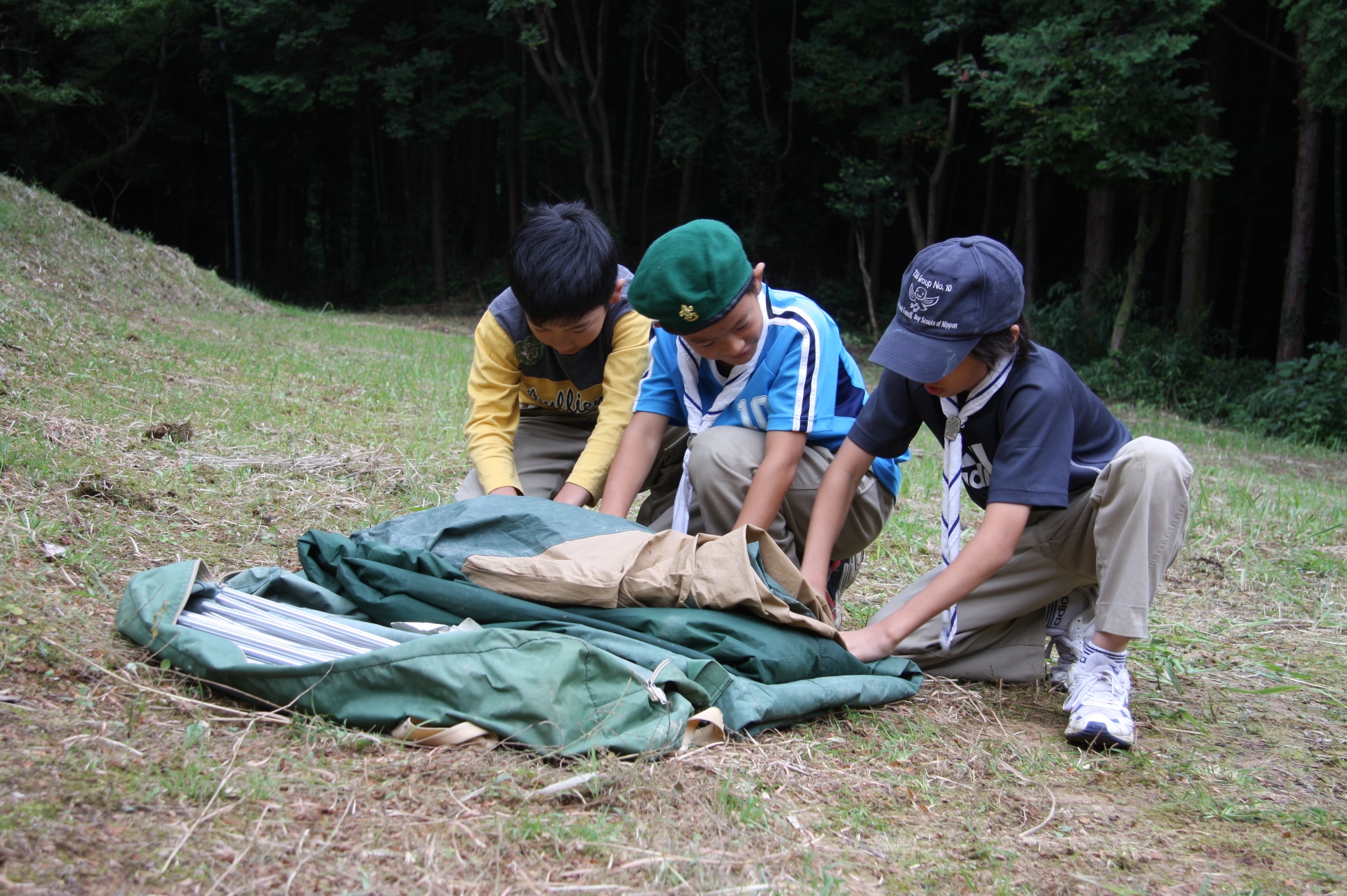 新しくカブ隊から6名を迎え入れ、ベンチャー隊に3名を送り出し、総勢11名となりました。上進式後、新入隊員はテントで寝ることになり興奮のため夜はあまり眠れなかったようでした。朝食は上手くできませんでしたが作ったものは残さずに食べようと泣きながら食べているスカウトもいました。食器洗い、テントの片付けなど積極的に手伝い、帰りは、テントや炊事道具など分担してキャンプ場から岡部宅まで2時間程かけ歩きくたくたになっていました。又、先輩スカウトの清水、平野、富樫、岡君らが新人にテントたたみ方、食事を残さず食べるようにと指導したり、帰りに隊備品を自ら率先して重い荷物を担いだりし、ずいぶんたくましくなってきました。これから一年間新しいグループで楽しく活動を続けてもらいたいと思います。(小瀬古団委員)