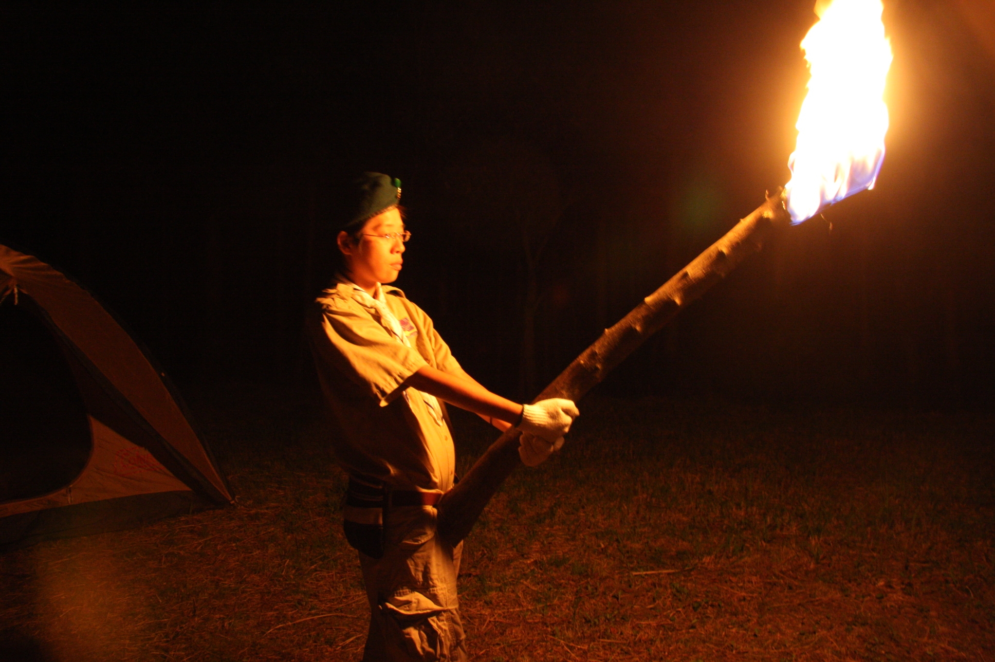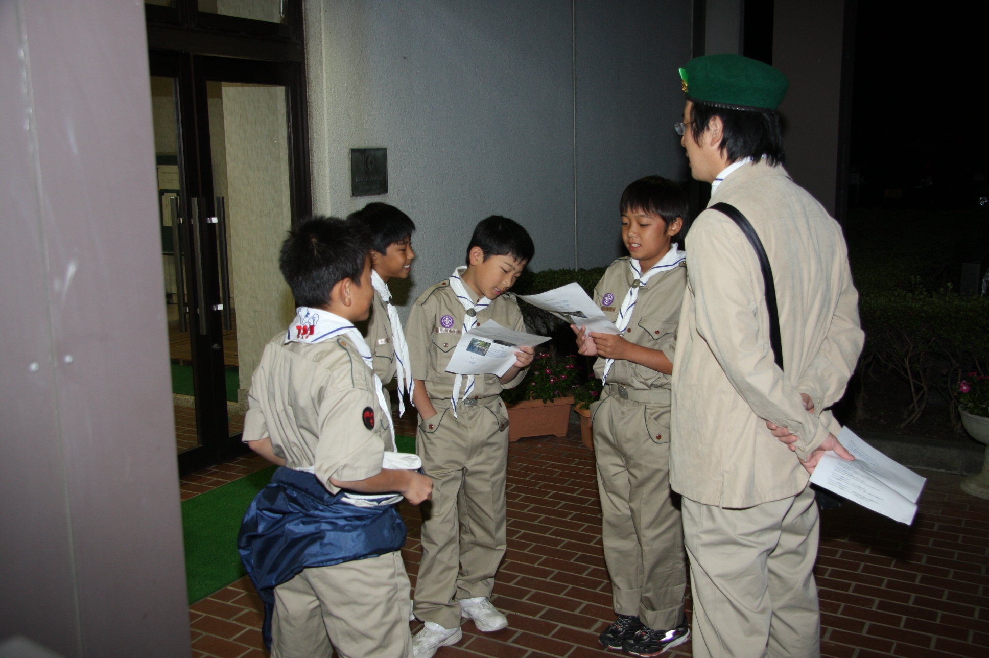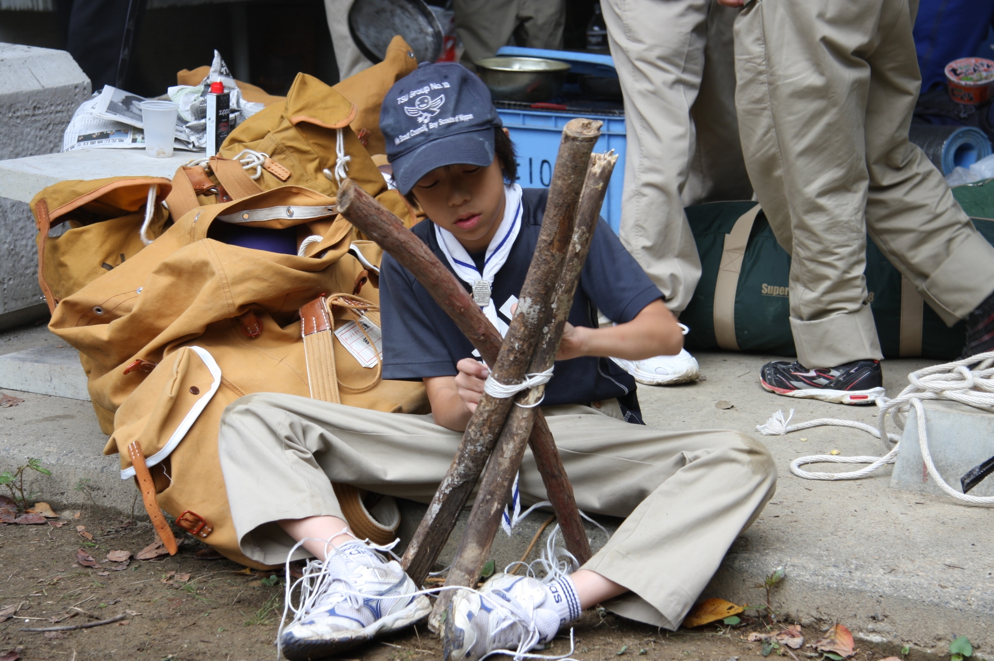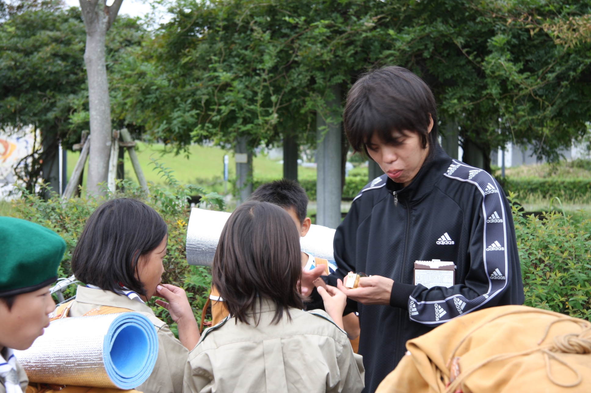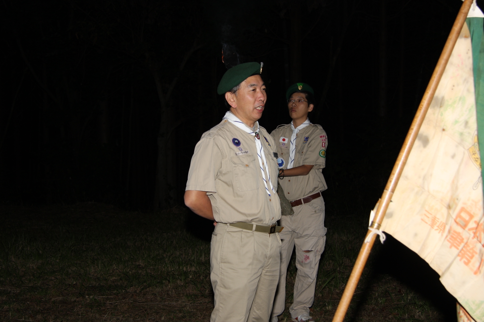 新しくカブ隊から6名を迎え入れ、ベンチャー隊に3名を送り出し、総勢11名となりました。上進式後、新入隊員はテントで寝ることになり興奮のため夜はあまり眠れなかったようでした。朝食は上手くできませんでしたが作ったものは残さずに食べようと泣きながら食べているスカウトもいました。食器洗い、テントの片付けなど積極的に手伝い、帰りは、テントや炊事道具など分担してキャンプ場から岡部宅まで2時間程かけ歩きくたくたになっていました。又、先輩スカウトの清水、平野、富樫、岡君らが新人にテントたたみ方、食事を残さず食べるようにと指導したり、帰りに隊備品を自ら率先して重い荷物を担いだりし、ずいぶんたくましくなってきました。これから一年間新しいグループで楽しく活動を続けてもらいたいと思います。(小瀬古団委員)
