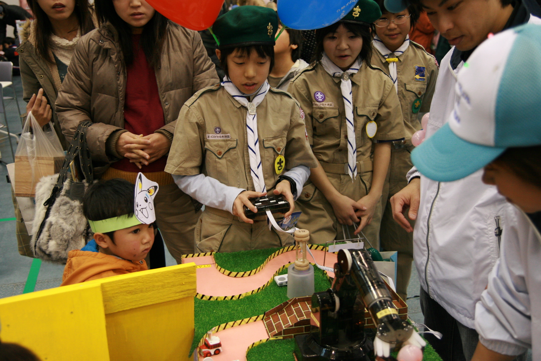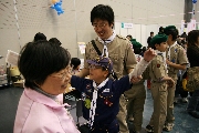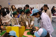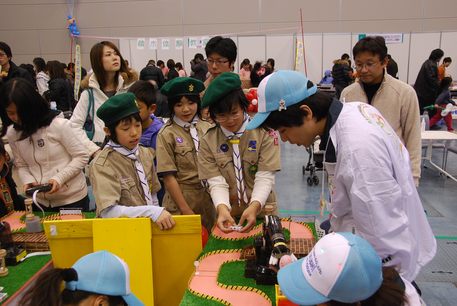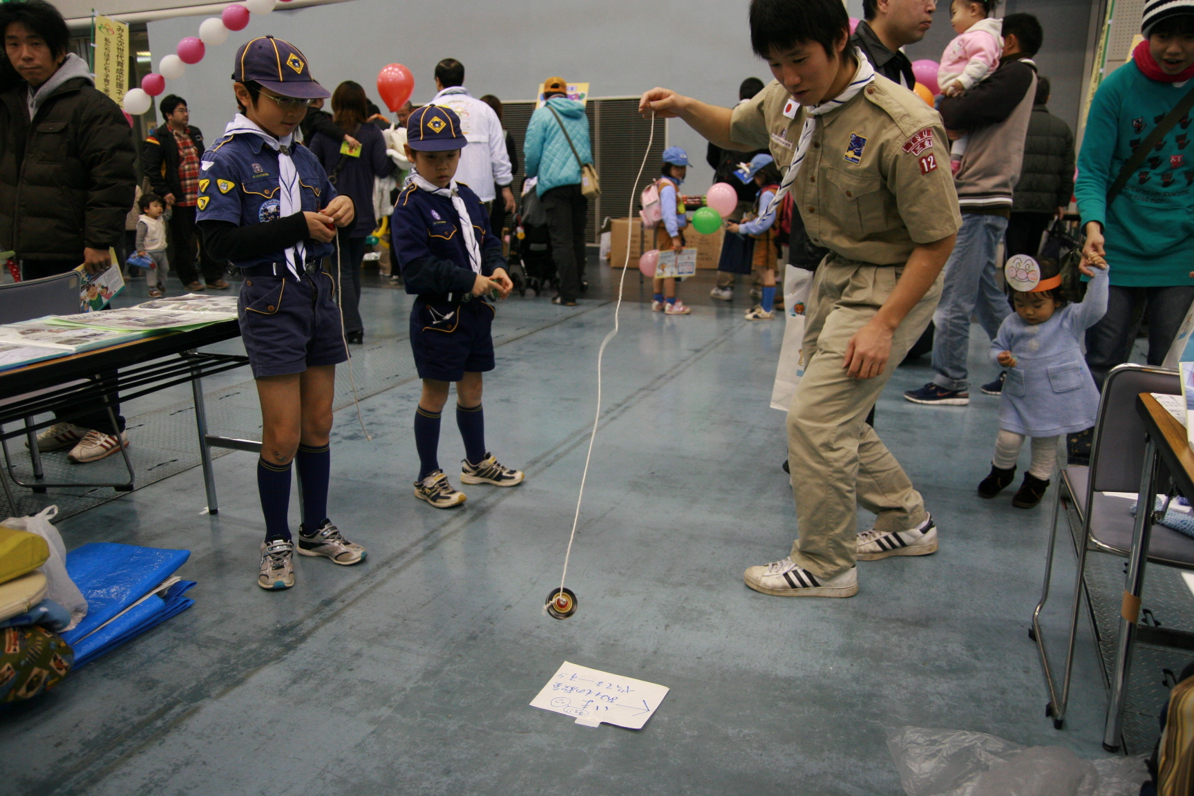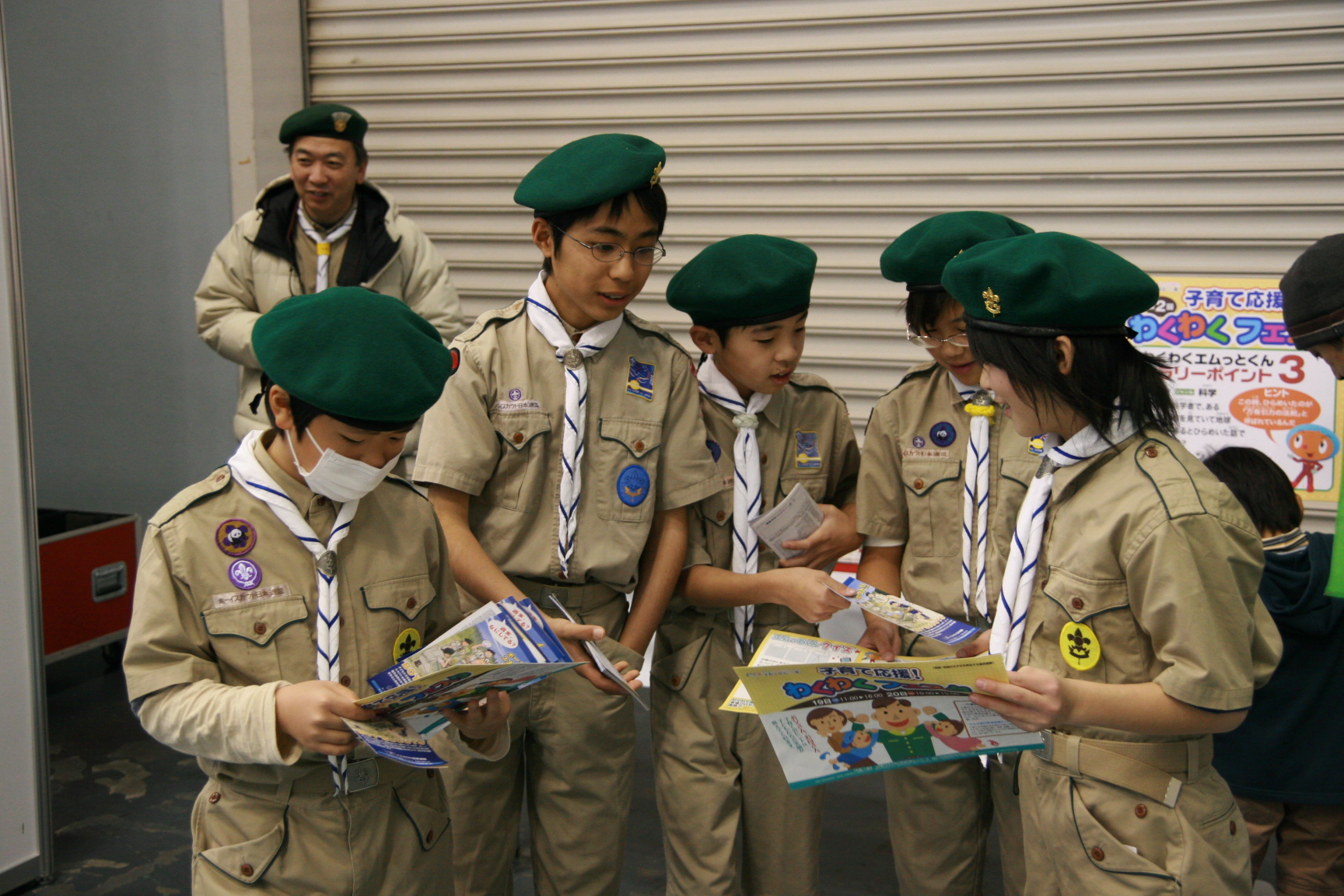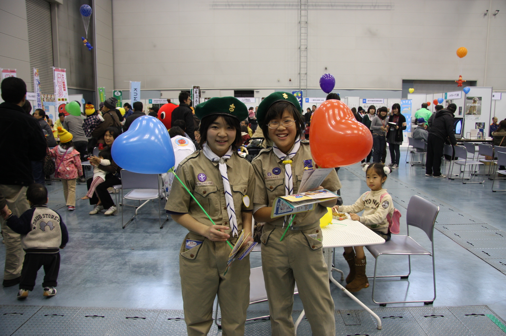 ボーイスカウトブースにて,広告塔として会場内を目一杯歩き回りボーイスカウトの存在をアピールし、募集のチラシの配布をお手伝いしました。