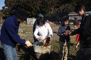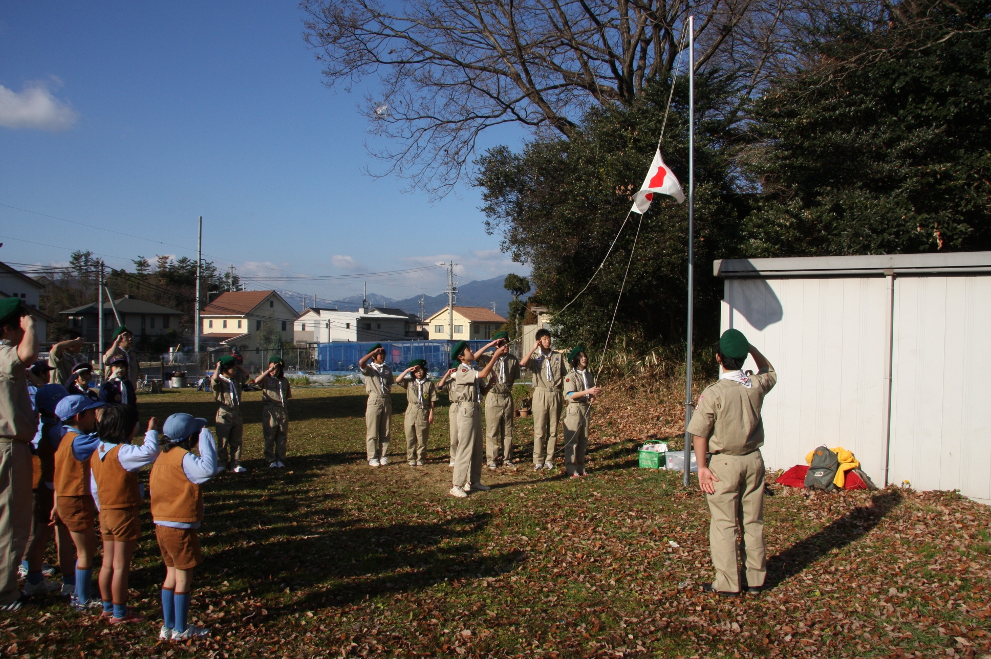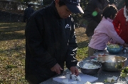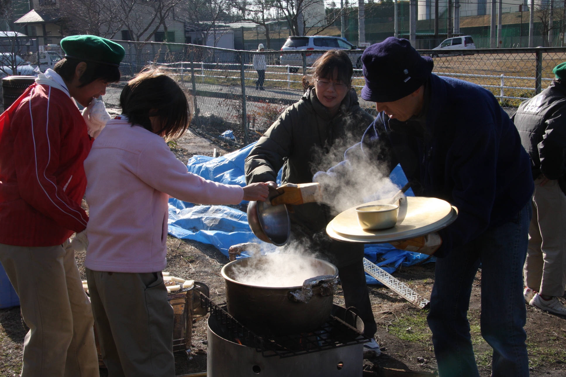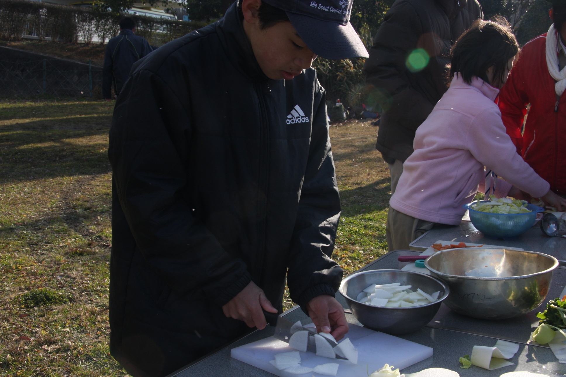 晴天となり冷え込みの厳しいなか、ボーイ隊は、約40人分のお雑煮作りを手伝いました。