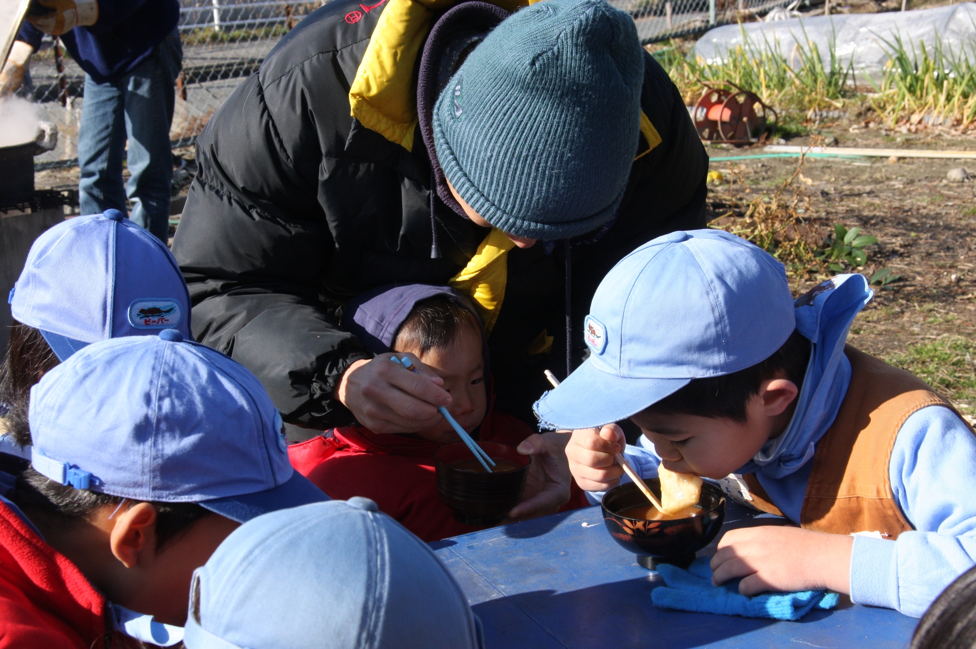 具材(白菜、大根、人参、鶏肉)の調理と後片付けで指先が冷えてかじかんみながらも頑張ってくれました。