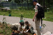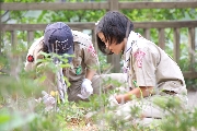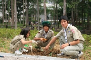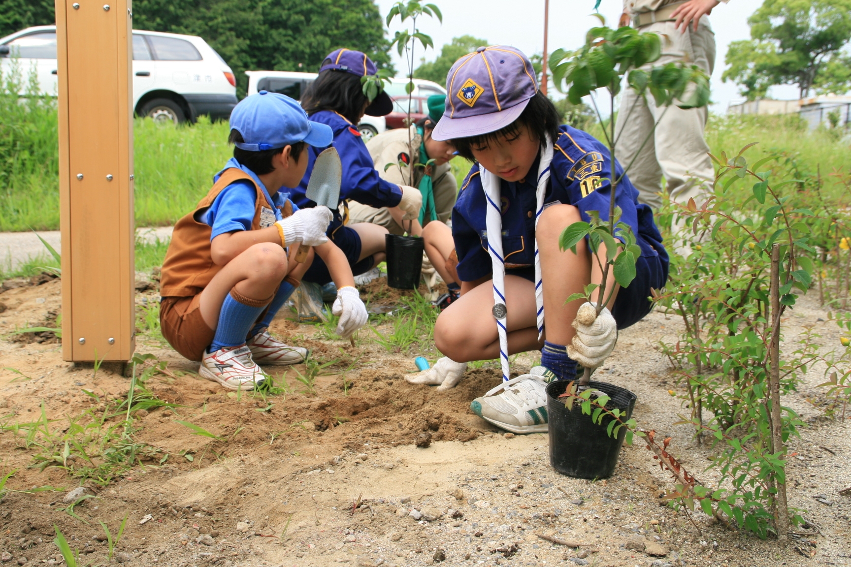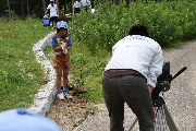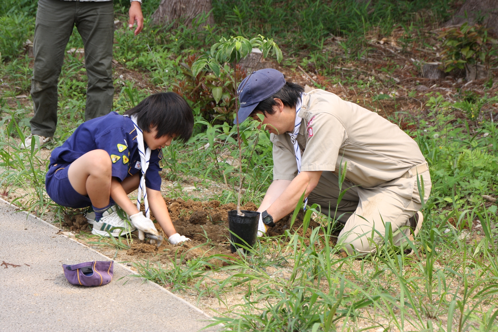 土が非常に固く、穴を掘るのにとても苦労していましたが、大人の力も借りて、何とか植樹することが出来ました。