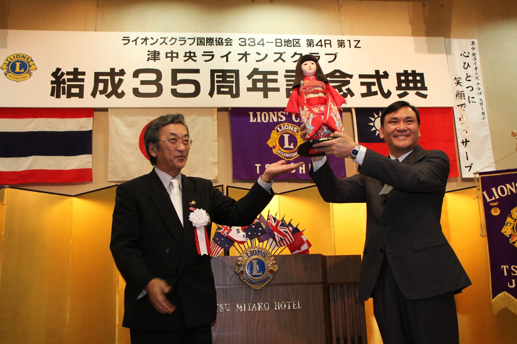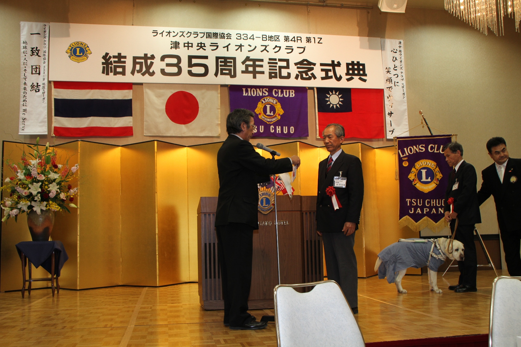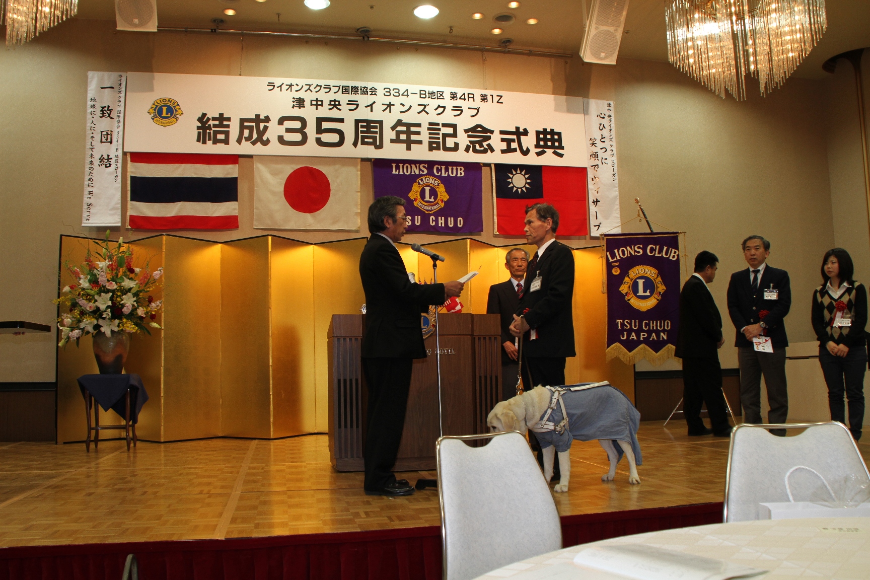 いつも補助犬募金などを一緒に行っている津中央ライオンズクラブの35周年式典のお手伝いをしました。