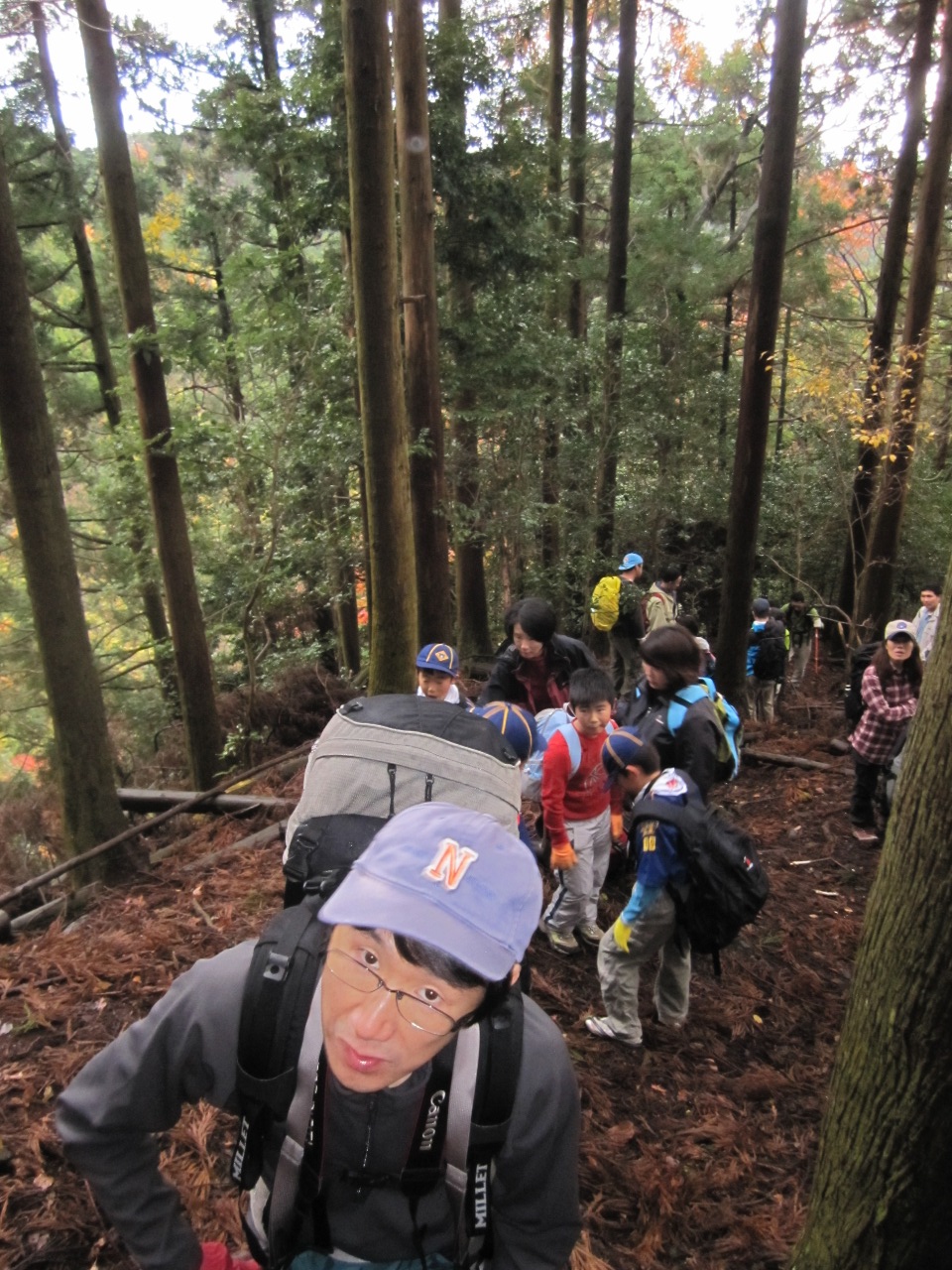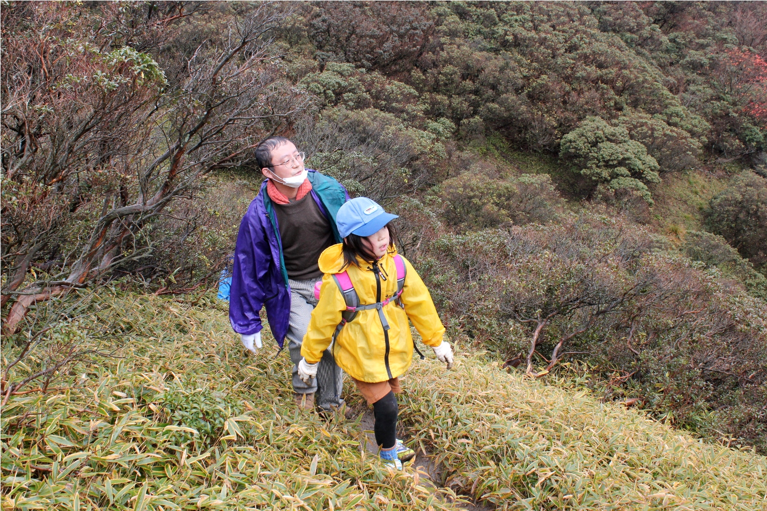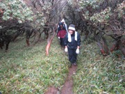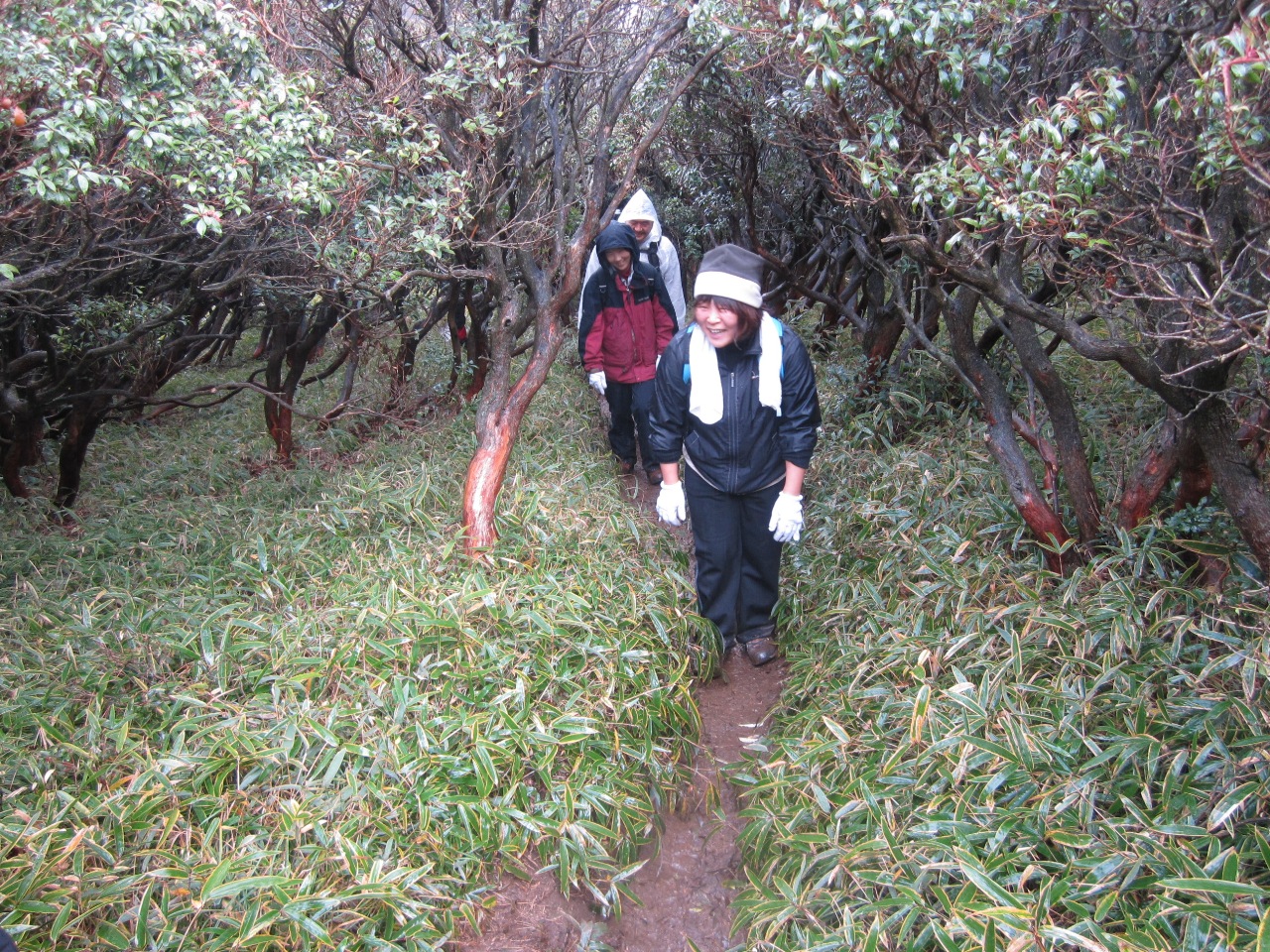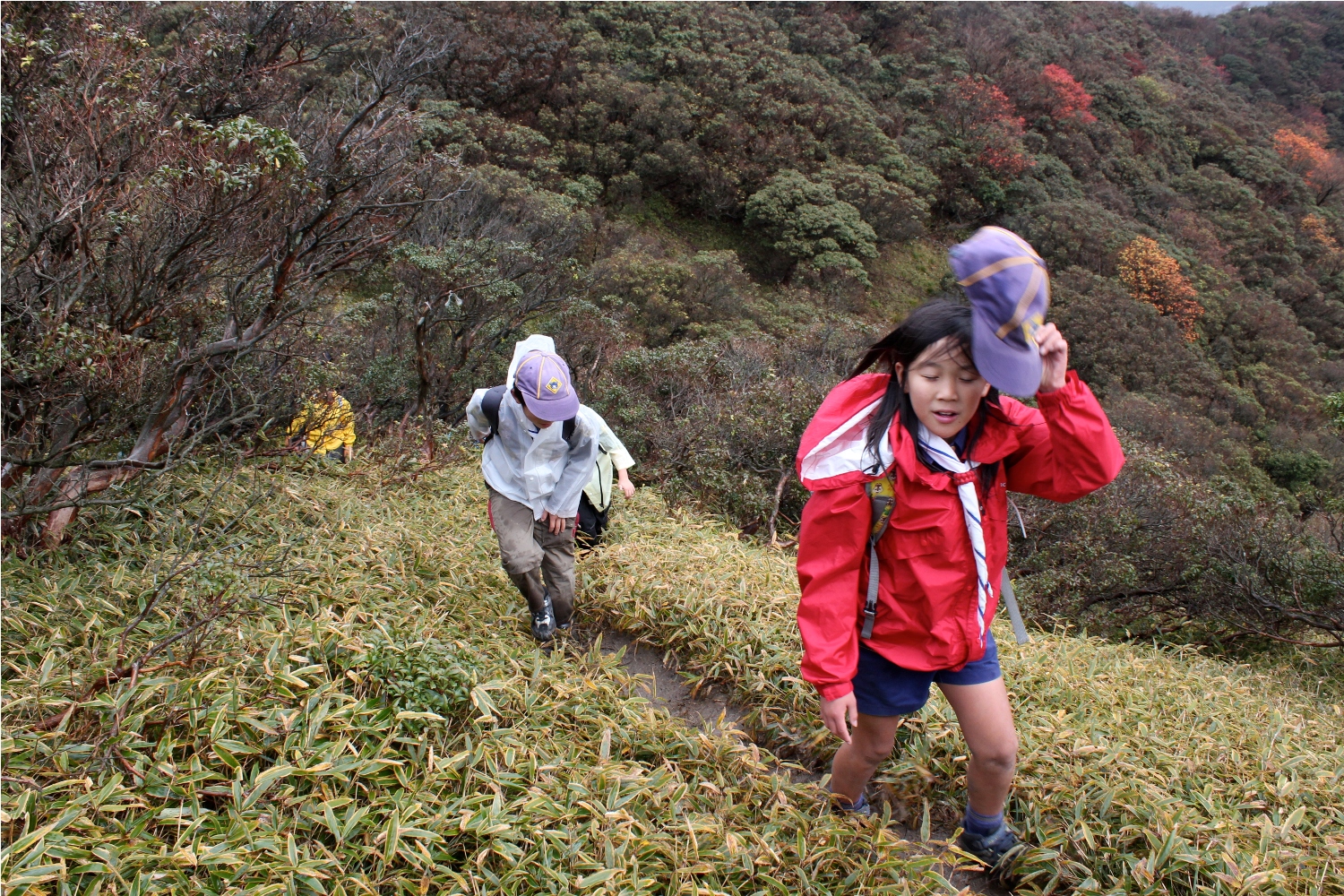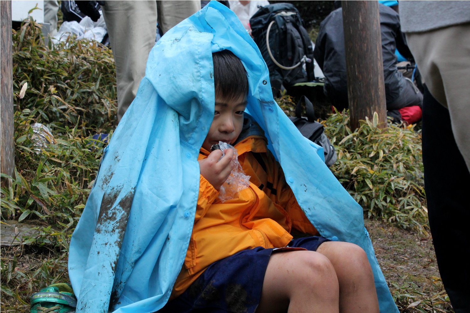 途中から雨が降り、足場も悪い中の登山となりましたが、皆頂上まで無事に登る事ができました。