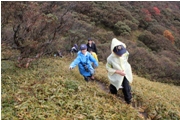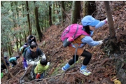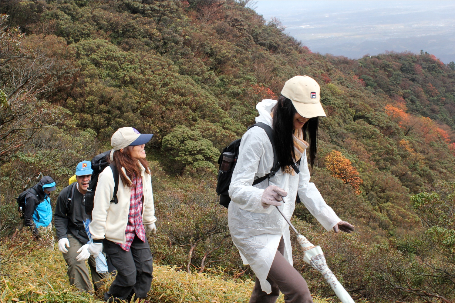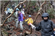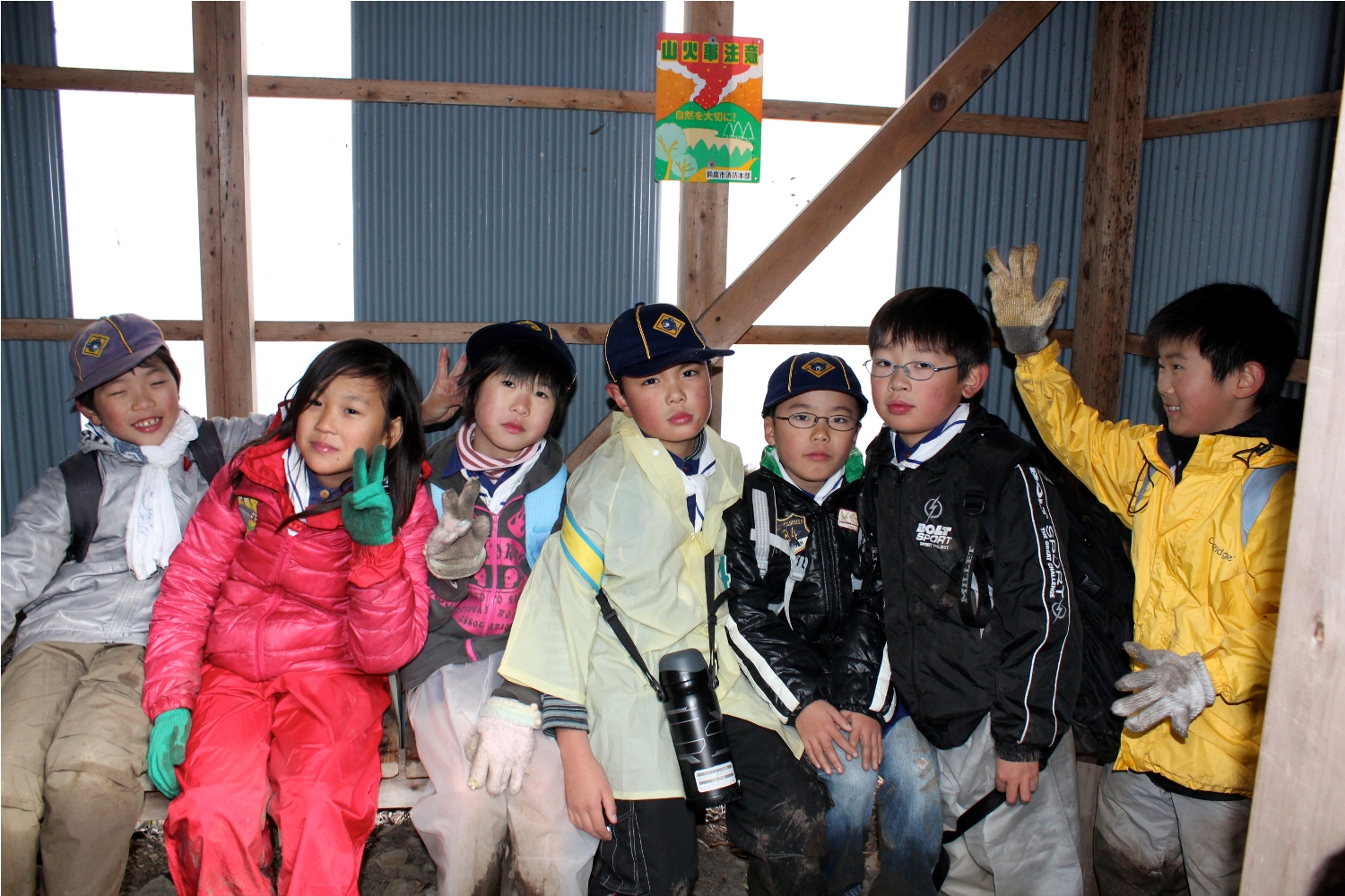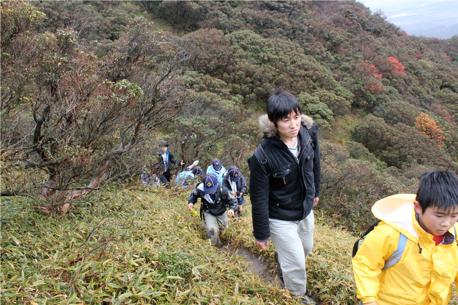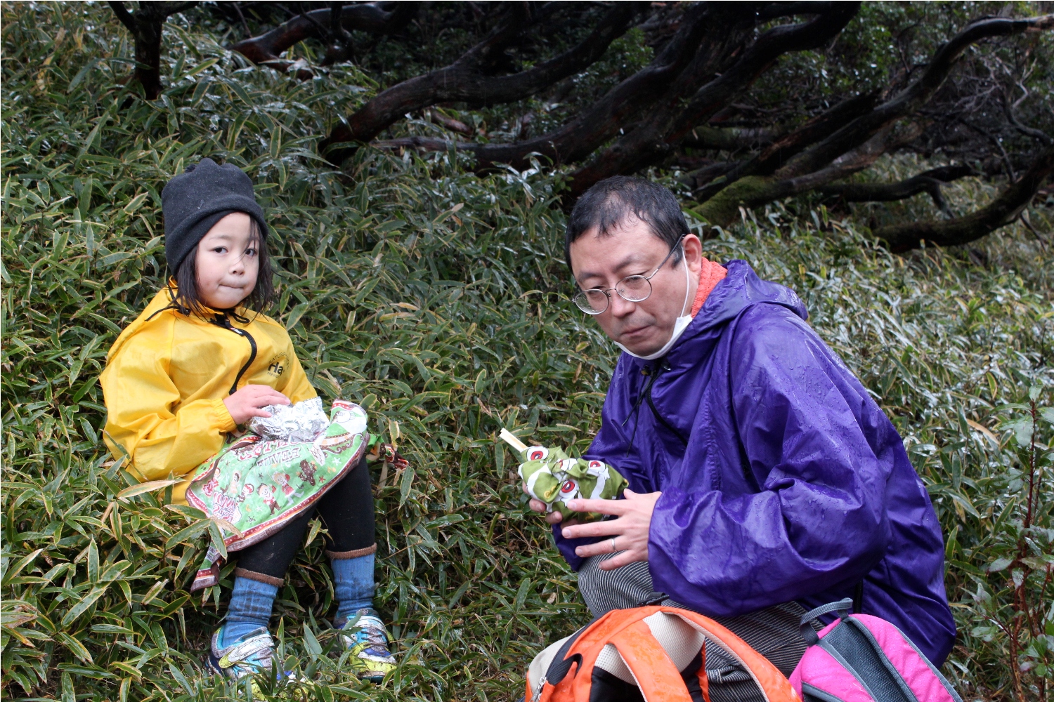 途中から雨が降り、足場も悪い中の登山となりましたが、皆頂上まで無事に登る事ができました。