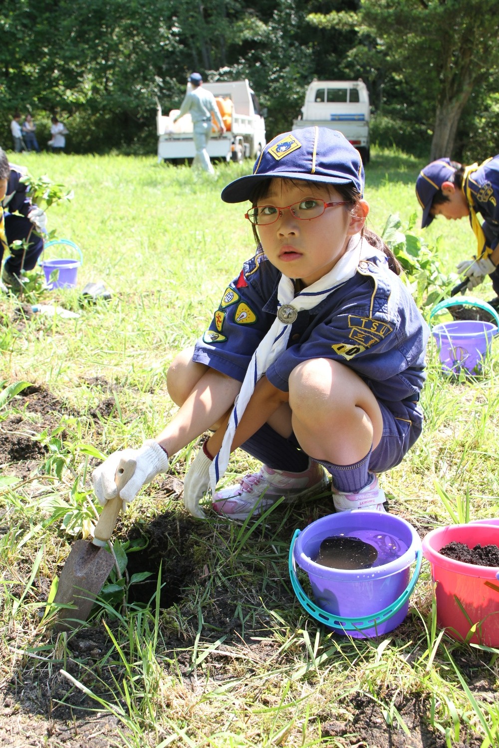 植樹後、汗だくになっていたためジュースがいつもよりおいしく飲めました。(土山カブ隊副長)