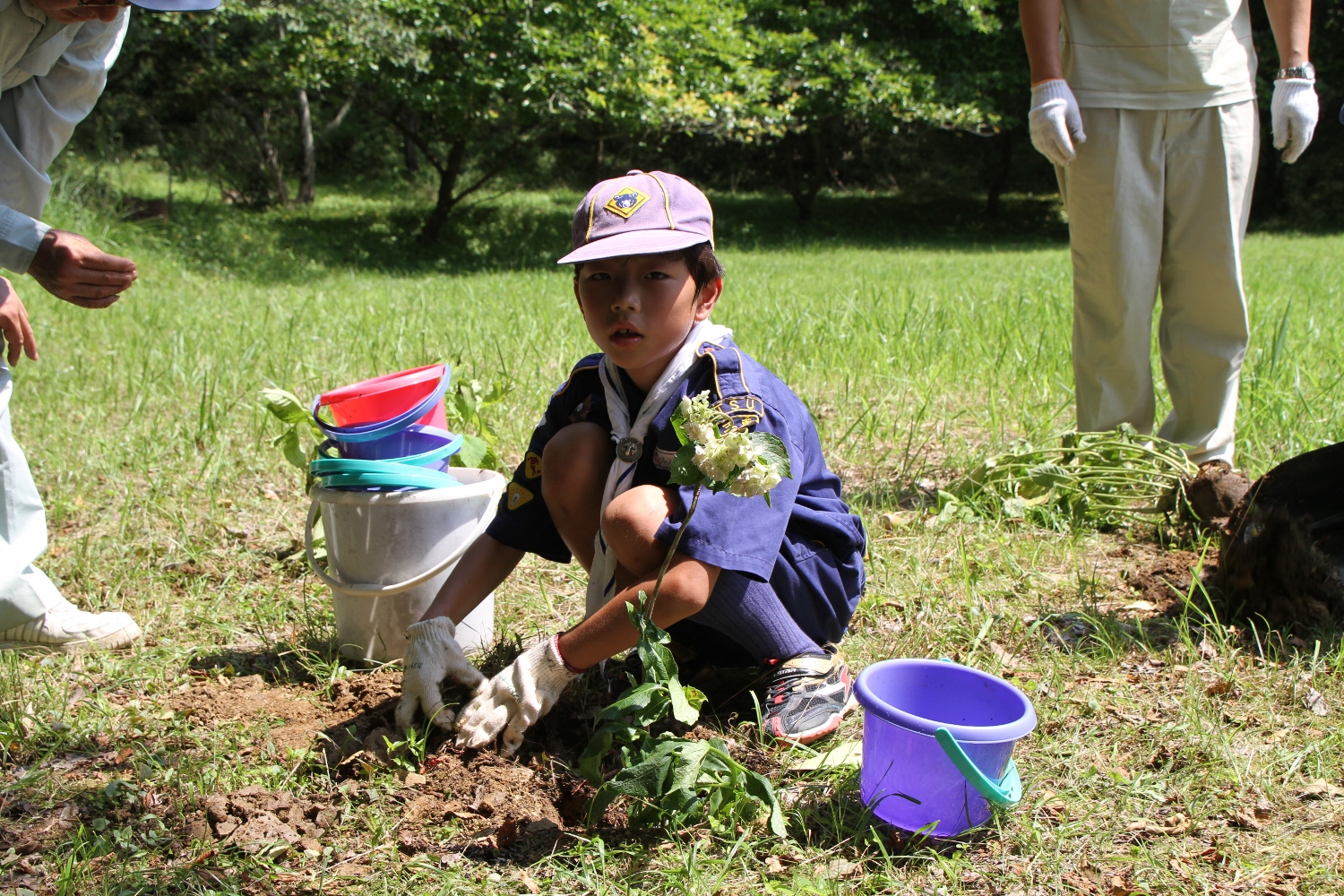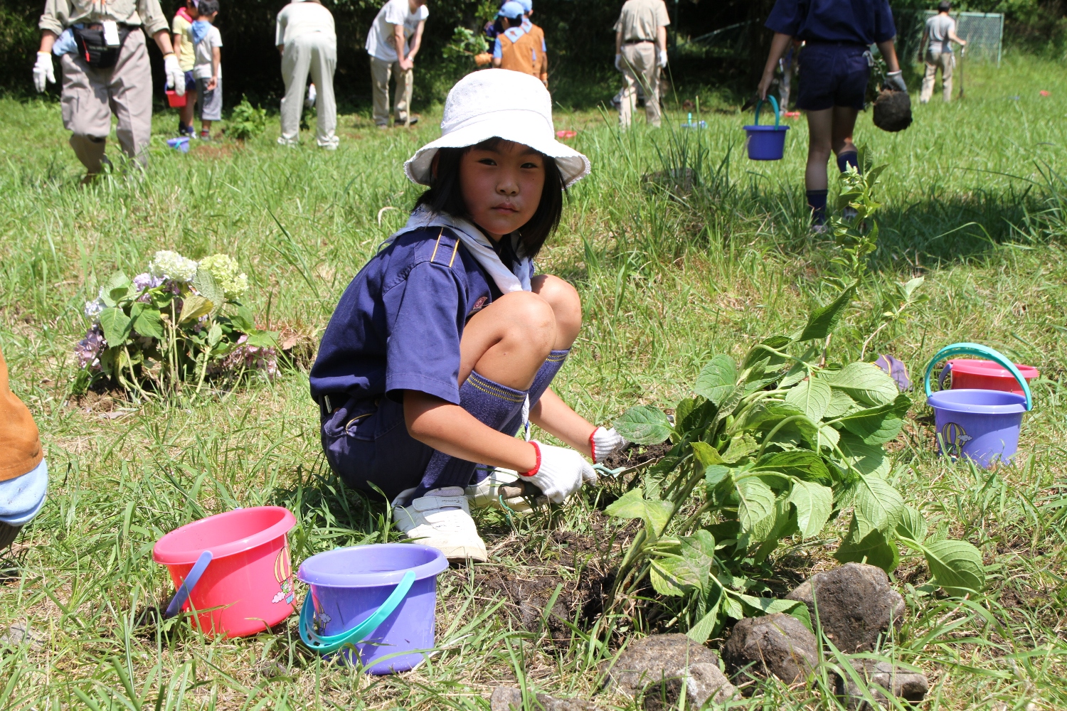 非常に暑い日となりましたが、皆で全てのアジサイを植えることができました。