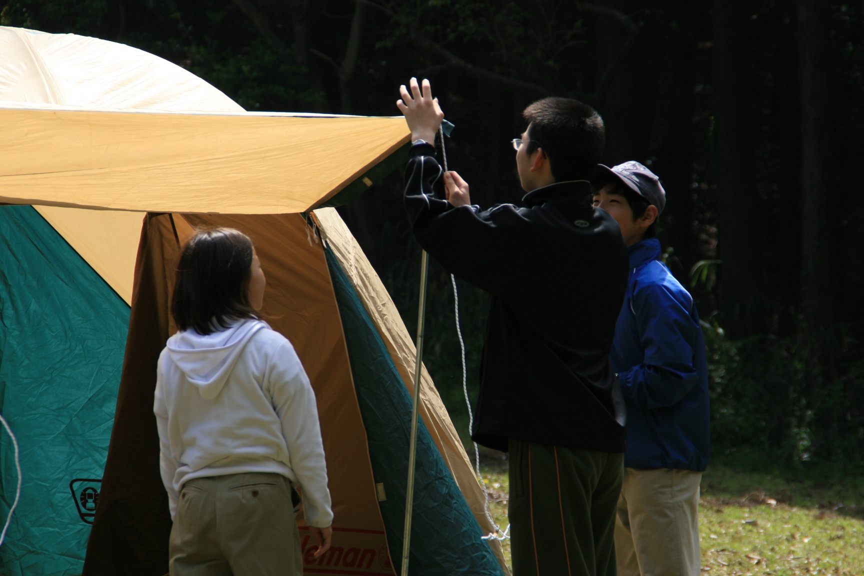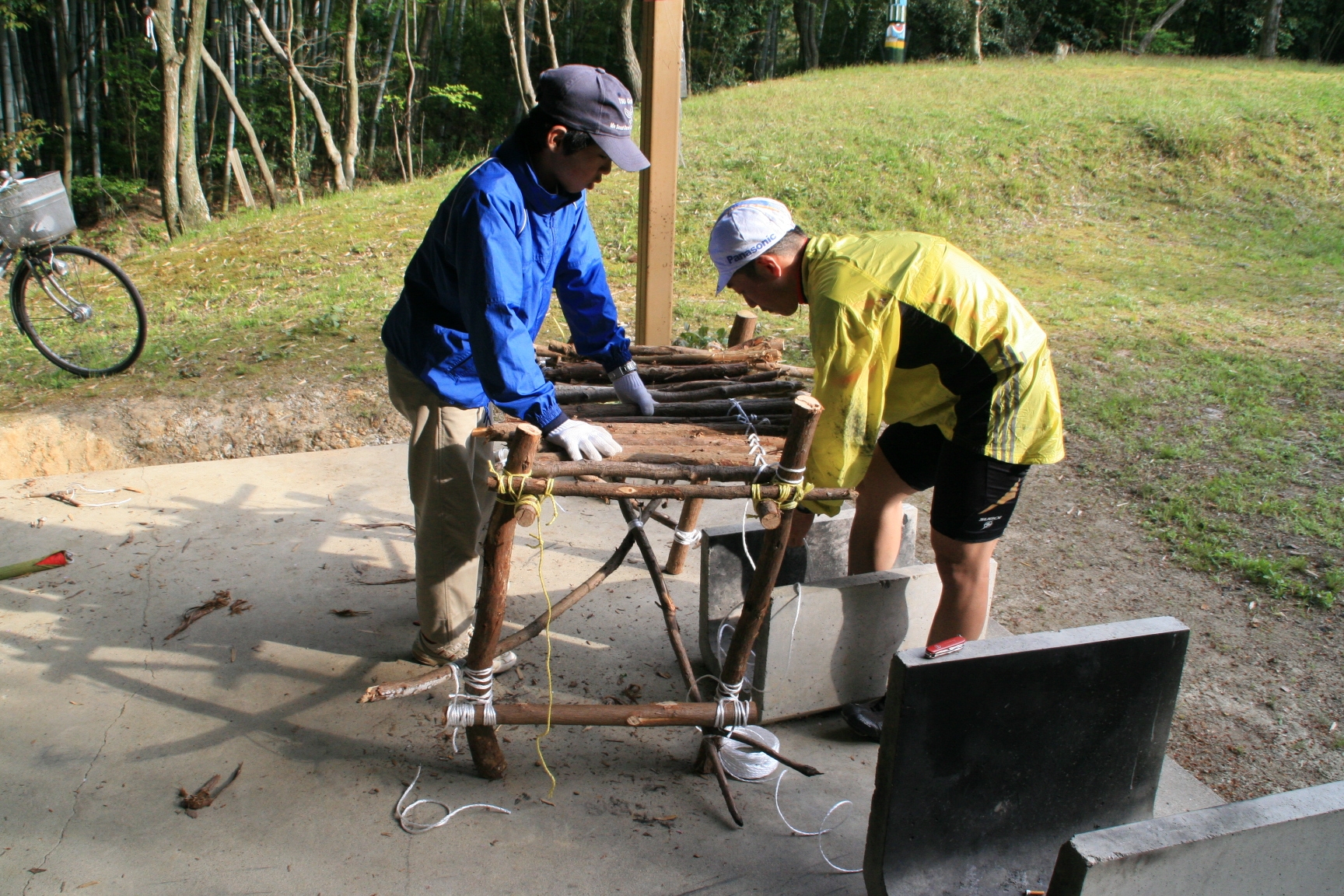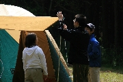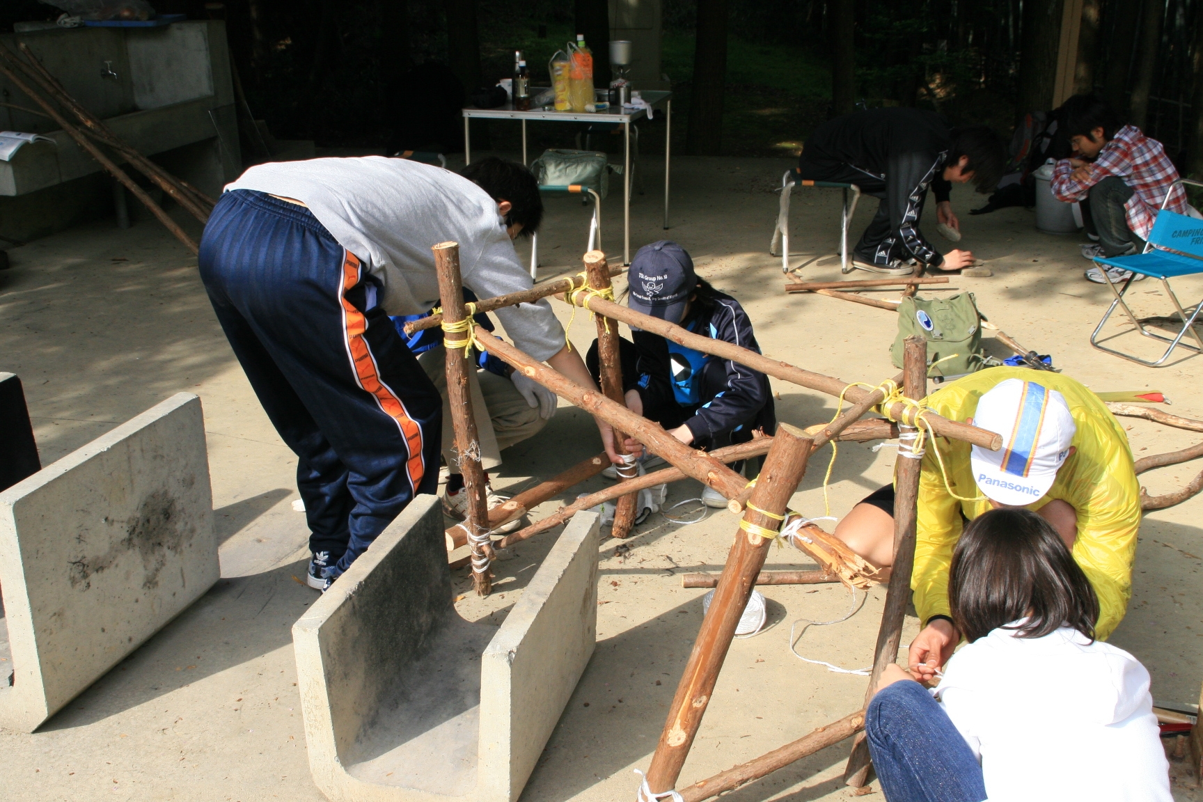 又、元カブ隊長の増田君が大阪から自転車で5時間かけて駆けつけてくれ、設営からテーブルつくりまで手伝ってもらい、ベンチャーも3人参加し、にぎやかなキャンプとなりました。