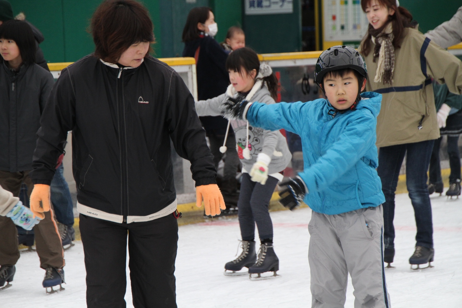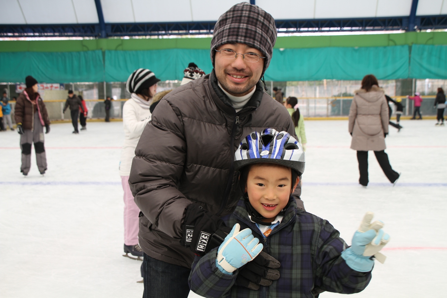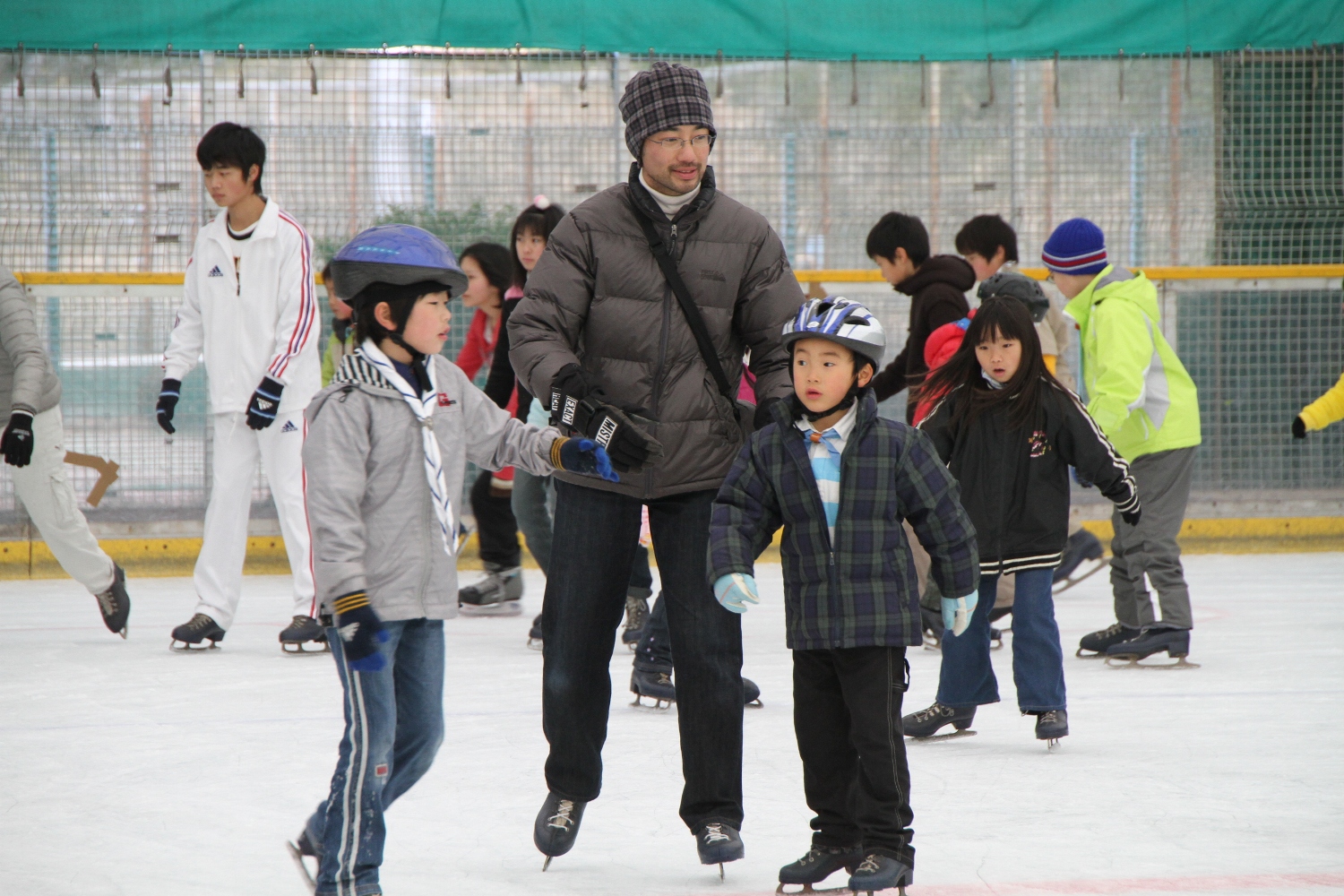 お父さんやお母さんと一緒にスケートを楽しみました。
