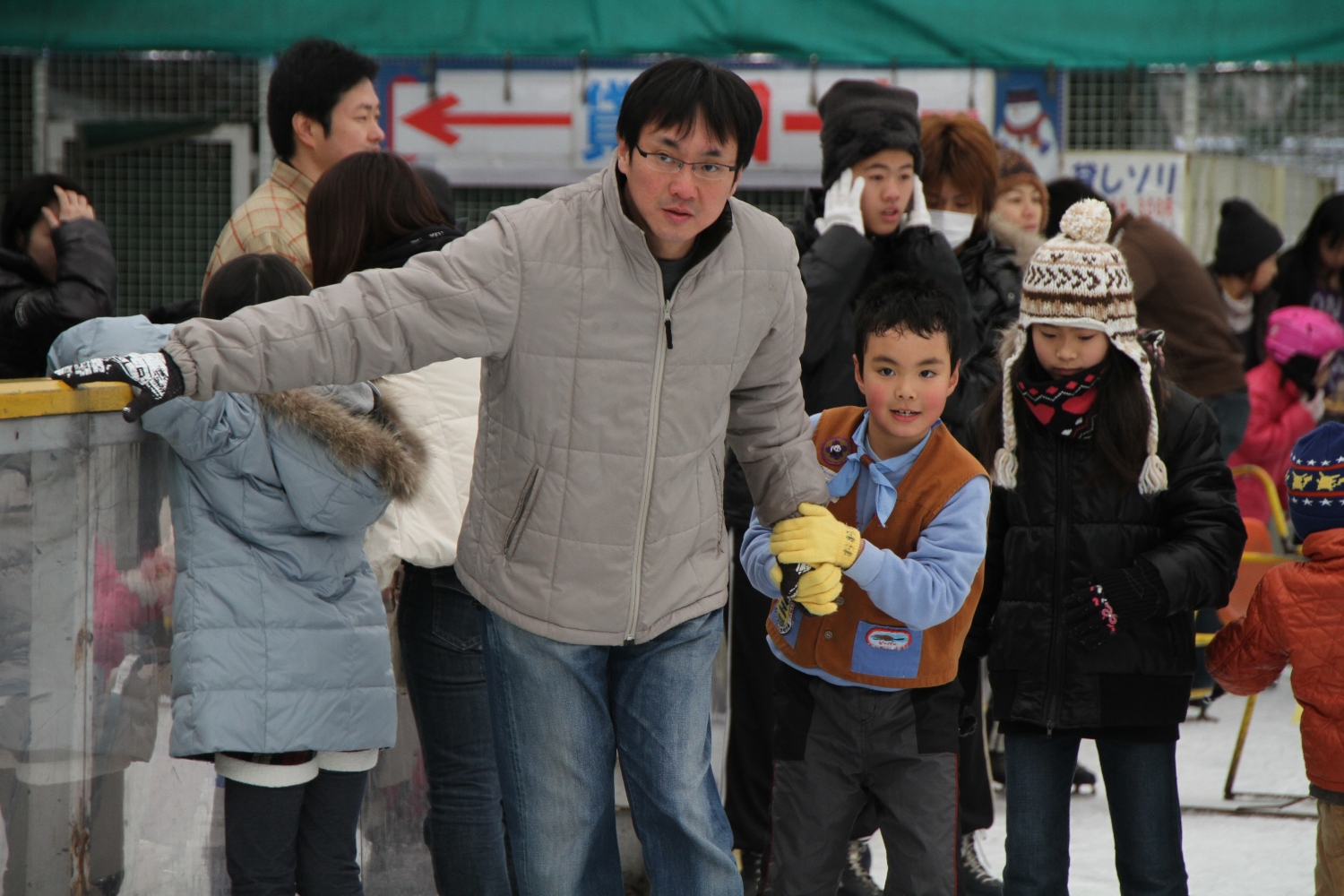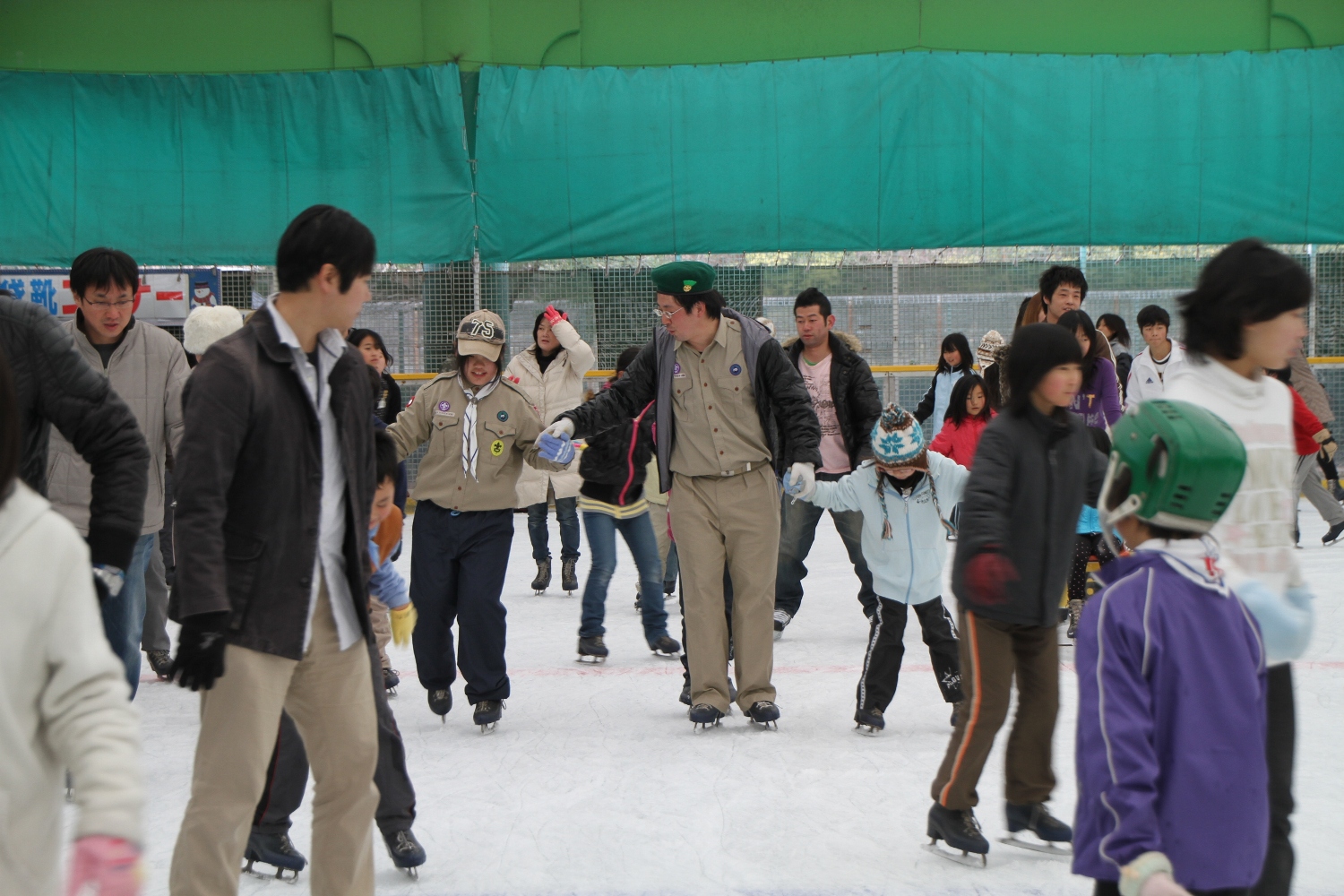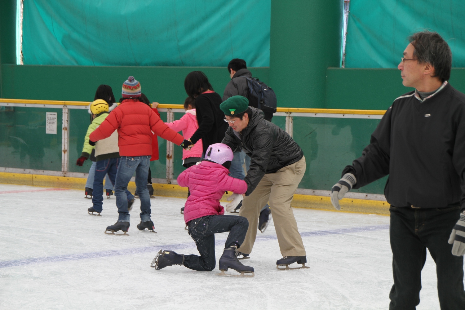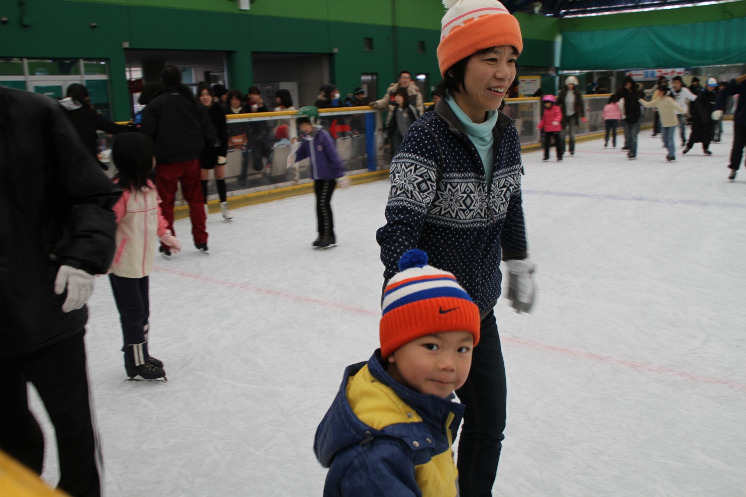 お父さんやお母さんと一緒にスケートを楽しみました。