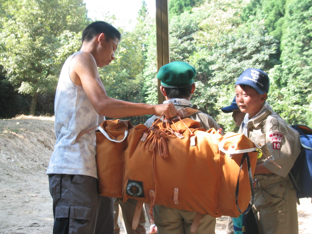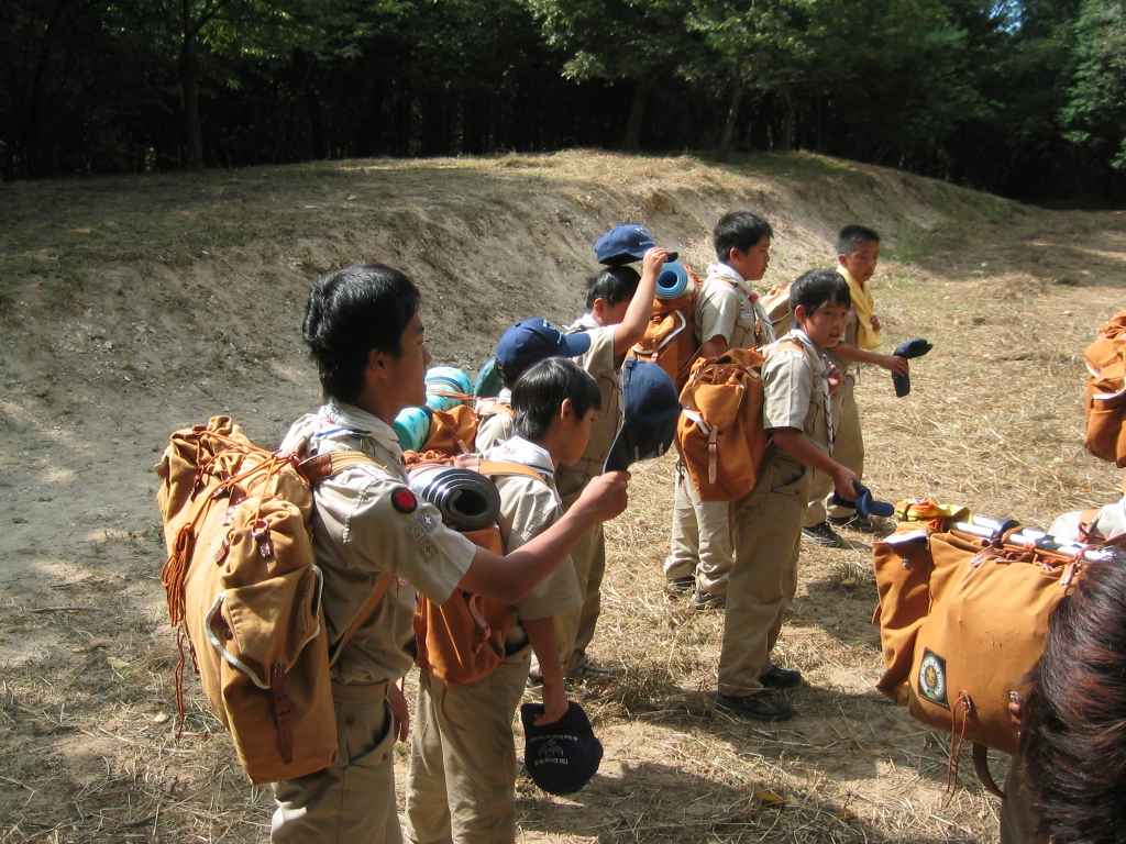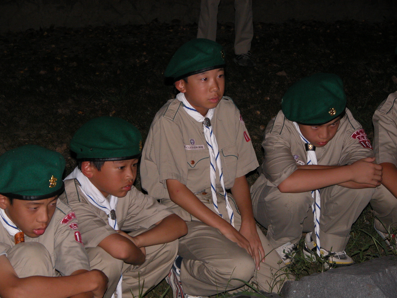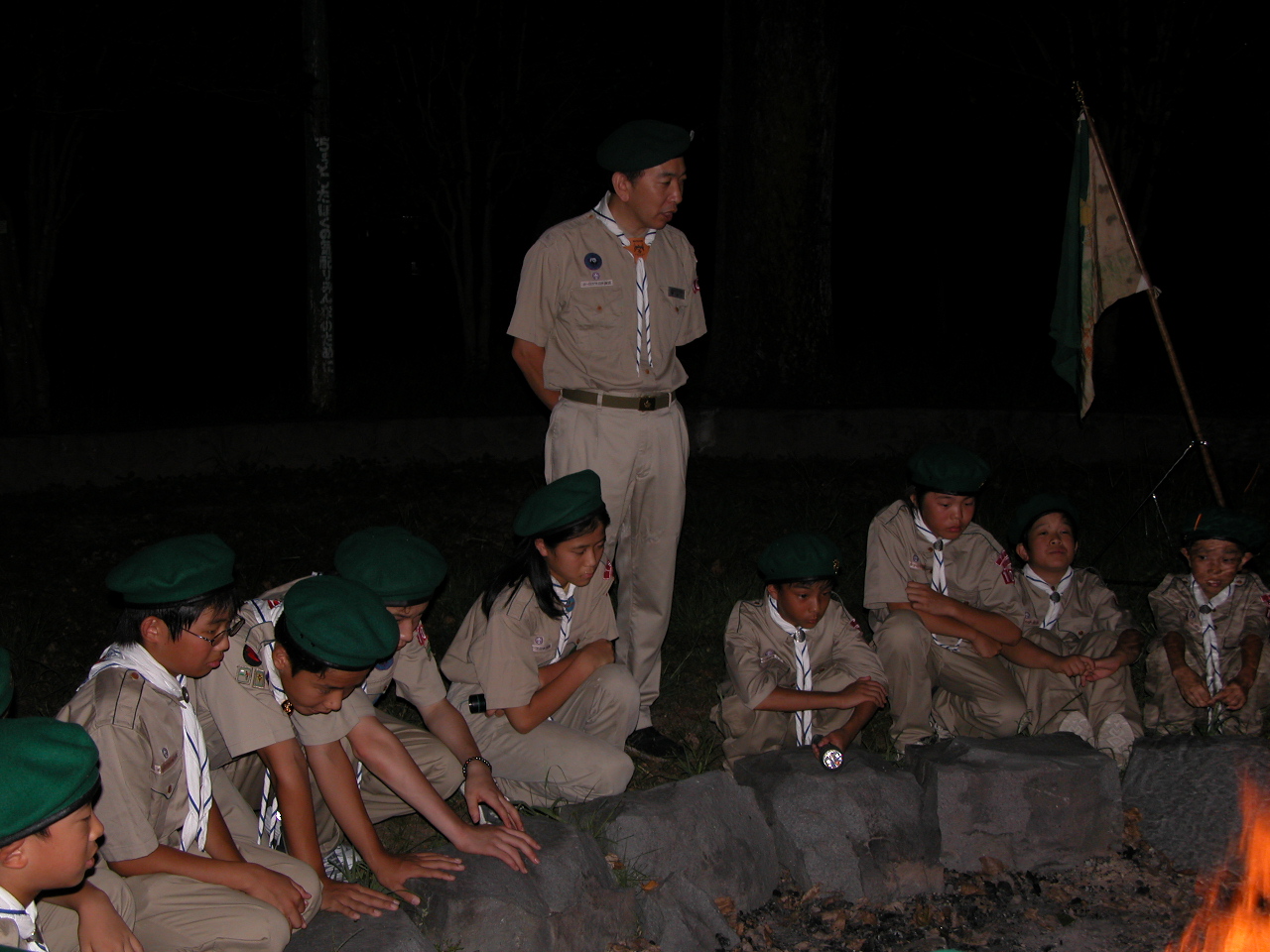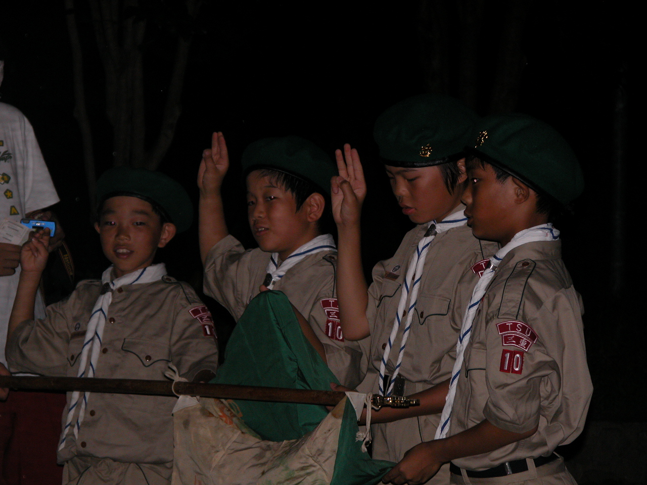指導者、12団ローバー隊、10団ベンチャー隊が見守るなか、12名のスカウトが上進し「ちかい」をたてました。