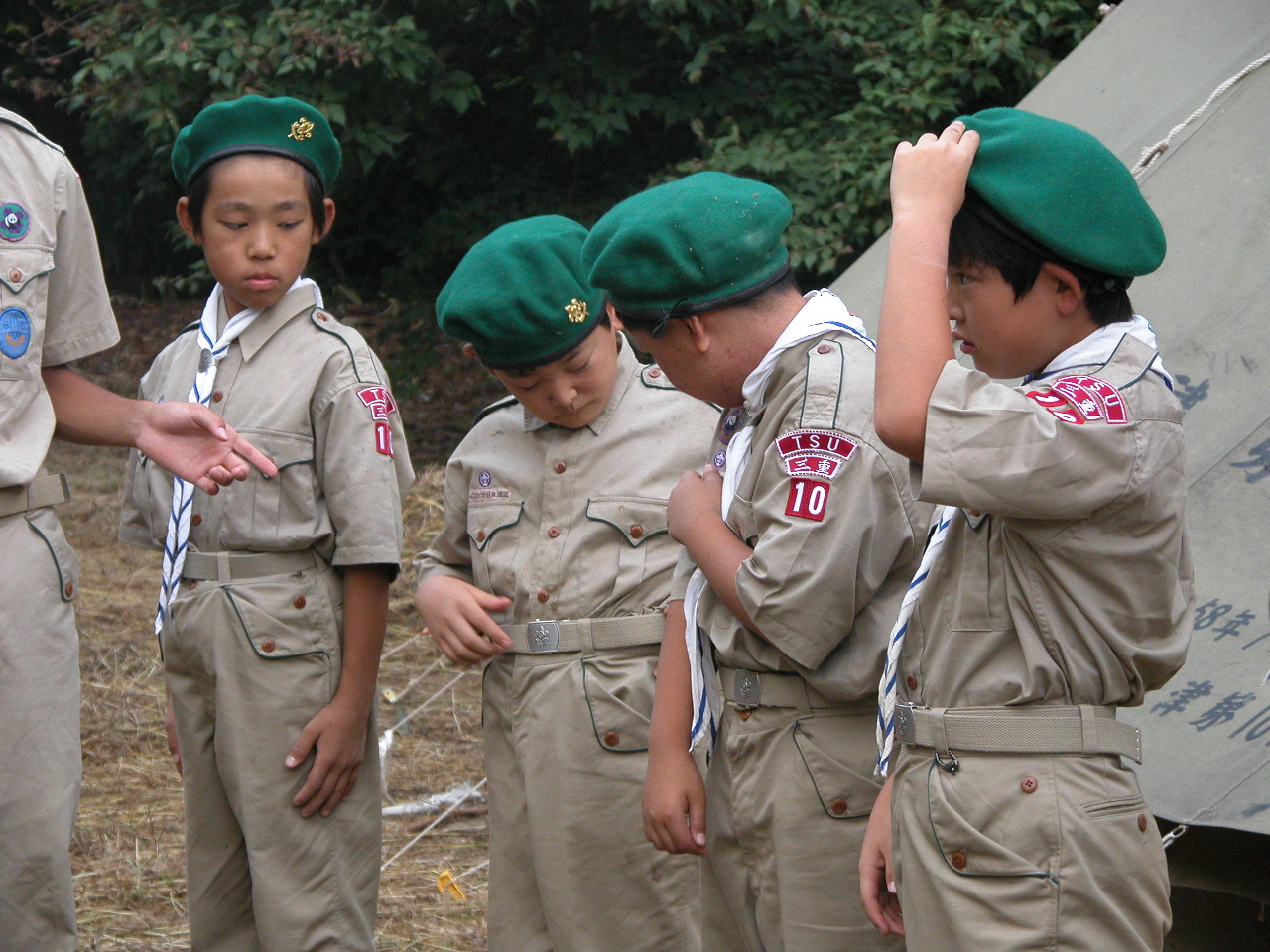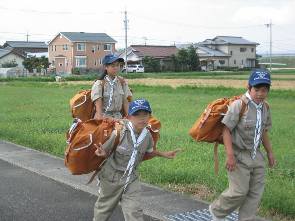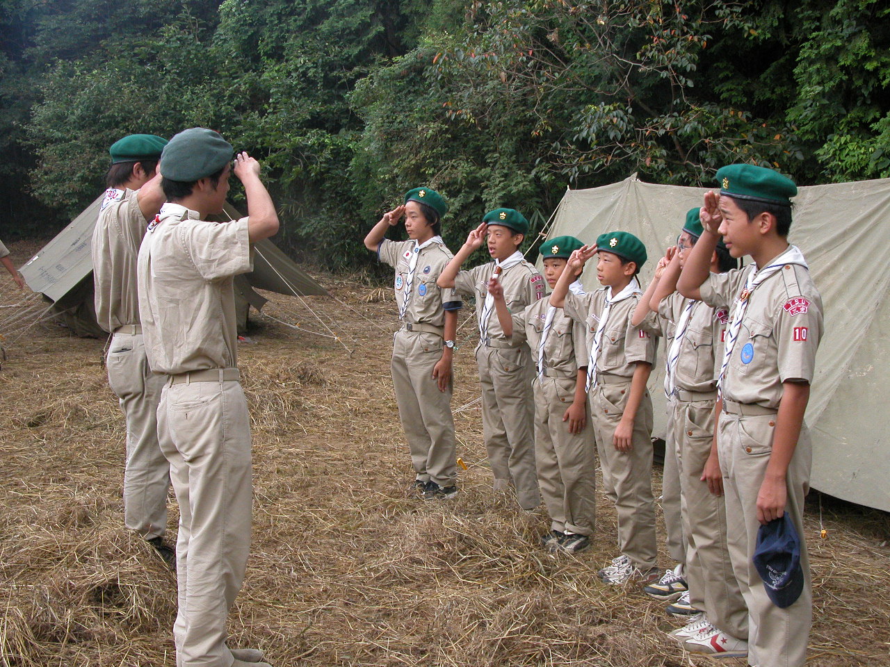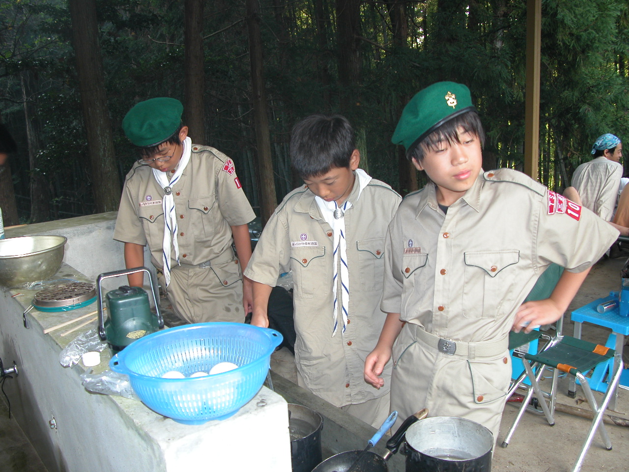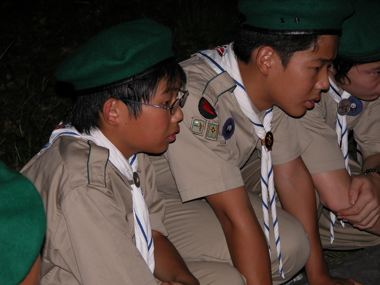 指導者、12団ローバー隊、10団ベンチャー隊が見守るなか、12名のスカウトが上進し「ちかい」をたてました。