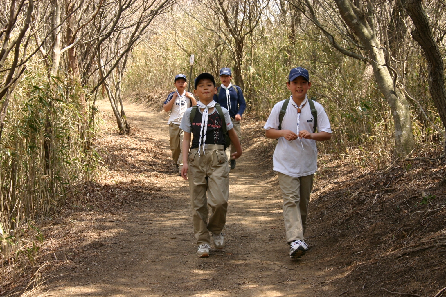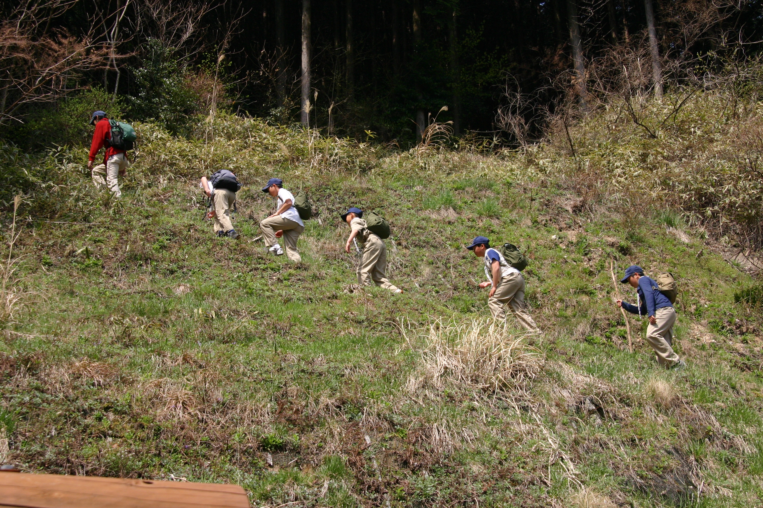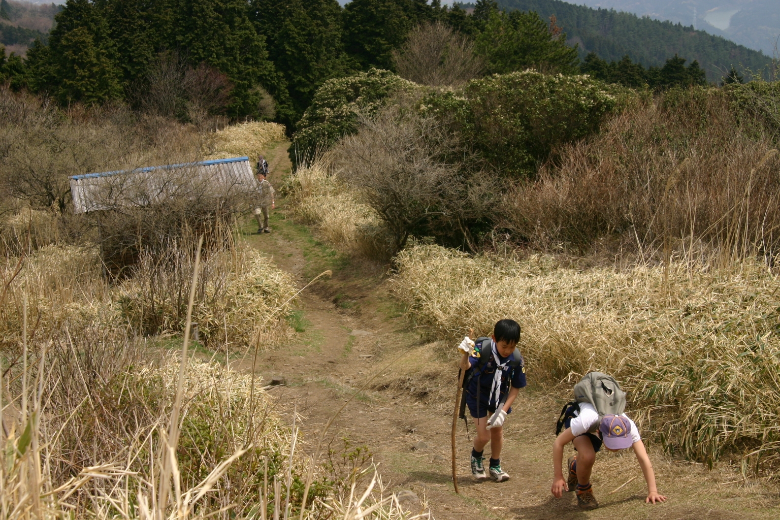 ボーイ隊は山出(経ヶ峰口)から、カブ隊は平尾(比佐豆知菅原神社)から、ビーバー隊は平尾大谷林道の最終駐車場から山頂を目指しました。