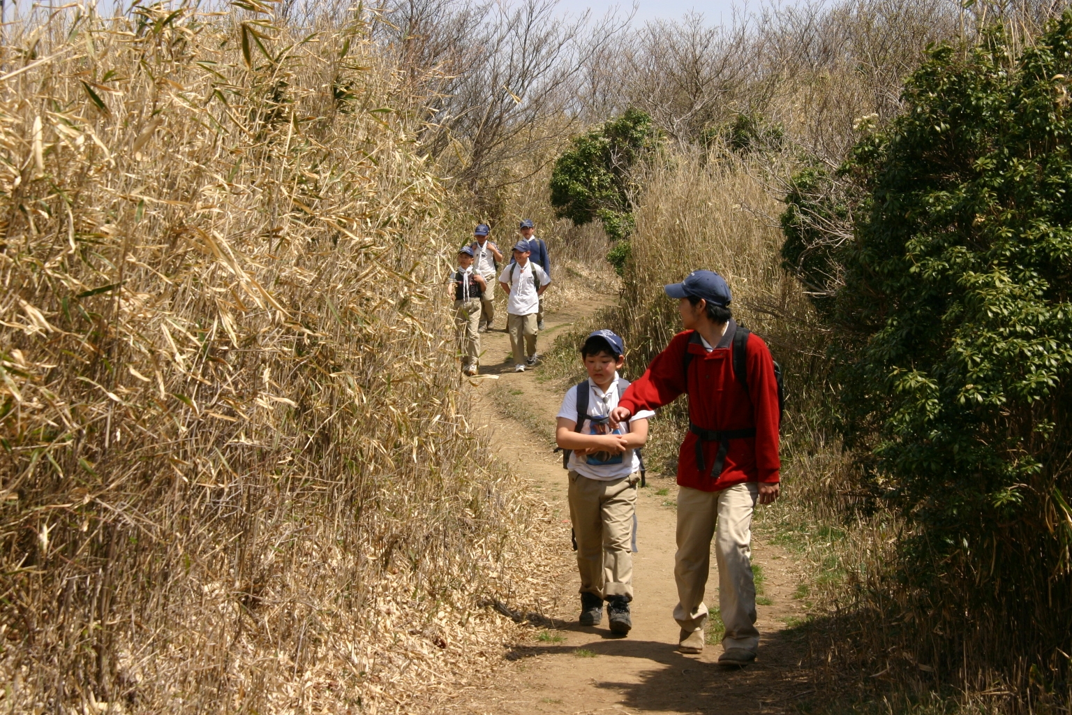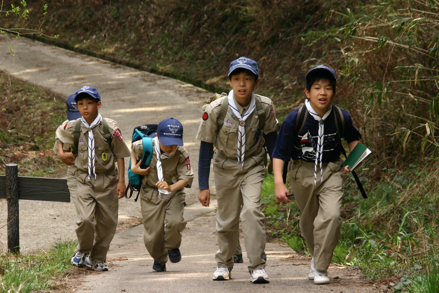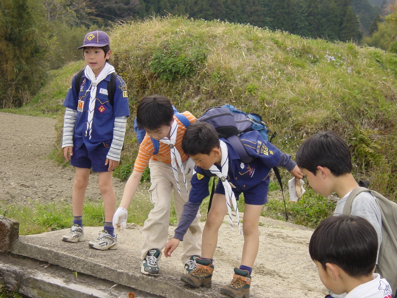 ボーイ隊は山出(経ヶ峰口)から、カブ隊は平尾(比佐豆知菅原神社)から、ビーバー隊は平尾大谷林道の最終駐車場から山頂を目指しました。