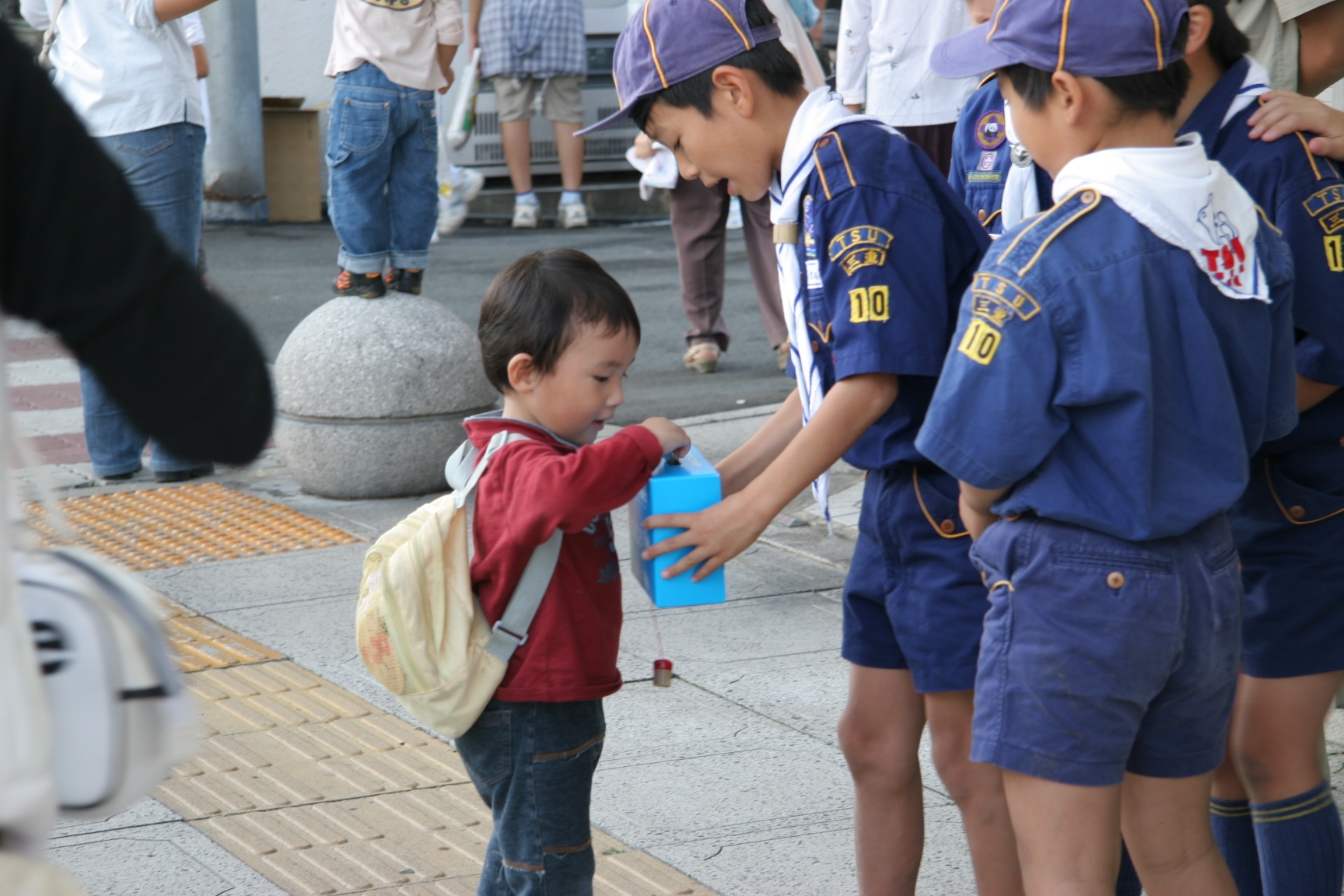 ベンチャー隊、ローバー隊、指導者はスカウトコーナーで奉仕を、ビーバー隊、カブ隊、ボーイ隊はユニセフ募金を行いました。