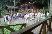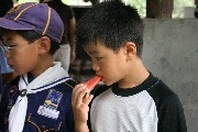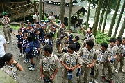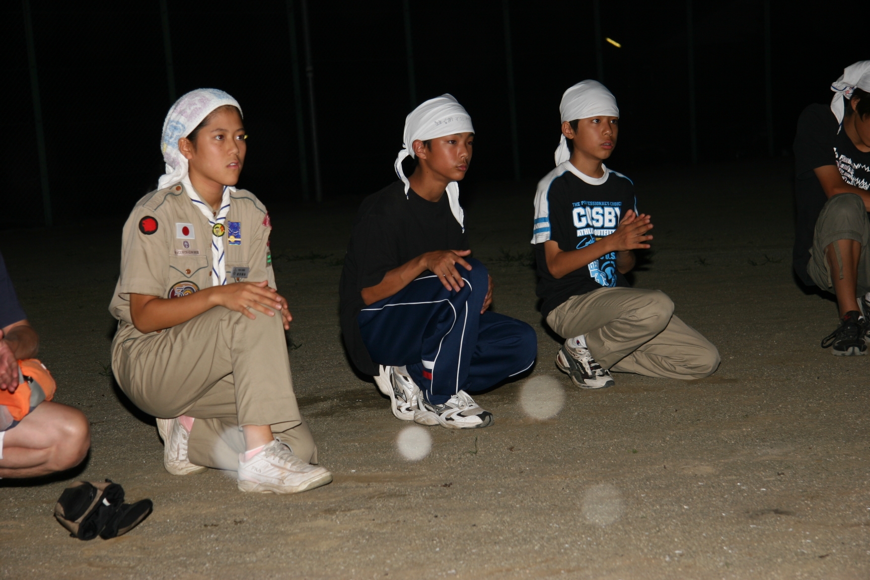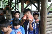 一日目は気温も高く蒸し暑い日でしたが、みんなよく遊んで汗びっしょりでした。鬼のパンツの振り付けは最初は恥ずかしがっている子もいましたが、最後はみんなできめてくれてよかったです。キャンプが初めての人もいましたが、普段と異なる環境でみんな楽しんでいるようでした。(土山ビーバー隊長)