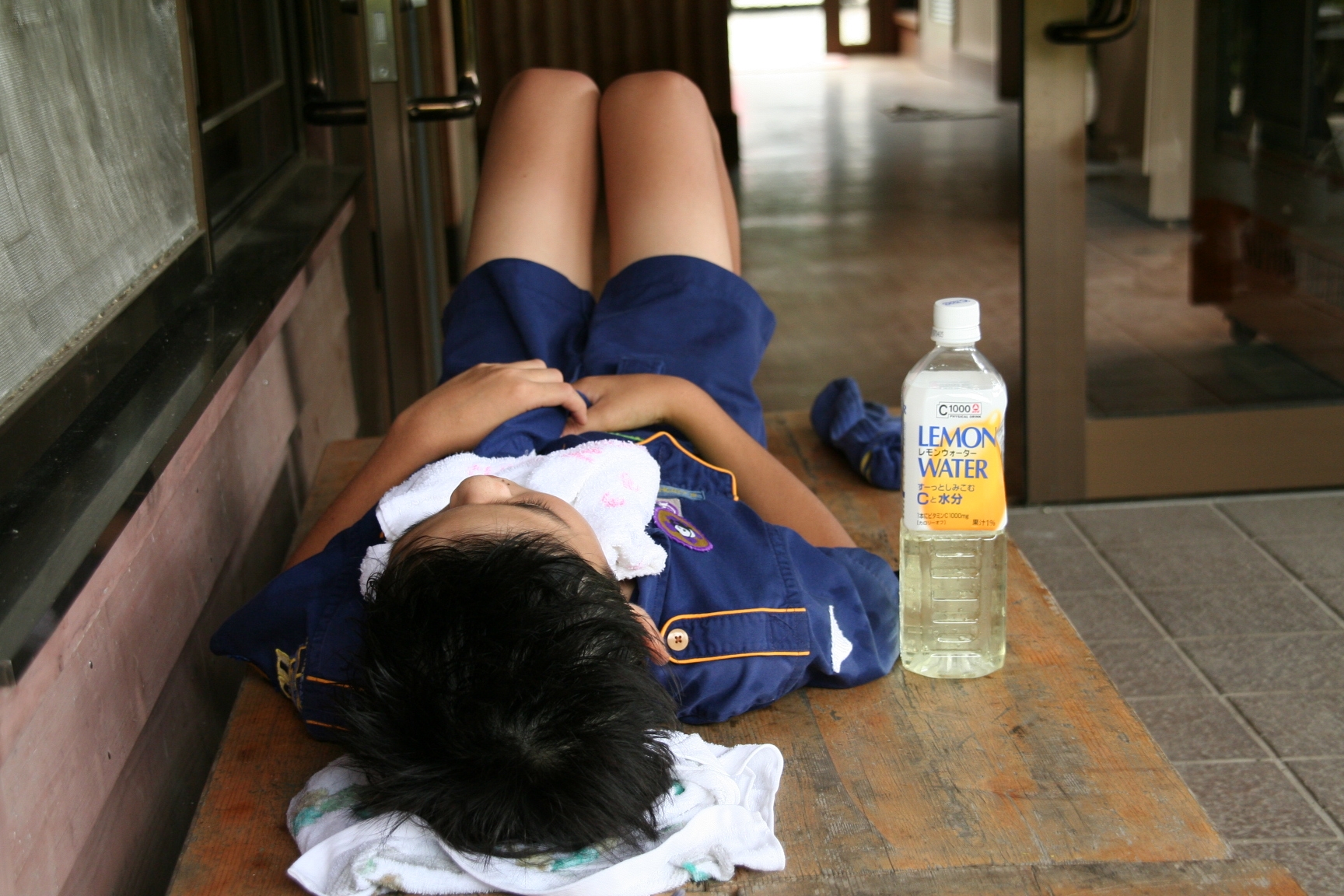 ぼくは8月26日のキャンプに参加しました。まず9時ぐらいに家を出ました。そして電車にのっていえき駅まで行きました。そして2時間30分歩いたらやっとわかすぎの里(キャンプ場)につきました。ぼくたちよりもはやく妹はついていました。そしてごはんをたべました。2時間たったら水泳を しました。すこしきもちよかったです。こんどは1時間ぐらいしたらキャンプファイヤーの練習をしました。たのしかった。夕はんをたべたらキャンプファイヤーをしました。キャンプファイヤーはすこしあったかかった。それにたのしかった。そしてさいごのきもだめしをした。すこしスリルがあっ てたのしかった。さいごのひもまた歩いて帰った。たのしかった。(S)