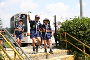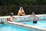 キャンプはすごく楽しかったです。特にプール!すごく気持ちよかったですっ!(^v^) でも次の日が雨だったので1回しか入れませんでした。すごく残念でした。(下v下) 次に楽しかったのはドッチボールです。すっごくあせだくになりました。たいへんだったのは山のぼりです。ハァハァハァいいながらのぼりました。ついたのが最後から3番目・・・本当につらかったです。でも山下りはらくでした。思ったより早くつきました。やまのぼりはえらかったけどまたい きたいと思いました。(H)