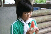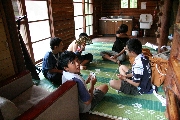 わかすぎの里で一番楽しかったのは、キャンプファイヤーです。火は、友だちが、つけたけど、ぼくも、一回つけたことがあったから、つけたいと思った。だけど、火がついたら、そんなこと忘れて、「もっと、もっと、火、大きくなれ。」と思いました。けれど、火が小さくてがっかりしました。 うたとおどりは、山本さんのいつもの歌とおどりで、もりあがりました。歌で好きなのは、もえろで、おどりはアブラハムです。アブラハムは、体をいっぱいに使っておどるから楽しいです。大杉谷のときより楽しく思えました。キャンプファイヤにウォーウォーウォー。(O)