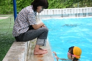 牛丼がとてもおいしかったです。プ−ルでは鈴子ちゃんのお兄ちゃんが鬼ごっこをしてくれたのでとても楽しかった。