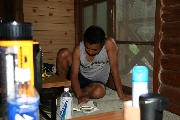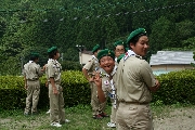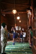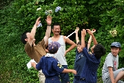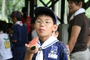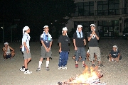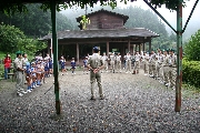 夏休みにボーイスカウトのキャンプに行きました。虫とりや、水えいをしてあそびました。キャンプファイアーでは火のまわりでいっぱいあそびました。よるはなかなかねむれませんでした。つぎの日は、5じ30分くらいにおきました。6じから虫とりをしました。よるに、雨がふっていたので、毛虫があまりいませんでした。キャンプは楽しかったです。(T)