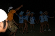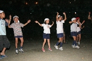夜、キャンプファイヤ−で歌を歌ったり踊ったので楽しかった。きもだめしもドキドキしました。