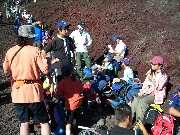 ご来光の直後にご飯をいただき、食事後出発しました。清水と平野は高山病の症状が出てペースが上がらなかったのですが、ほかのものについては、第1陣で富士山山頂に到着し、清水と平野についても遅れながらも山頂に到着することが出来ました。そのあと下山道で降りていきました。
