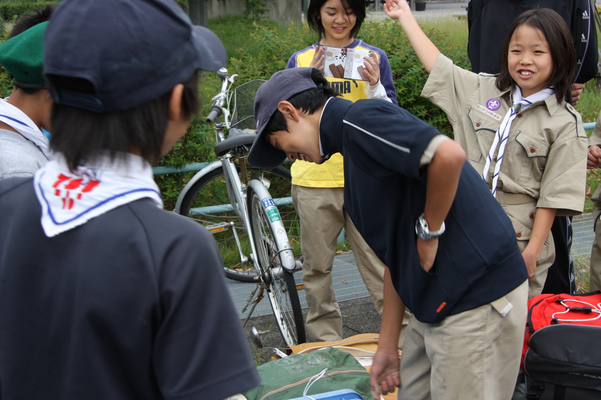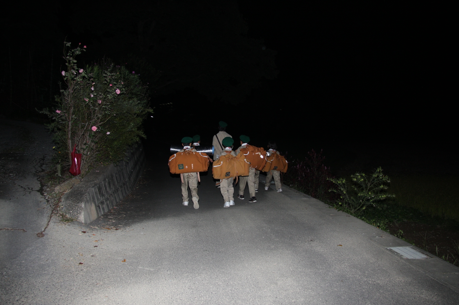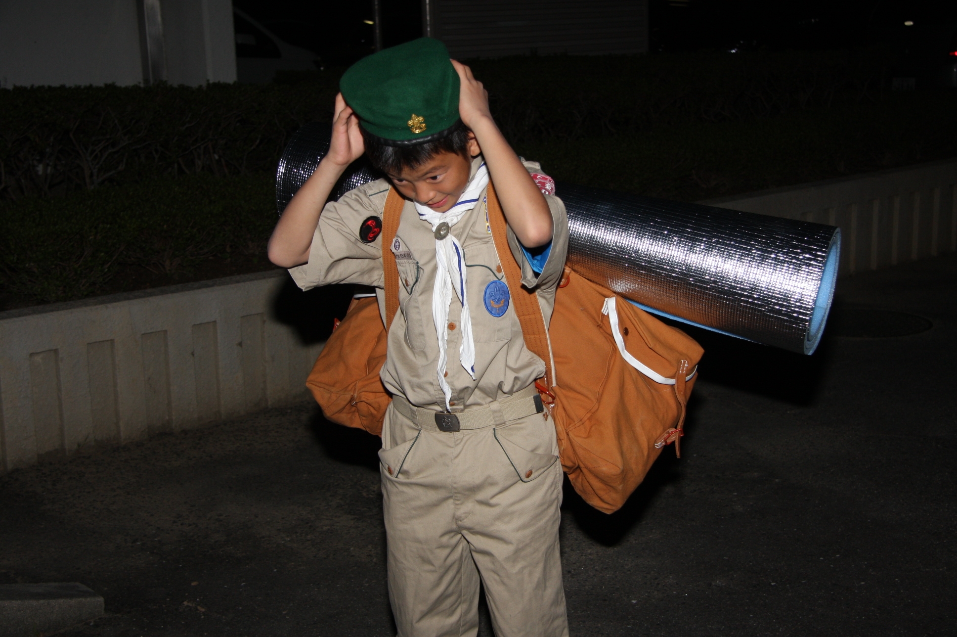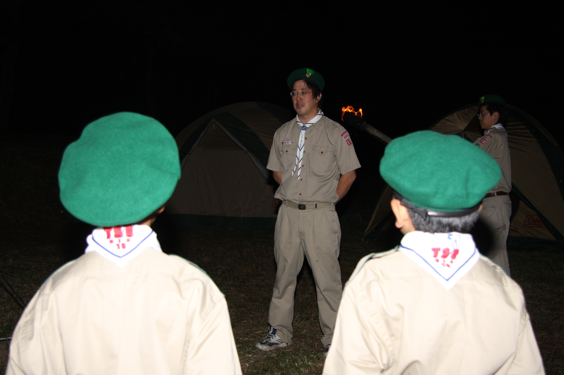 新しくカブ隊から6名を迎え入れ、ベンチャー隊に3名を送り出し、総勢11名となりました。上進式後、新入隊員はテントで寝ることになり興奮のため夜はあまり眠れなかったようでした。朝食は上手くできませんでしたが作ったものは残さずに食べようと泣きながら食べているスカウトもいました。食器洗い、テントの片付けなど積極的に手伝い、帰りは、テントや炊事道具など分担してキャンプ場から岡部宅まで2時間程かけ歩きくたくたになっていました。又、先輩スカウトの清水、平野、富樫、岡君らが新人にテントたたみ方、食事を残さず食べるようにと指導したり、帰りに隊備品を自ら率先して重い荷物を担いだりし、ずいぶんたくましくなってきました。これから一年間新しいグループで楽しく活動を続けてもらいたいと思います。(小瀬古団委員)
